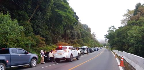 ขณะเดียวกันการจราจรติดเป็นทางยาวตั้งด่านที่ 2 ยาวไปจนถึงหน้ากิ่วแม่ปาน ลาดจอดรถสนาม ฮ.เต็ม ทำให้นักท่องเที่ยวต้องจอดรถสองริมถนน ยาวเรื่อยจาก กม. 42 ขึ้นไปเรื่อย ๆ