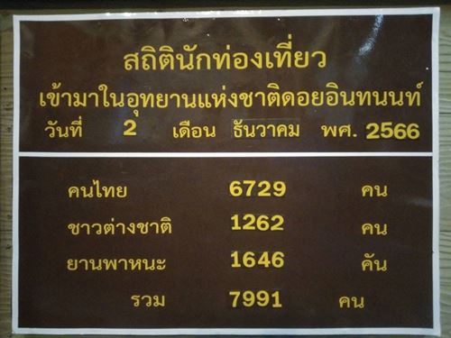 สถิตินักท่องเที่ยวสะสมจากเมื่อวานนี้ ถือว่ามากที่สุดในรอบของฤดูหนาวนี้เช่นกัน นักท่องเที่ยวชาวไทยจำนวน 6,729 คน นักท่องเที่ยวต่างชาติจำนวน 1,262 คน ยอดรมจำนวน 7,991 คน ยานพาหนะ 1,646 คัน