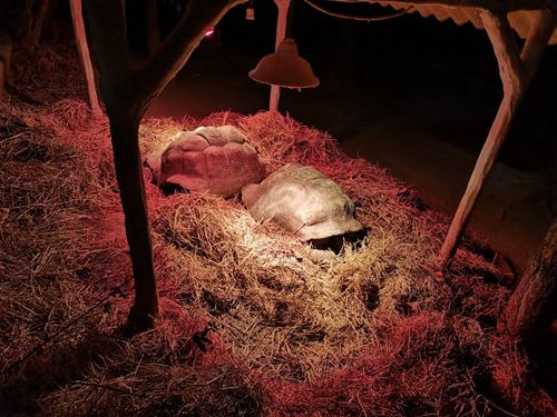 - การจัดเตรียมที่กำบังลมให้กับสัตว์ ให้มีจุดหลบลมหนาว (Shelter) เช่น ซุ้มหรือบ้านหลังเล็ก (ในคอกเต่าซูลคาต้า)