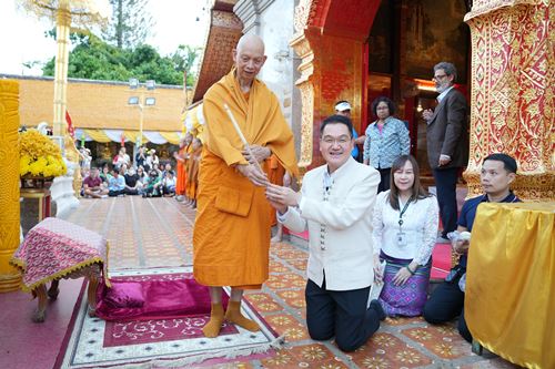 ศ.(เชี่ยวชาญพิเศษ)นพ.บรรณกิจ โลจนาภิวัฒน์ คณบดีคณะแพทยศาสตร์ มช. และคุณอรวรรณ เร่งเร็ว หัวหน้างานบริหารทั่วไป กราบสวัสดีปีใหม่ พ.ศ.2567 พระธรรมเสนาบดี เจ้าอาวาสวัดพระธาตุดอยสุเทพ ในโอกาสนี้ได้รายงานผลการดำเนินงานโรงพยาบาลสงฆ์แห่งโรงพยาบาลมหาราชนครเชียงใหม่ , อาคารสุจิณฺโณ โรงพยาบาลมหาราชนครเชียงใหม่ และร่วมสวดบูชาพระธาตุดอยสุเทพ ในวันที่ 5 มกราคม 2567 ณ วัดพระธาตุดอยสุเทพ อ.เมือง จ.เชียงใหม่