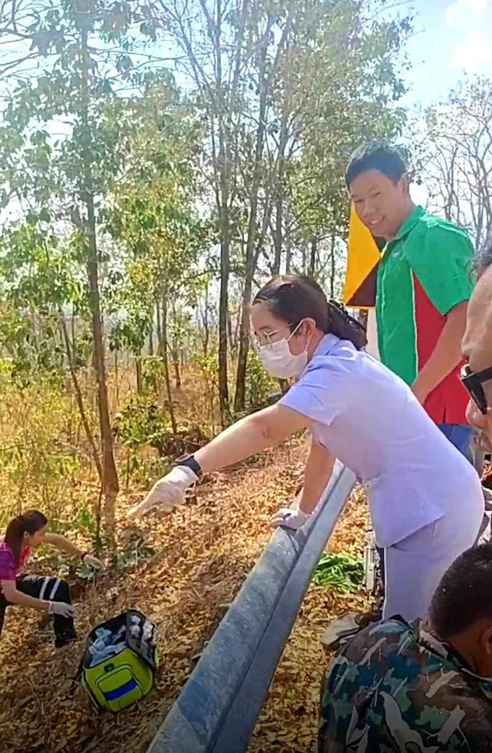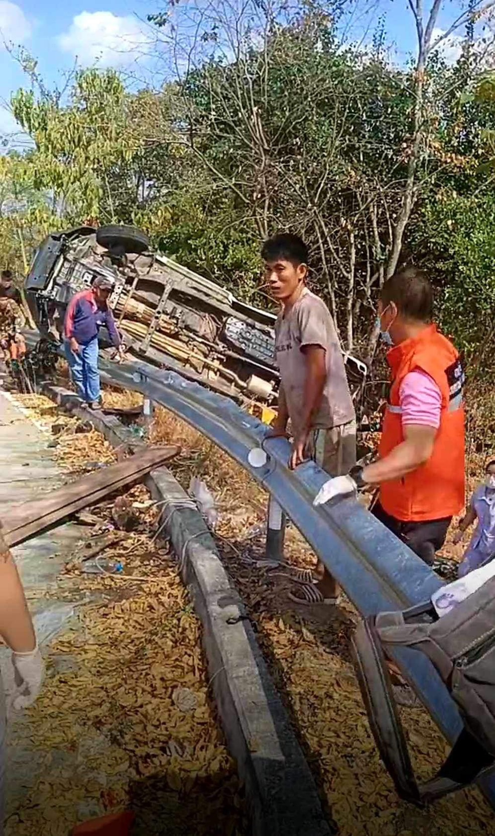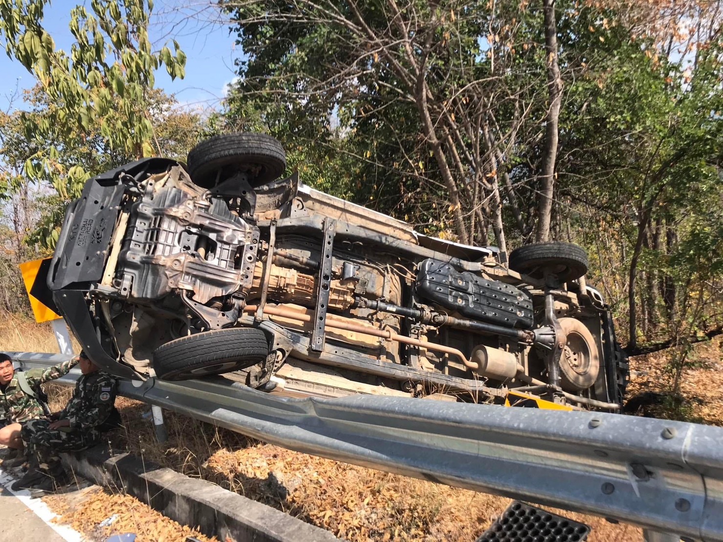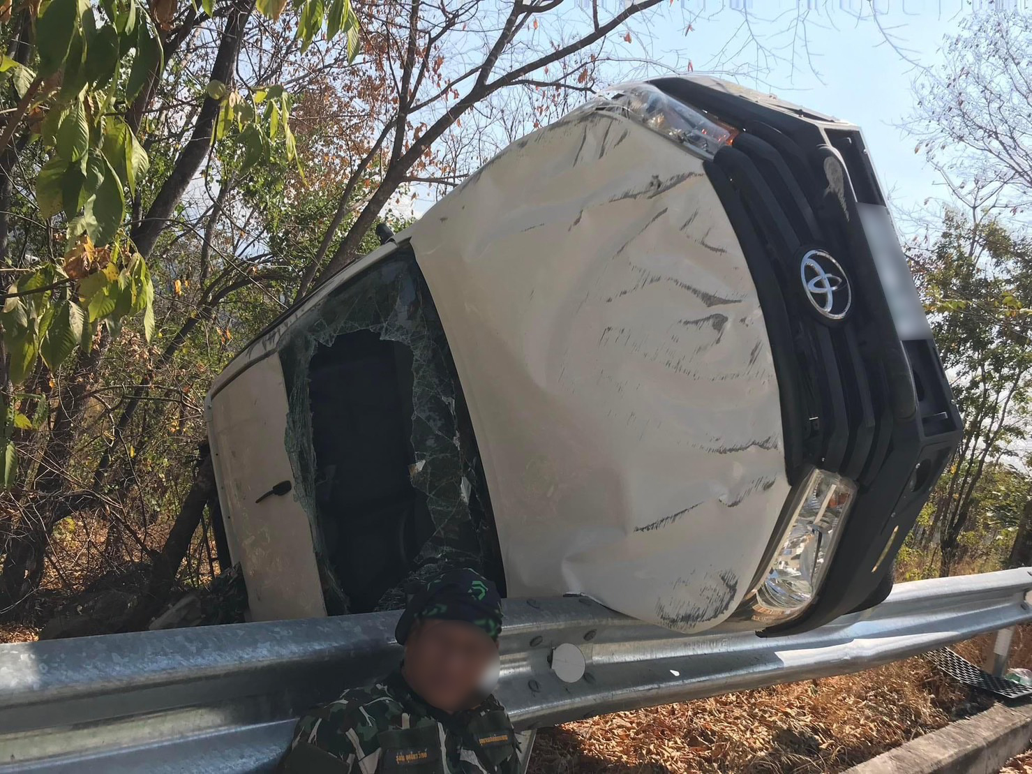 อุบัติเหตุหมู่!! รถกระบะเจ้าหน้าที่ดับไฟป่าอช.ออบหลวง หลุดโค้งพลิกคว่ำเจ็บ 11 ราย