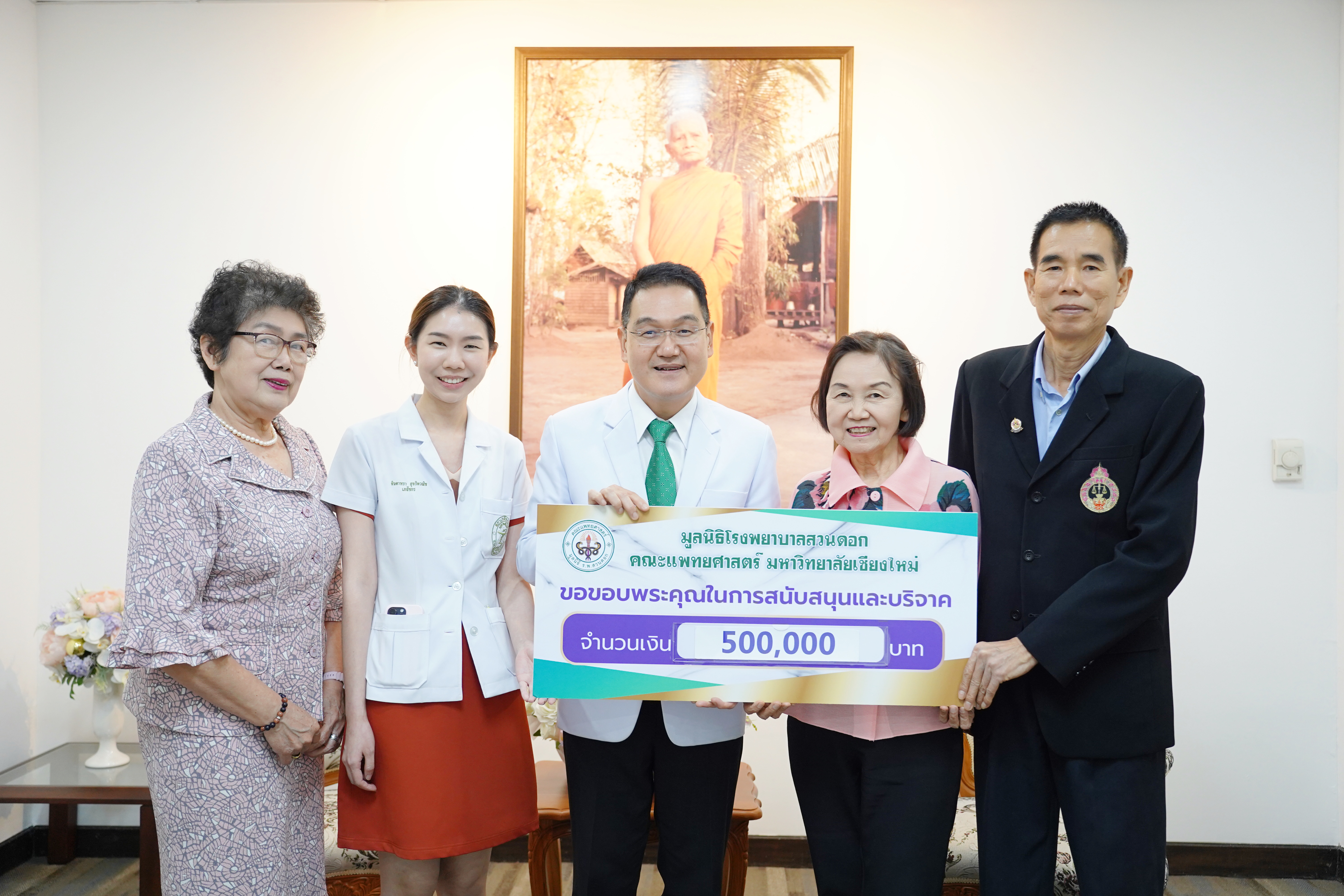 ศ.(เชี่ยวชาญพิเศษ)นพ.บรรณกิจ โลจนาภิวัฒน์ คณบดีคณะแพทยศาสตร์ มช. รับมอบเงินบริจาค จำนวน 500,000 บาท จากคุณภูเบศ และ ภญ.พรศรี สุจริตวณิช สมทบทุนมูลนิธิโรงพยาบาลสวนดอก เพื่อปรับปรุง OPD และสิ่งแวดล้อม โรงพยาบาลมหาราชนครเชียงใหม่ ในวันที่ 25 มกราคม 2567 ณ ห้องรับรองสำนักงานคณบดี ชั้น 8 อาคารราชนครินทร์ คณะแพทยศาสตร์ มช.