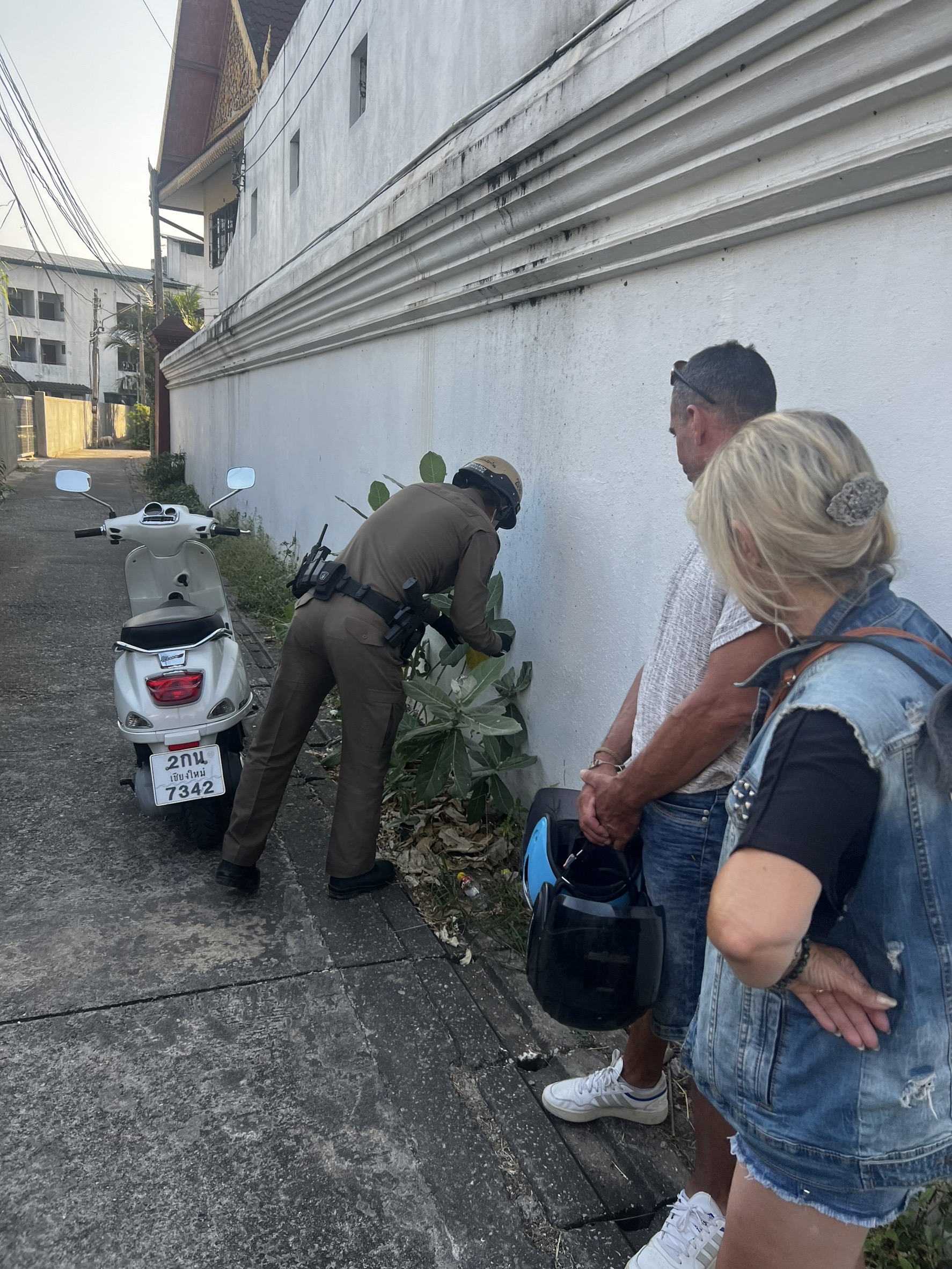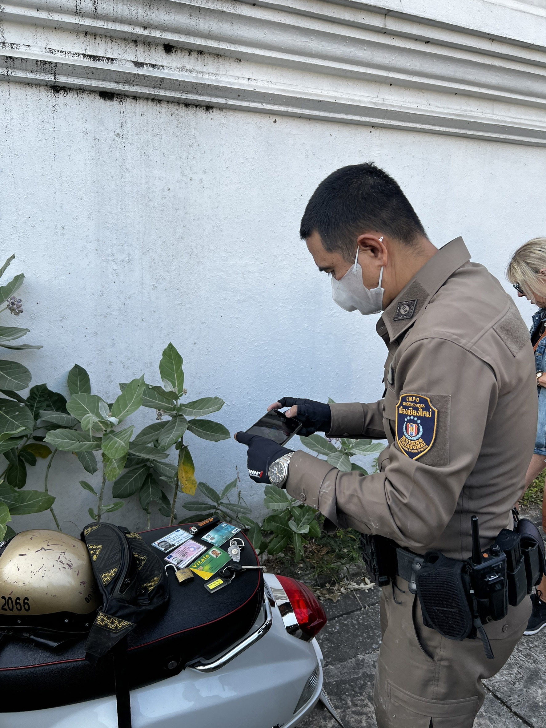 จากการสอบถามทางพลเมืองดีที่พบเจอกระเป๋าใบนี้ ทราบว่า ได้เดินเข้ามาที่ซอยดังกล่าว และสังเกตพบว่ามีกระเป๋าคาดเอวถูกทิ้งไว้ ซึ่งกระเป๋าดังกล่าวถูกเปิดอยู่ แลเมีเอกสารบัตรประจำตัวโดยเห็นว่าเป็นของชาวต่างชาติแต่ไม่กล้าจับ จึงโทรแจ้งเจ้าหน้าที่ตำรวจให้มาตรวจ เพราะเกรงว่าอาจจะเป็นกระเป๋าที่ถูกขโมย หรือถูกวิ่งราว แล้วคนร้ายเอามาทิ้งไว้ เพราะเห็นว่ามีลักษณะถูกรื้อค้นเอาทรัพย์สินไป เหลือเพียงบัตรเอกสารและลูกกุญแจเท่านั้น จึงอยากให้ทางเจ้าหน้าที่ดำเนินการติดตามหาเจ้าของกระเป๋า
