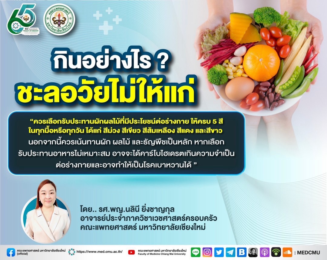 🔹Nutrient-rich diet คือ เลือกอาหารที่มีสารต้านอนุมูลอิสระในปริมาณมาก ๆ โดยเลือกผักผลไม้ตามฤดูกาล แนะนำให้เลือกรับประทานอาหารที่มีสารอาหารปริมาณมาก ๆ แต่ให้ทานในปริมาณน้อย ๆ อย่างเหมาะสม เพื่อไม่ให้ได้รับน้ำตาลและพลังงานที่มากเกินไป โดยเลือกสัดส่วนอาหารที่สำคัญ ให้จัดจานอาหารแบบ 2:1:1 (จานเส้นผ่านศูนย์กลาง 9 นิ้ว แบ่ง 2 ส่วนเป็นผักใบเขียว 1 ส่วนเป็นข้าวแป้ง 1 ส่วนเป็นโปรตีน) หากรับประทานผักผลไม้ครบ 5 สี วิตามินเกลือแร่จะครบถ้วน ส่วนผักที่เป็นหัว เช่น ฟักทอง เผือก แครอท มัน ข้าวโพด ให้จัดอยู่ในส่วนของข้าวแป้งไม่ใช่ส่วนของผักใบเขียว เนื่องจากมีคาร์โบไฮเดรต