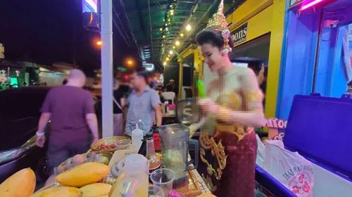 โดย นางสาวพัทธนันท์ แก้วมาลา หรือ น้องมิกิ 35 ปี เจ้าของร้าน เปิดเผยว่า ที่แต่งชุดไทยขายเพื่อจะสืบสานประเพณีไทยให้แพร่หลาย โดยเฉพาะนักท่องเที่ยวต่างประเทศ เพราะชุดไทยสวยงามและดูเซ็กซี่ในตัวเองอยู่แล้ว โดยชุดนี้ตนเองสั่งทำพิเศษ ก็ได้รับความสนใจอย่างมาก สำหรับร้านตนเองเปิดขาย ช่วง 6 โมงเย็นถึงสองทุ่มครึ่งทุกวัน สำหรับมะม่วงคือผลไม้ไทยที่ชาวต่างชาติขื่นชอบด้วย โดยมีเมนูแมงโก้สตอเบอร์แหล แมงโก้หลายใจ แมงโก้ใจเดียว และแมงโก้ซี๊ดซ๊าด