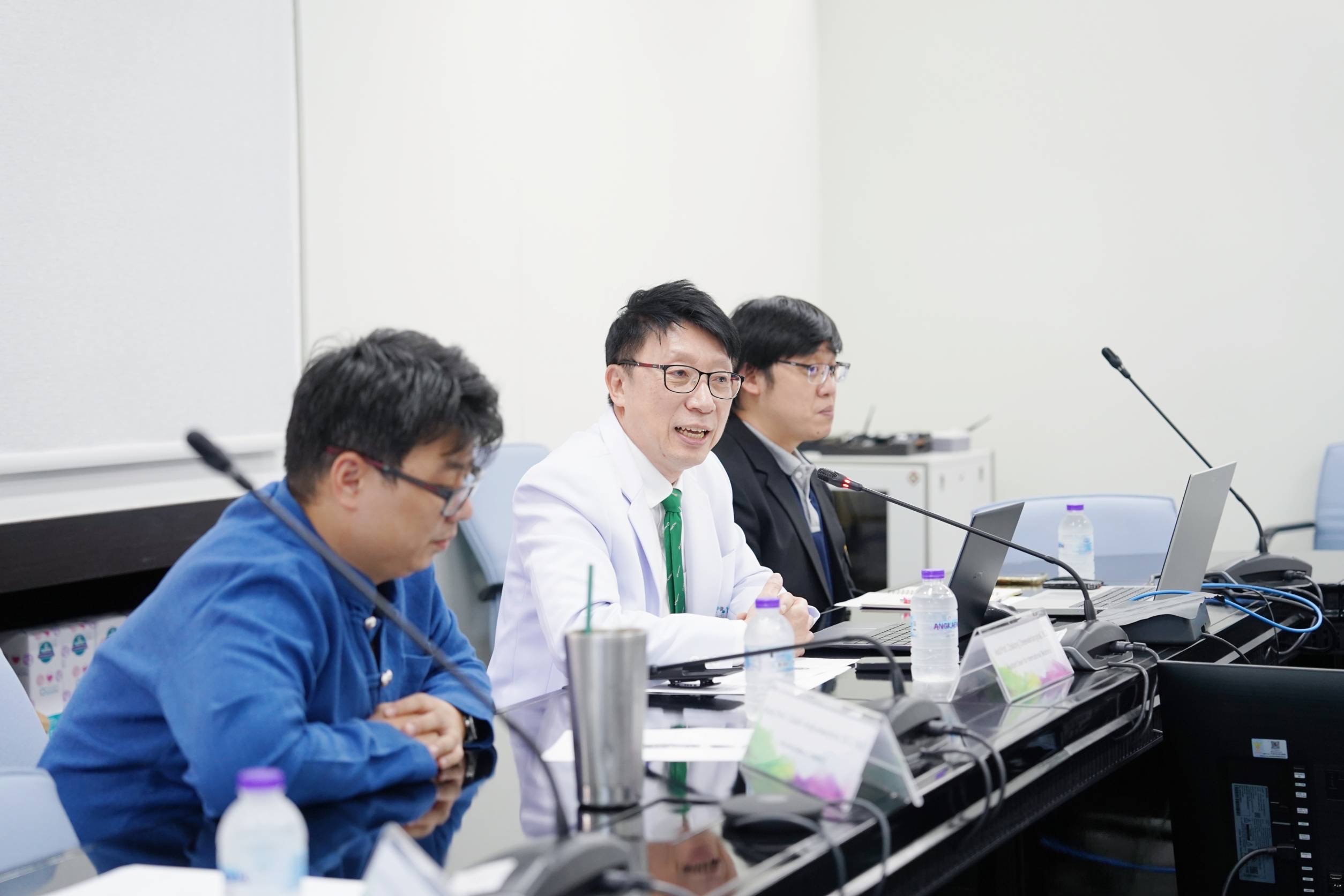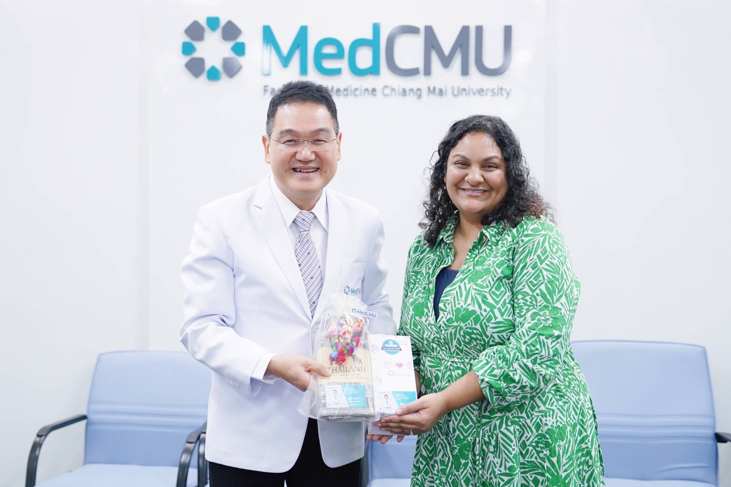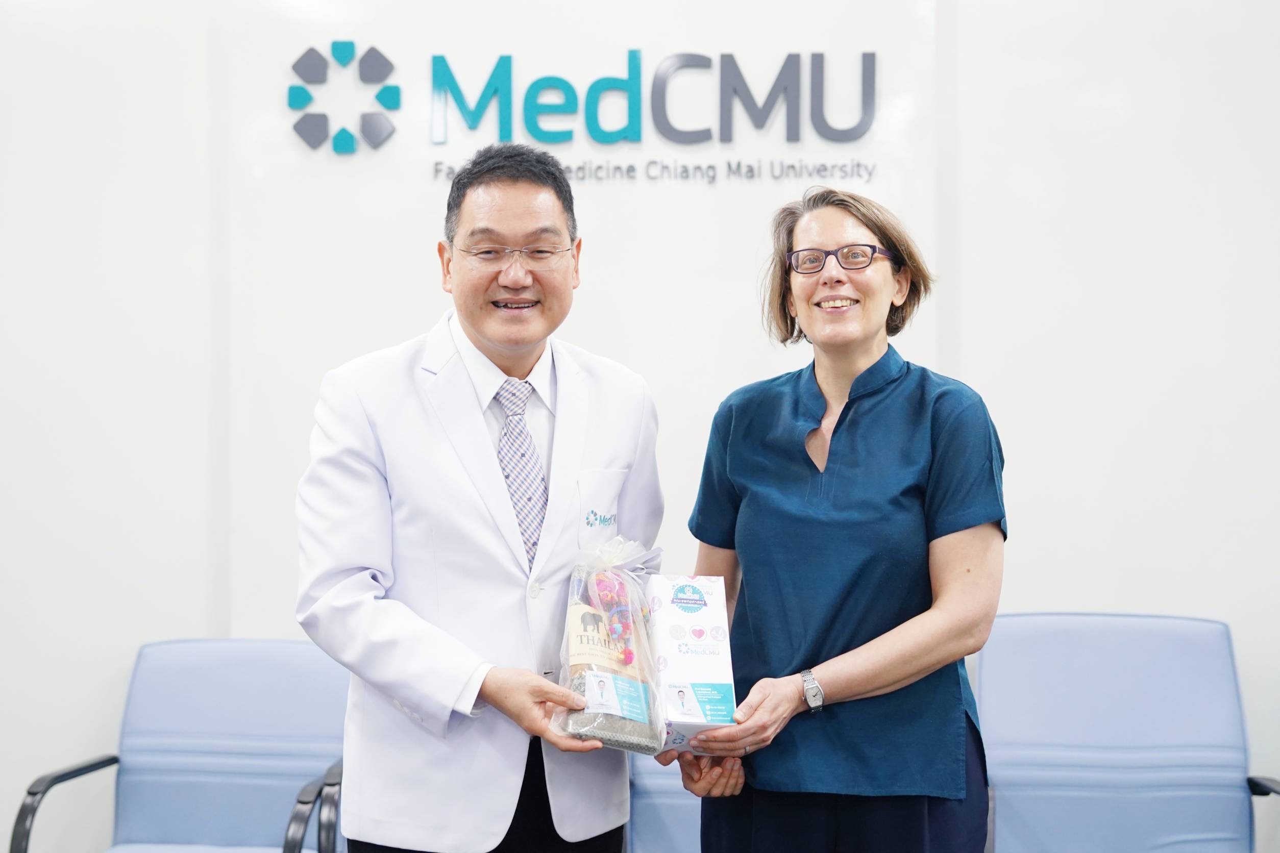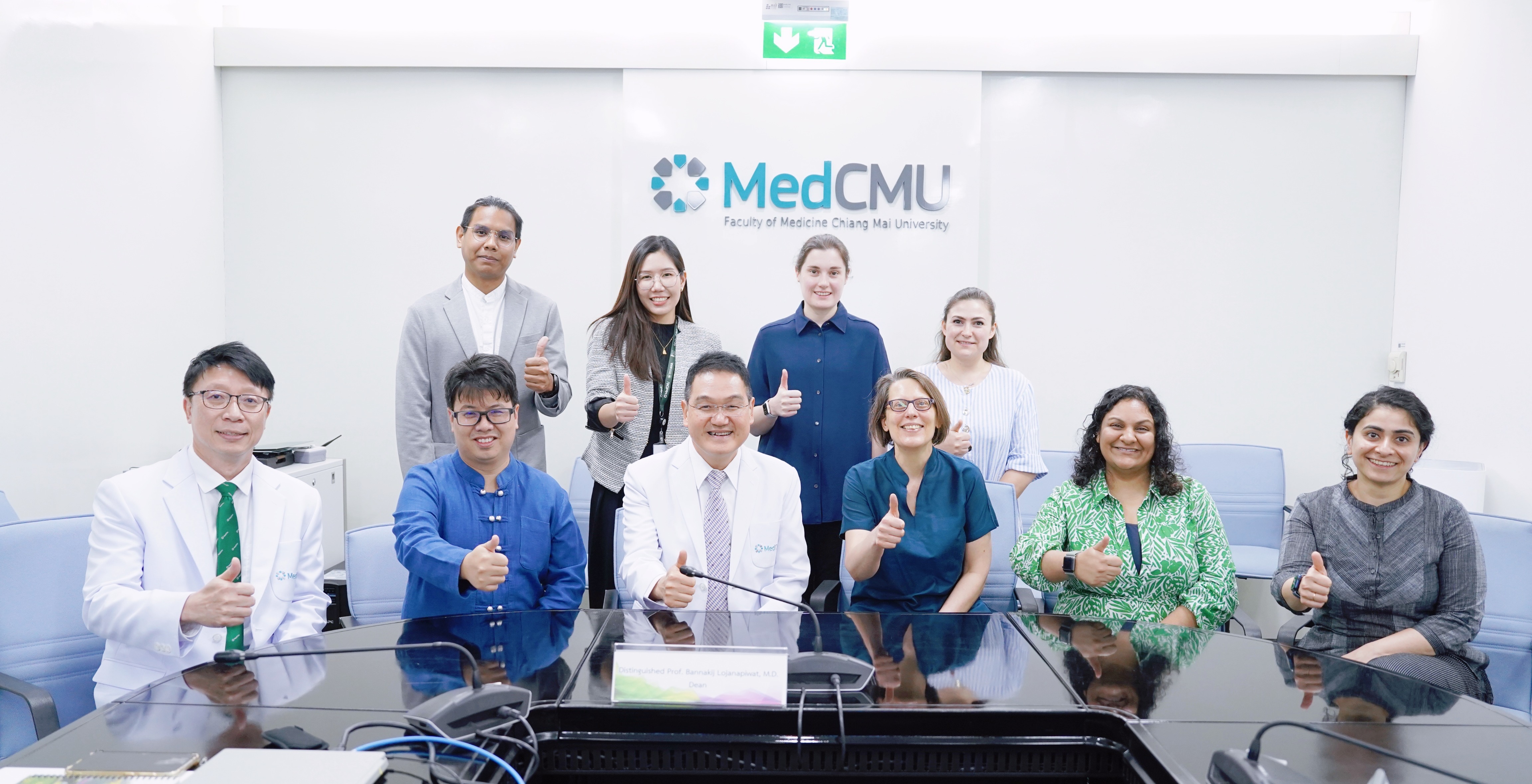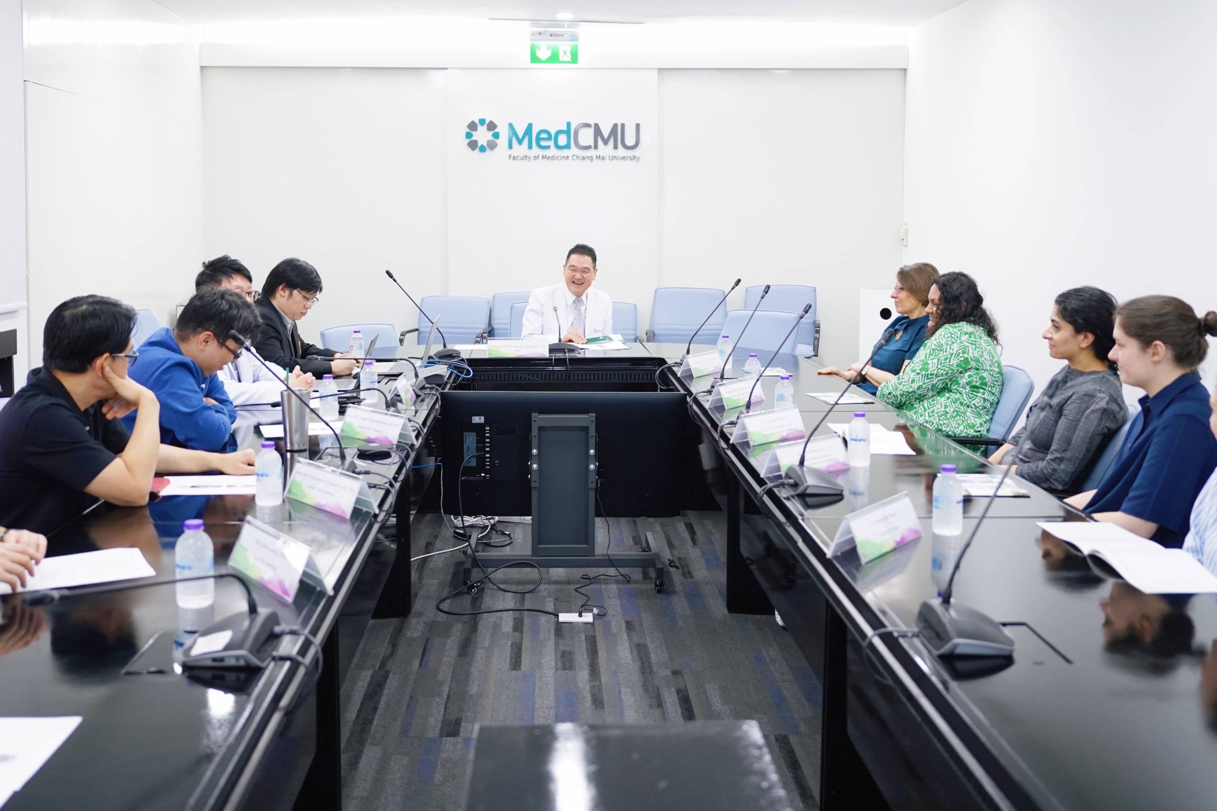 ศ.(เชี่ยวชาญพิเศษ)นพ.บรรณกิจ โลจนาภิวัฒน์ คณบดีคณะแพทยศาสตร์ มช. พร้อมด้วย รศ.ดร.นพ.ดำเนินสันต์ พฤกษากร ผู้ช่วยคณบดีคณะแพทยศาสตร์ มช., ผศ.นพ.ฉลอง ชีวเกรียงไกร ผู้ช่วยคณบดีคณะแพทยศาสตร์ มช., รศ.ดร.นพ.ชัยสิริ อังกุระวรานนท์ ผู้ช่วยคณบดีคณะแพทยศาสตร์ มช. และนักวิจัยจากศูนย์ CMUTEAM ร่วมให้การต้อนรับคณะนักวิจัยจาก London School of Hygiene and Tropical Medicine, Queen Mary University of London และ University of Dundee สหราชอาณาจักร นำโดย Prof. Dorothea Nitsch, Professor of Clinical Epidemiology, London School of Hygiene and Tropical Medicine และ Prof. Rohini Mathur, Chair of Health Data Science, Queen Mary University of London ในโอกาสเดินทางมาจัดอบรม Short Course in Genetic Epidemiology for Non-communicable Diseases และร่วมปรึกษาหารือการดำเนินโครงการวิจัยกับศูนย์วิจัย Global Health ในวันที่ 5 มีนาคม 2567 ณ ห้องประชุม 802 ชั้น 8 อาคารราชนครินทร์ คณะแพทยศาสตร์ มช.