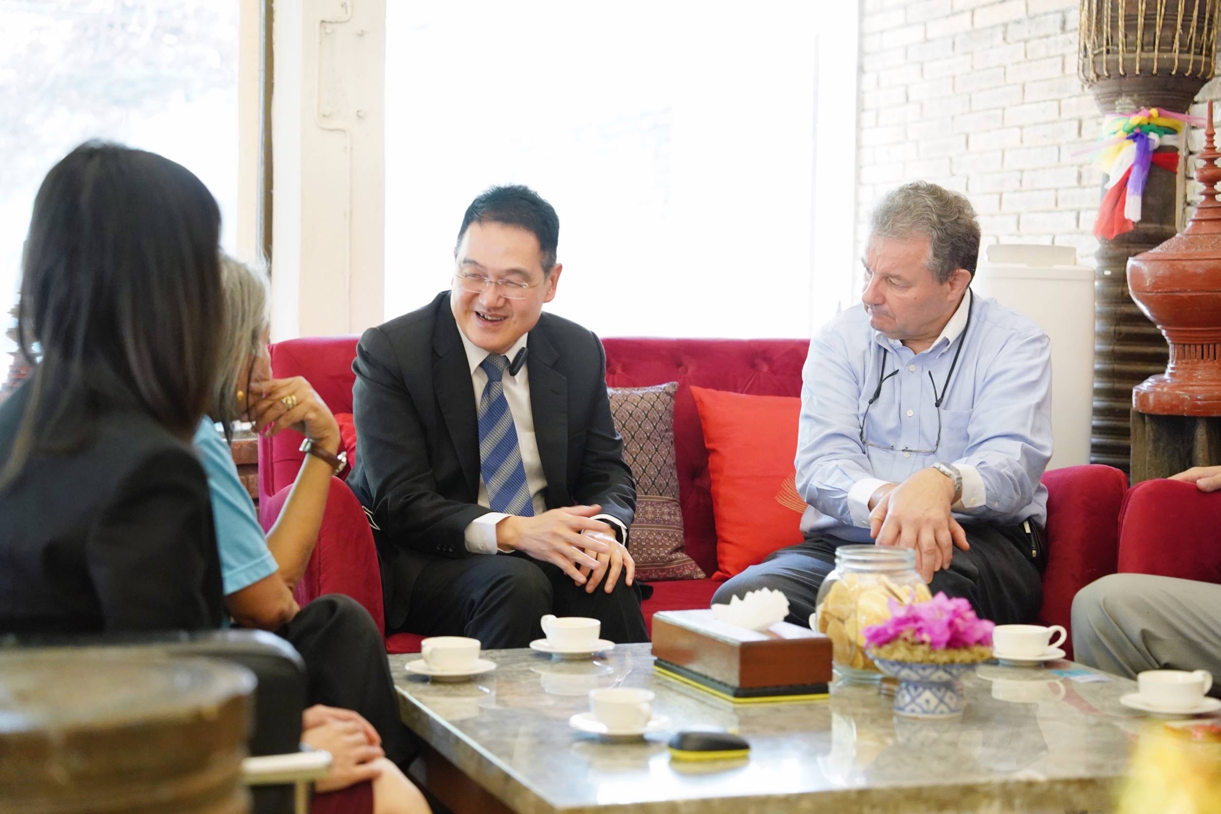 ศ.(เชี่ยวชาญพิเศษ)นพ.บรรณกิจ โลจนาภิวัฒน์ คณบดีคณะแพทยศาสตร์ มช. พร้อมคณะ ปรึกษาหารือกับคุณ Marc H. Dumur Honorary Consul Consulate of Switzerland in Thailand / Chairman The Foundation for the Education of Rural Children และคุณจิตรา กลั่นประยูร ผู้บริหารบ้านสบายวิลเลจ ดูแลผู้สูงอายุเชียงใหม่ ด้านการปรับปรุงอาคารสุจิณฺโณ ,อาคารผู้ป่วยอื่นที่เกี่ยวข้อง และการดูแลรักษาพยาบาลชาวต่างประเทศ ในวันที่ 7 มีนาคม 2567 ณ บ้านสบาย วิลเลจ รีสอร์ท แอนด์ สปา อ.เมือง จ.เชียงใหม่