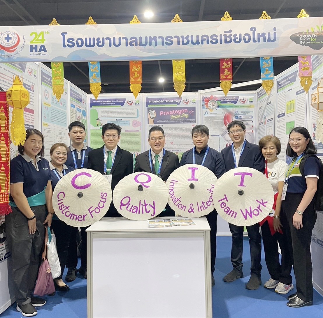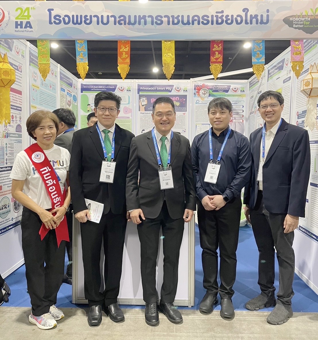 ศ.(เชี่ยวชาญพิเศษ) นพ.บรรณกิจ โลจนาภิวัฒน์ คณบดีคณะแพทยศาสตร์ มช. พร้อมด้วย รศ.นพ.นเรนทร์ โชติรสนิรมิต ผู้อำนวยการ โรงพยาบาลมหาราชนครเชียงใหม่ , ผศ.นพ.เศรษฐพงศ์ บุญศรี รองคณบดีคณะแพทยศาสตร์ มช. พร้อมคณะผู้บริหาร ร่วมในการประชุม HA National Forum ครั้งที่ 24 ภายใต้แนวคิด “Growth Mindset for Better Healthcare System” ที่จัดในระหว่างวันที่ 12 – 15 มีนาคม 2567 และได้เยี่ยมชมบูธโรงพยาบาลมหาราชนครเชียงใหม่ คณะแพทยศาสตร์ มช. โดยมีบุคลากรจากหน่วยงานภาครัฐ และเอกชน รวมถึงผู้ที่สนใจ เข้าร่วมเยี่ยมชม เมื่อวันที่ 13 มีนาคม 2567 ณ ศูนย์การประชุม IMPACT FORUM เมืองทองธานี อ.ปากเกร็ด จ.นนทบุรี