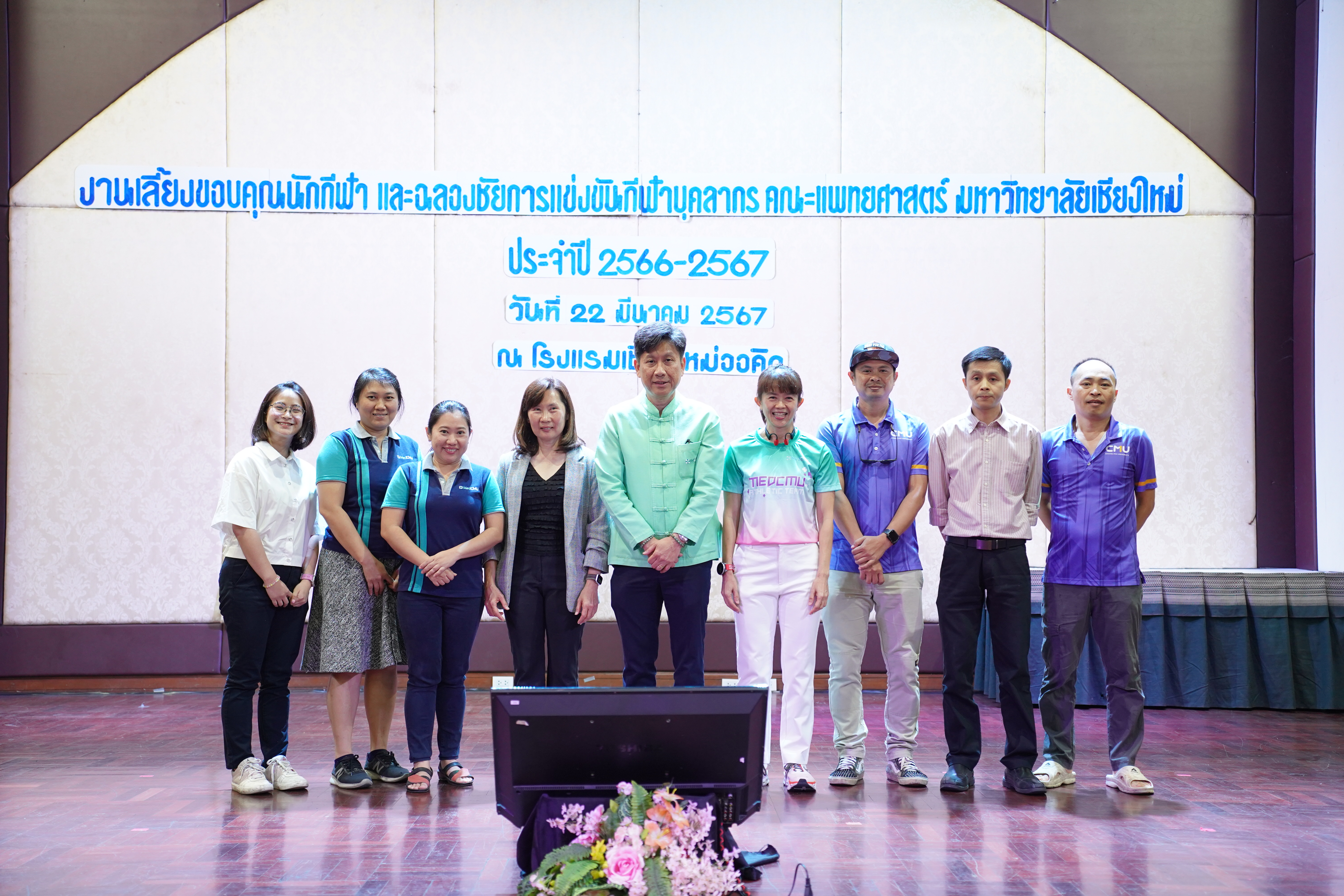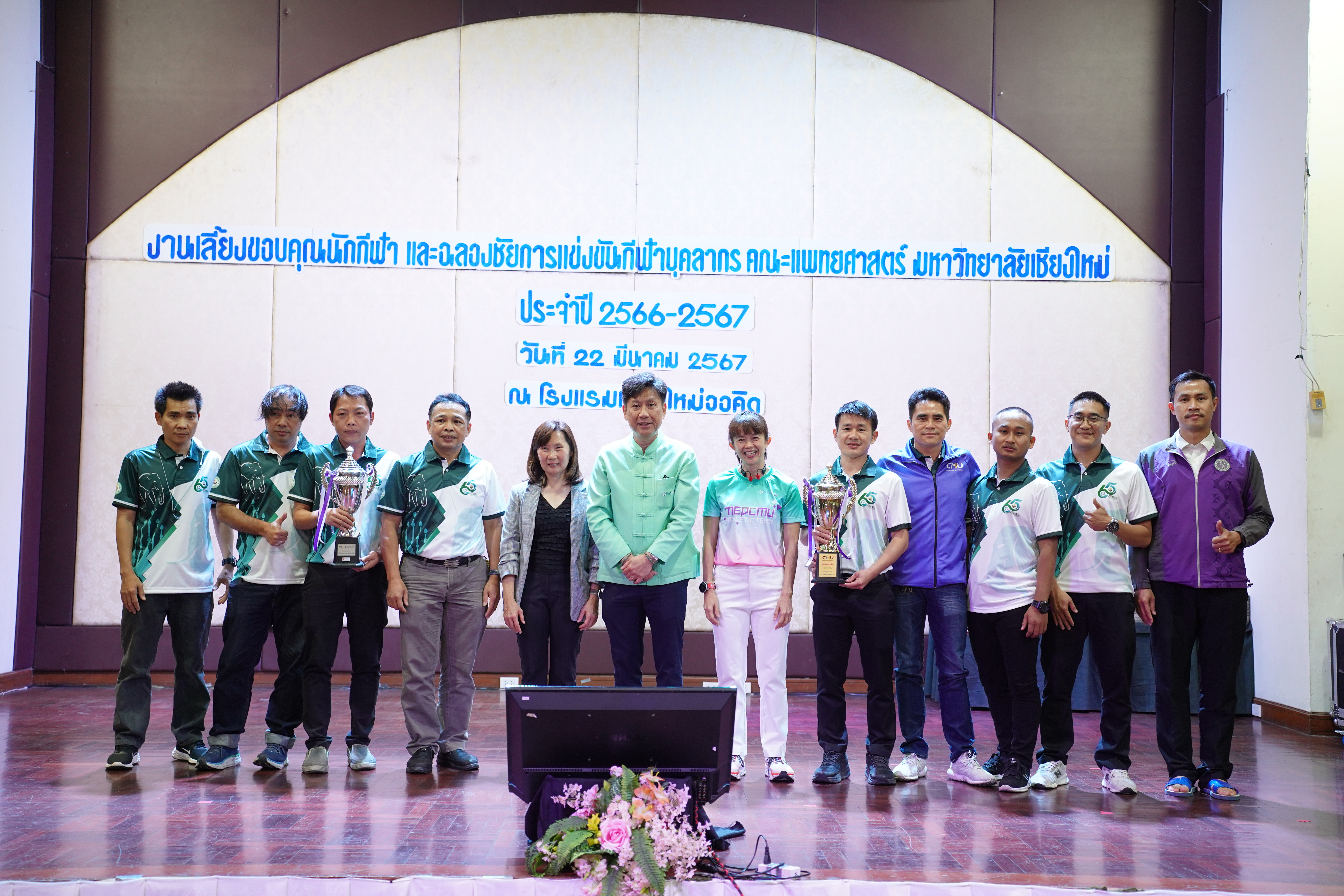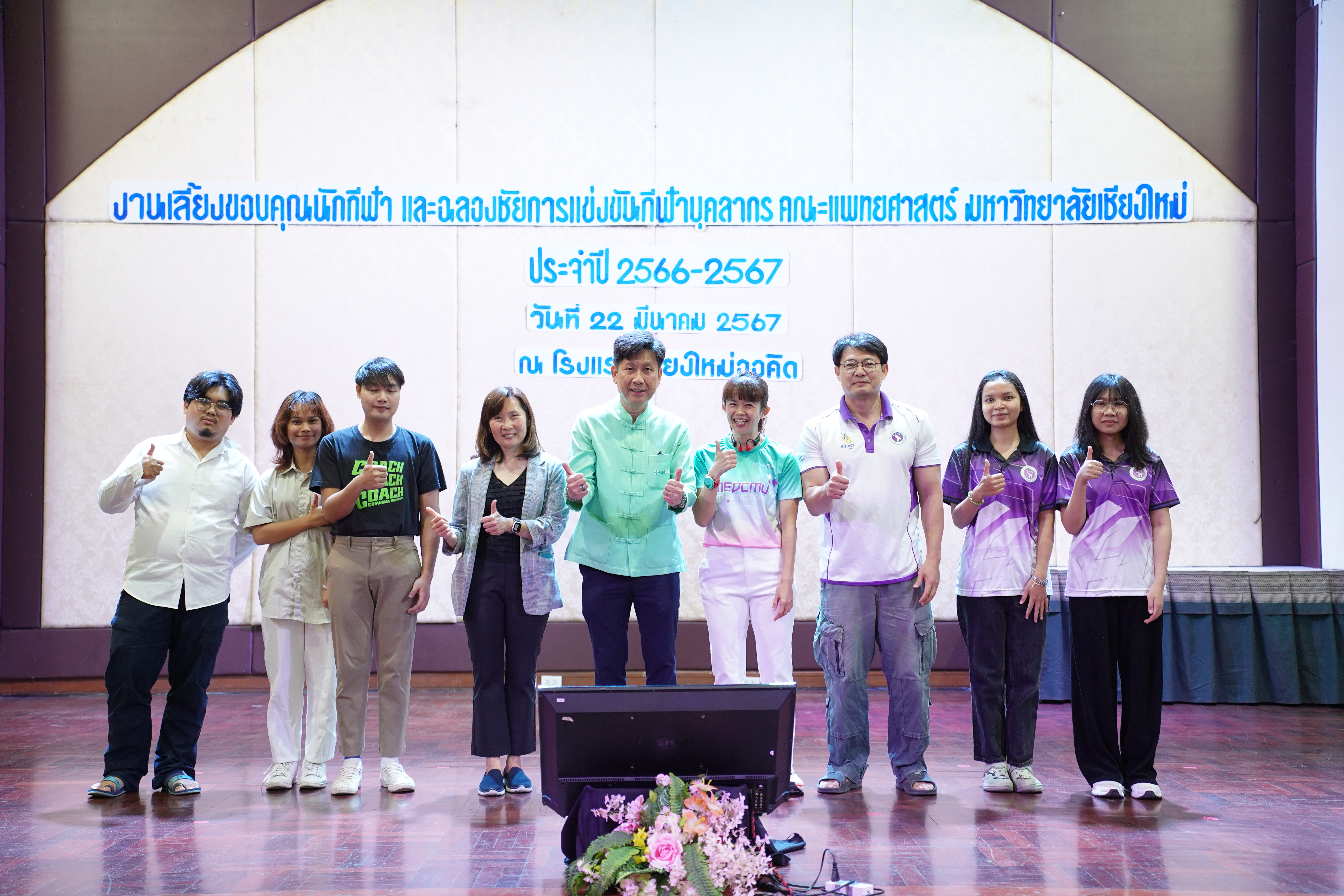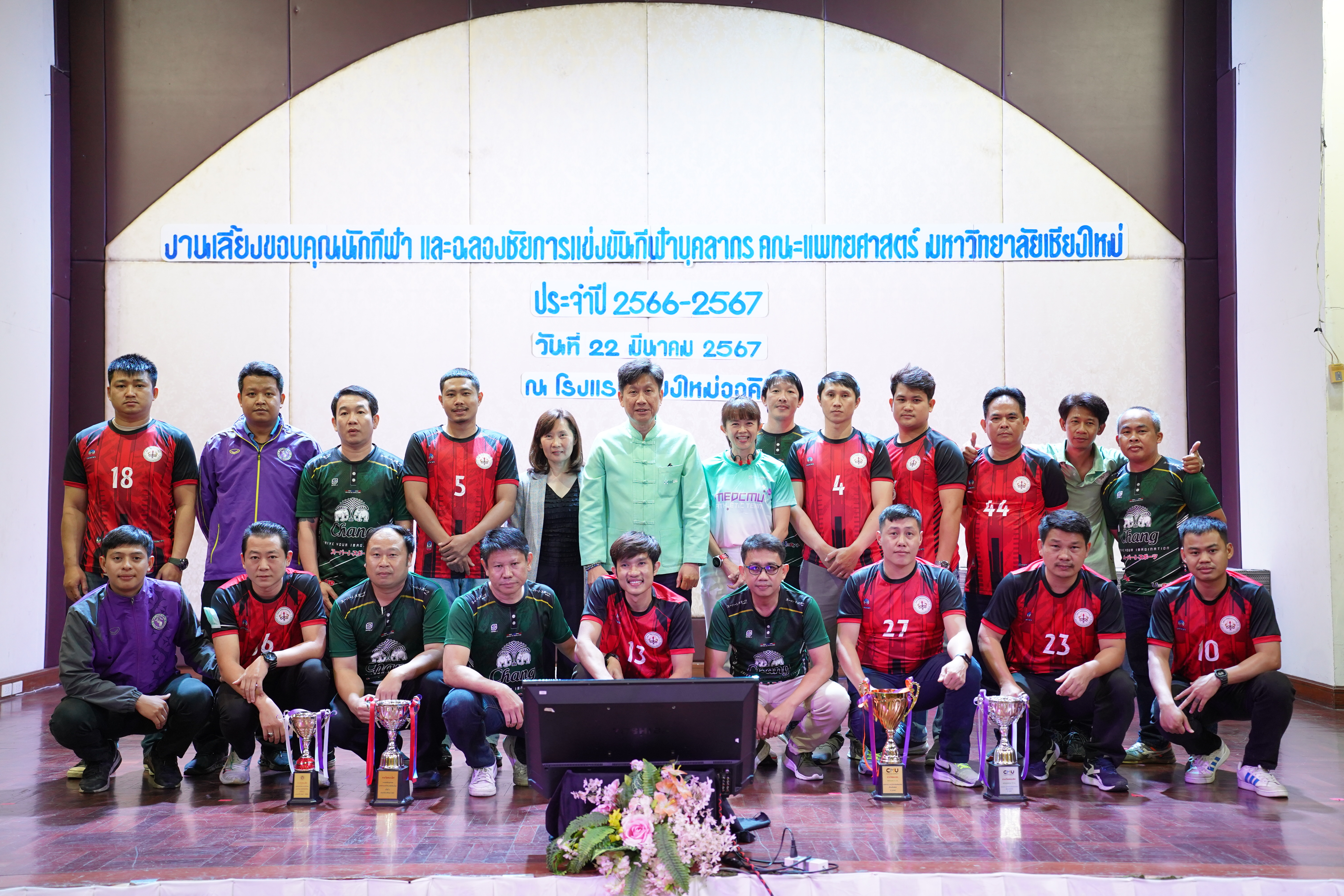 รศ.นพ.ณัฐพงศ์ โฆษชุณหนันท์ รองคณบดีคณะแพทยศาสตร์ มช. เป็นประธานในพิธีเปิดงานเลี้ยงขอบคุณนักกีฬา และฉลองชัยการแข่งขันกีฬาบุคลากรคณะแพทยศาสตร์ มช. ประจำปี 2566-2567 โดยมีทีมนักกีฬาที่ได้รับรางวัลทั้งหมด 17 ทีม พร้อมด้วยคณะผู้บริหาร คณาจารย์ และบุคลากรเข้าร่วมภายในงาน เพื่อสร้างความสัมพันธ์อันดีและร่วมส่งกำลังใจให้แก่นักกีฬา เมื่อวันที่ 22 มีนาคม 2567 ณ โรงแรมเชียงใหม่ออคิด อ.เมือง จ.เชียงใหม่