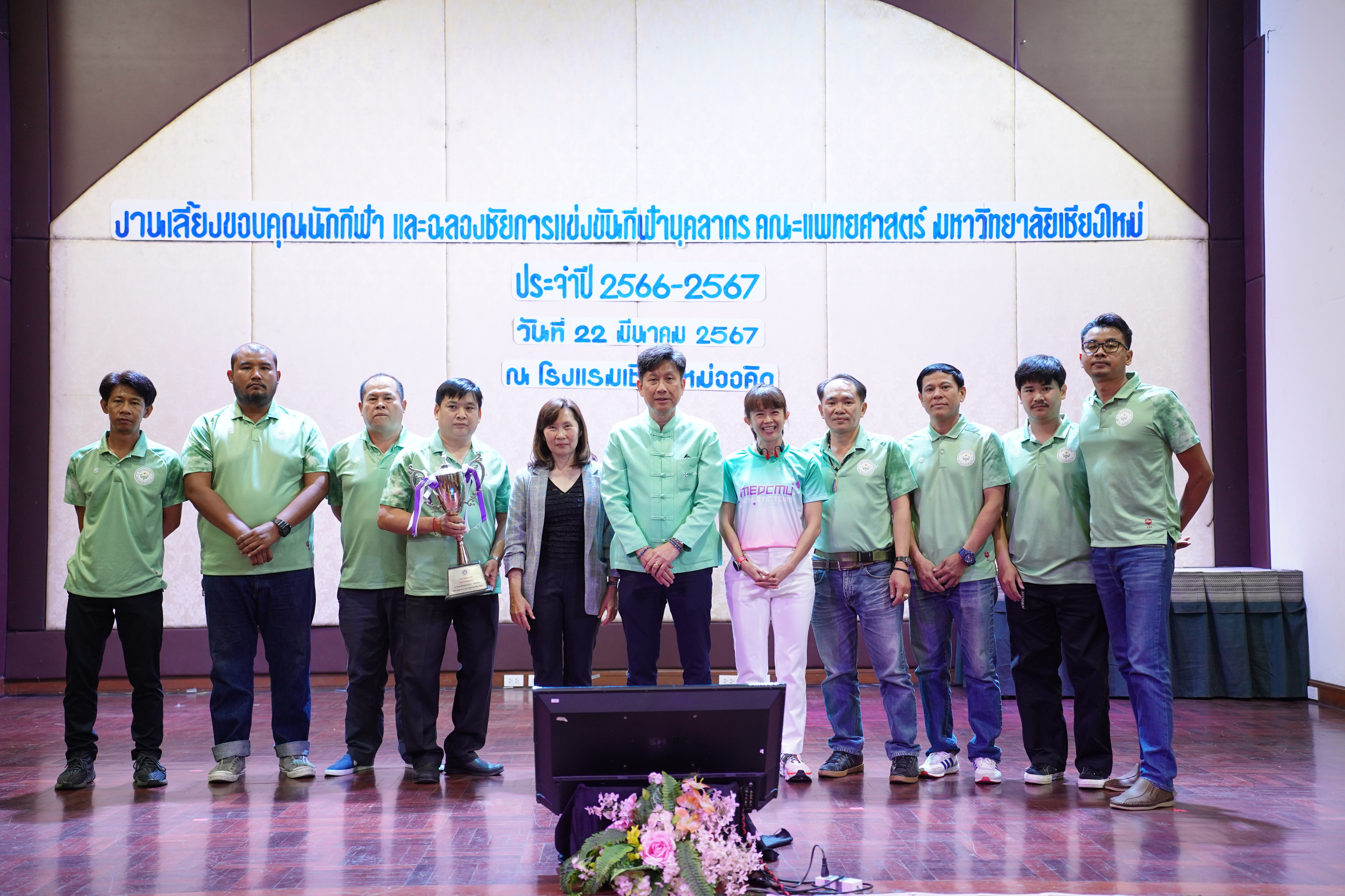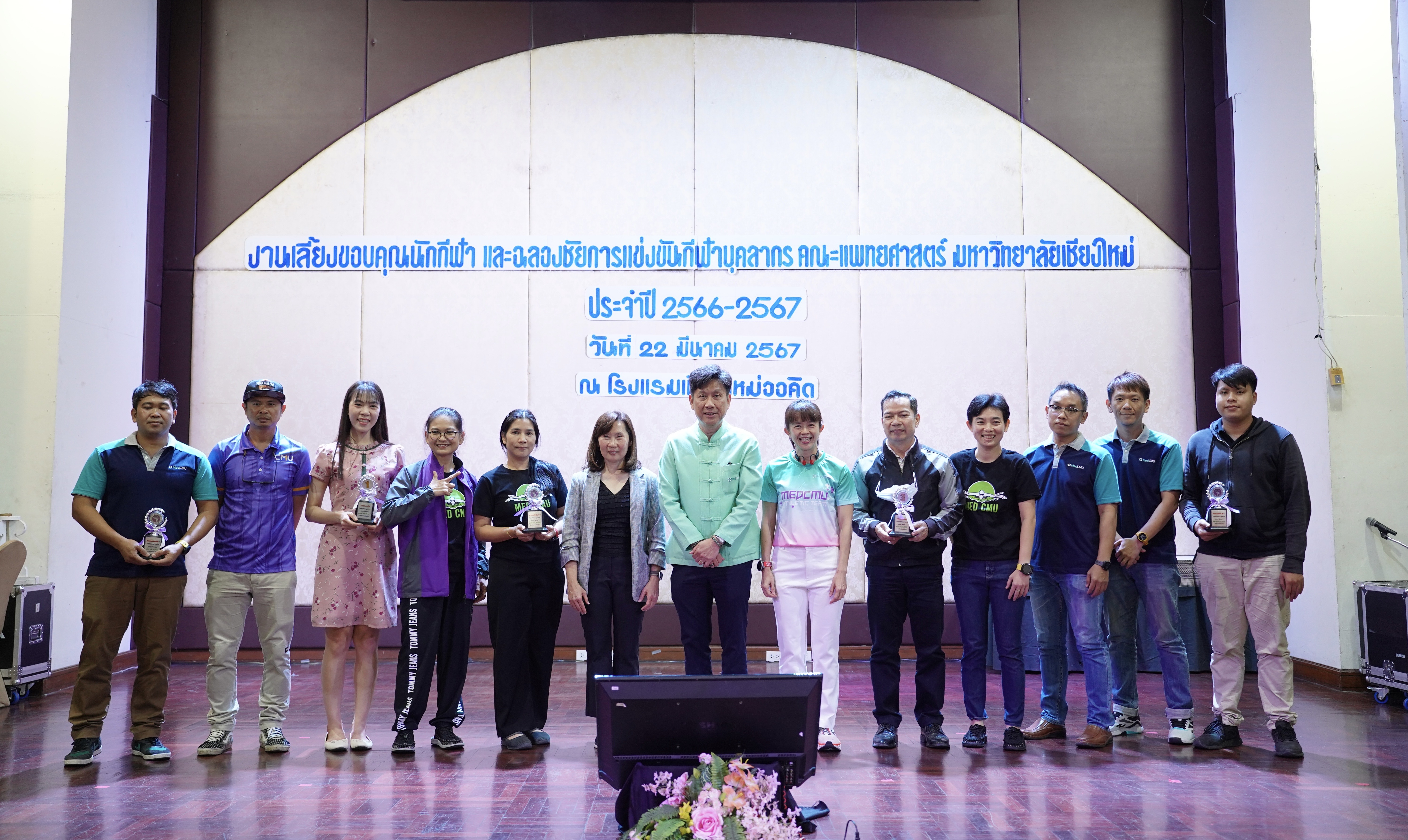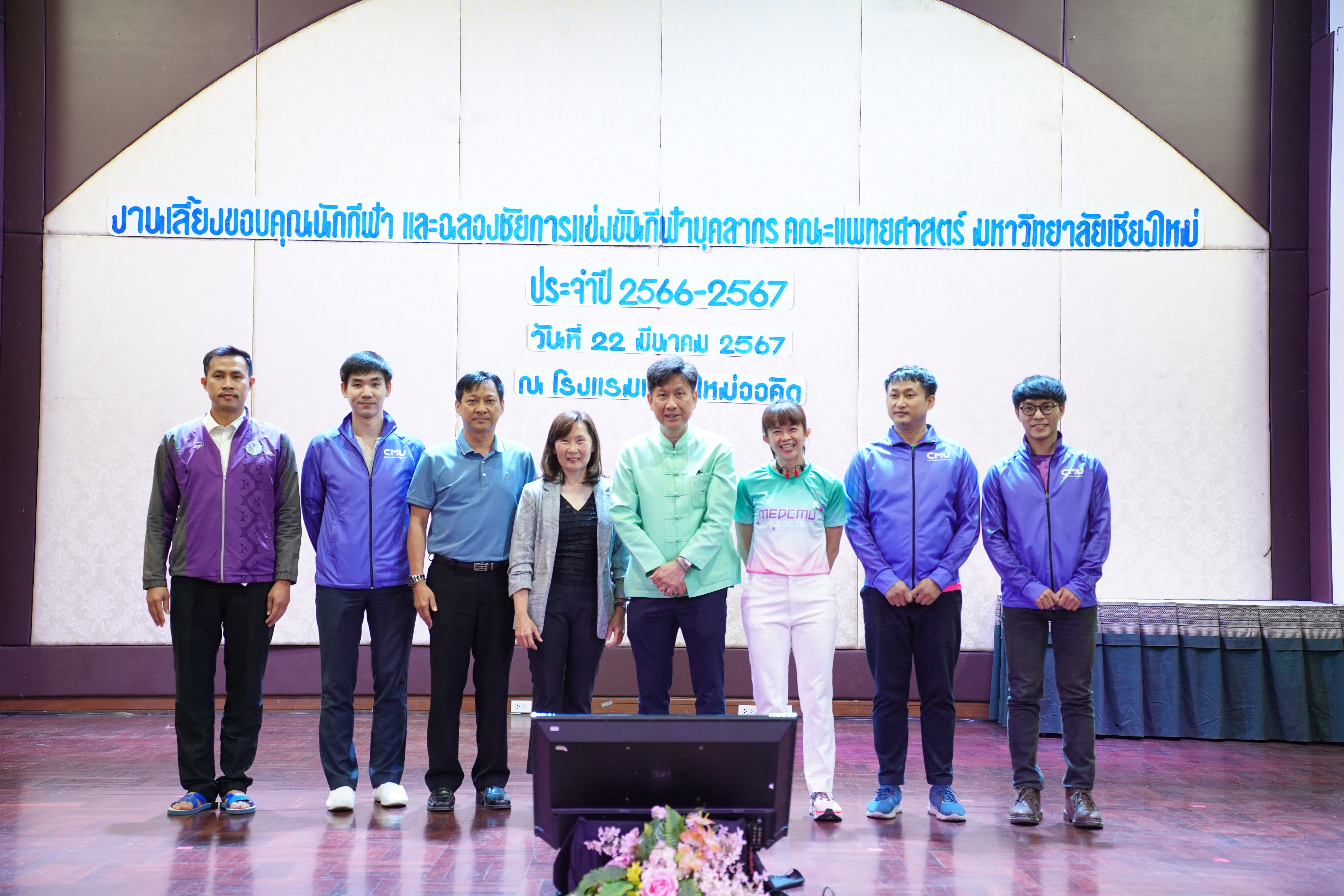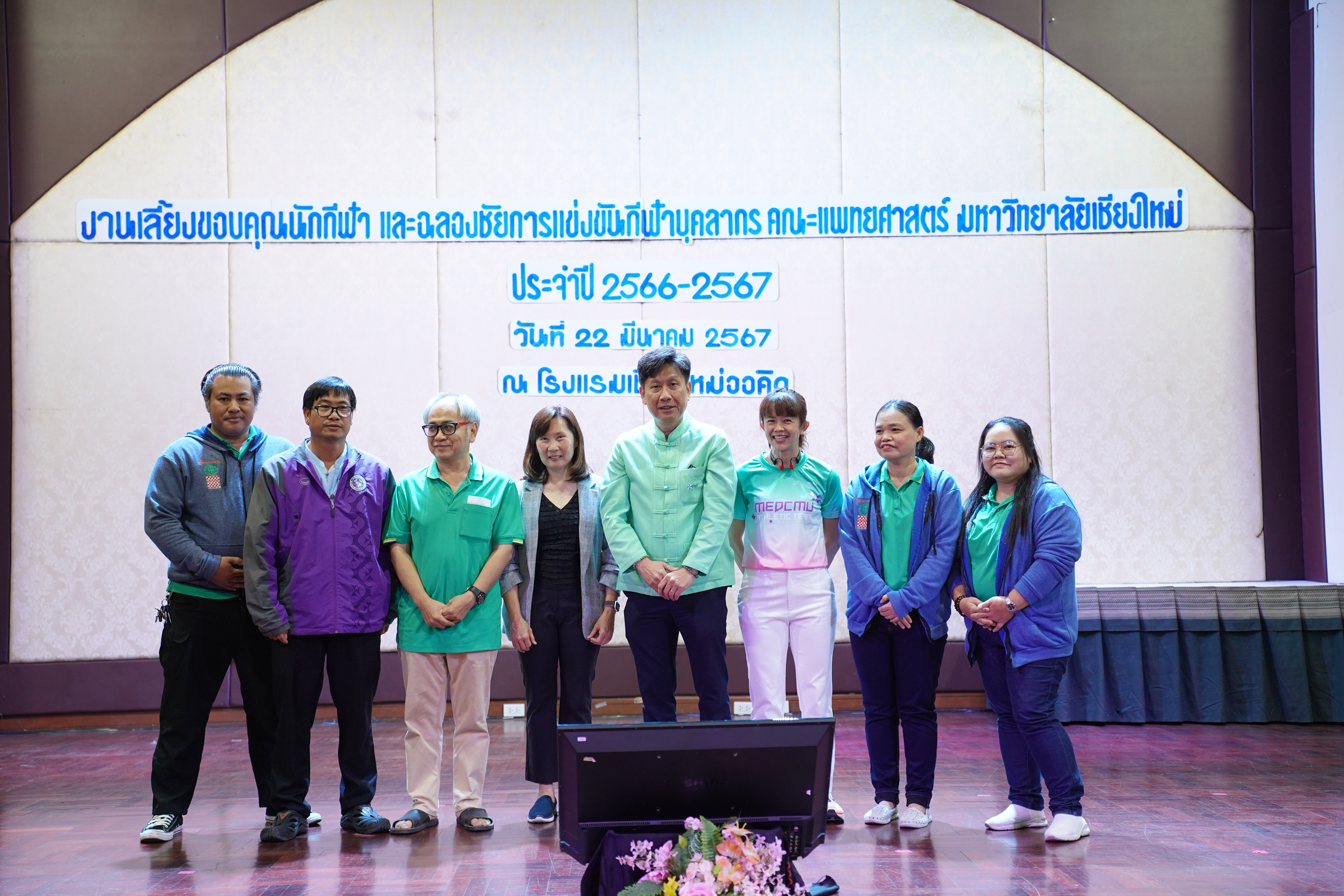 รศ.นพ.ณัฐพงศ์ โฆษชุณหนันท์ รองคณบดีคณะแพทยศาสตร์ มช. เป็นประธานในพิธีเปิดงานเลี้ยงขอบคุณนักกีฬา และฉลองชัยการแข่งขันกีฬาบุคลากรคณะแพทยศาสตร์ มช. ประจำปี 2566-2567 โดยมีทีมนักกีฬาที่ได้รับรางวัลทั้งหมด 17 ทีม พร้อมด้วยคณะผู้บริหาร คณาจารย์ และบุคลากรเข้าร่วมภายในงาน เพื่อสร้างความสัมพันธ์อันดีและร่วมส่งกำลังใจให้แก่นักกีฬา เมื่อวันที่ 22 มีนาคม 2567 ณ โรงแรมเชียงใหม่ออคิด อ.เมือง จ.เชียงใหม่