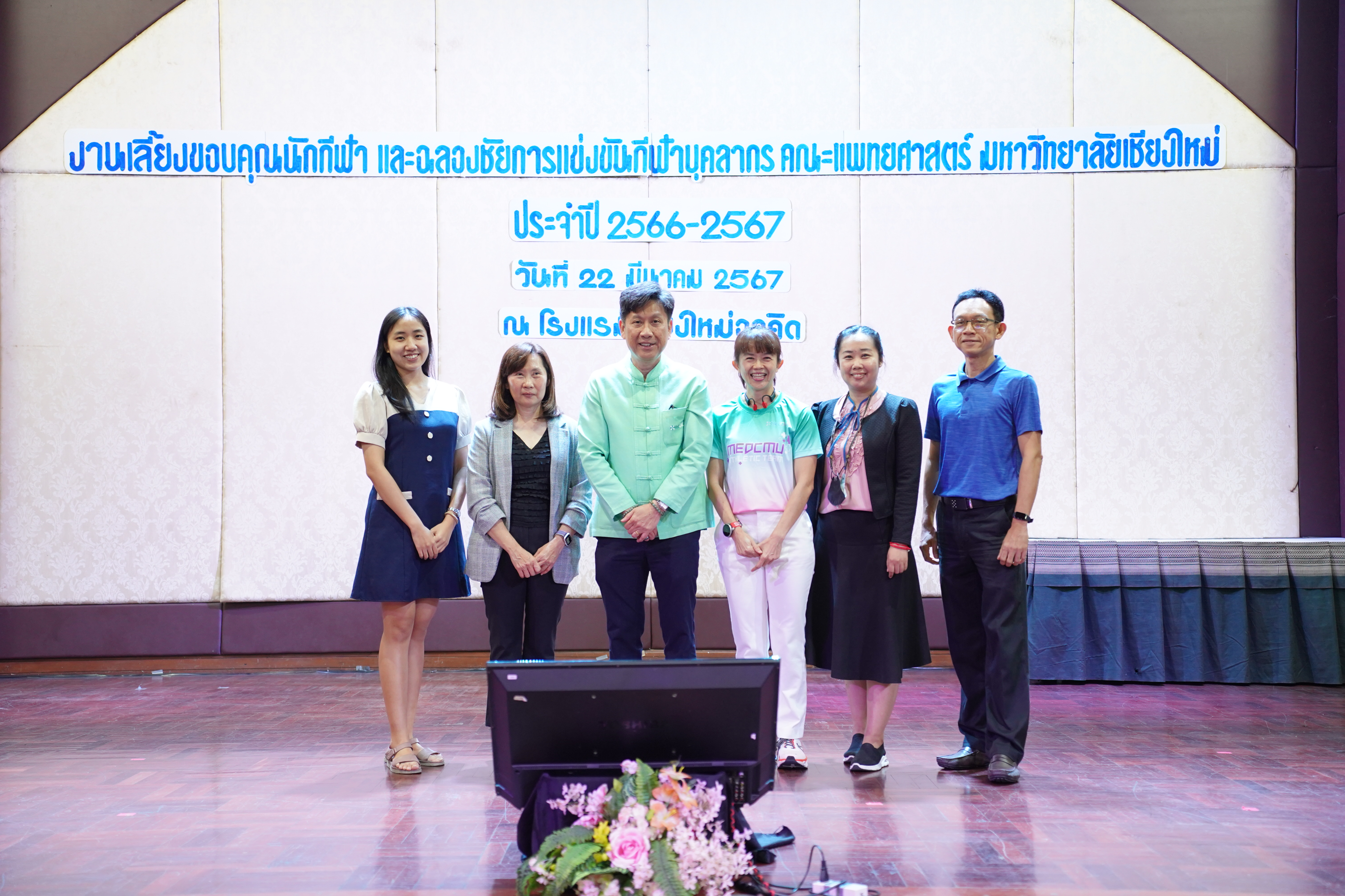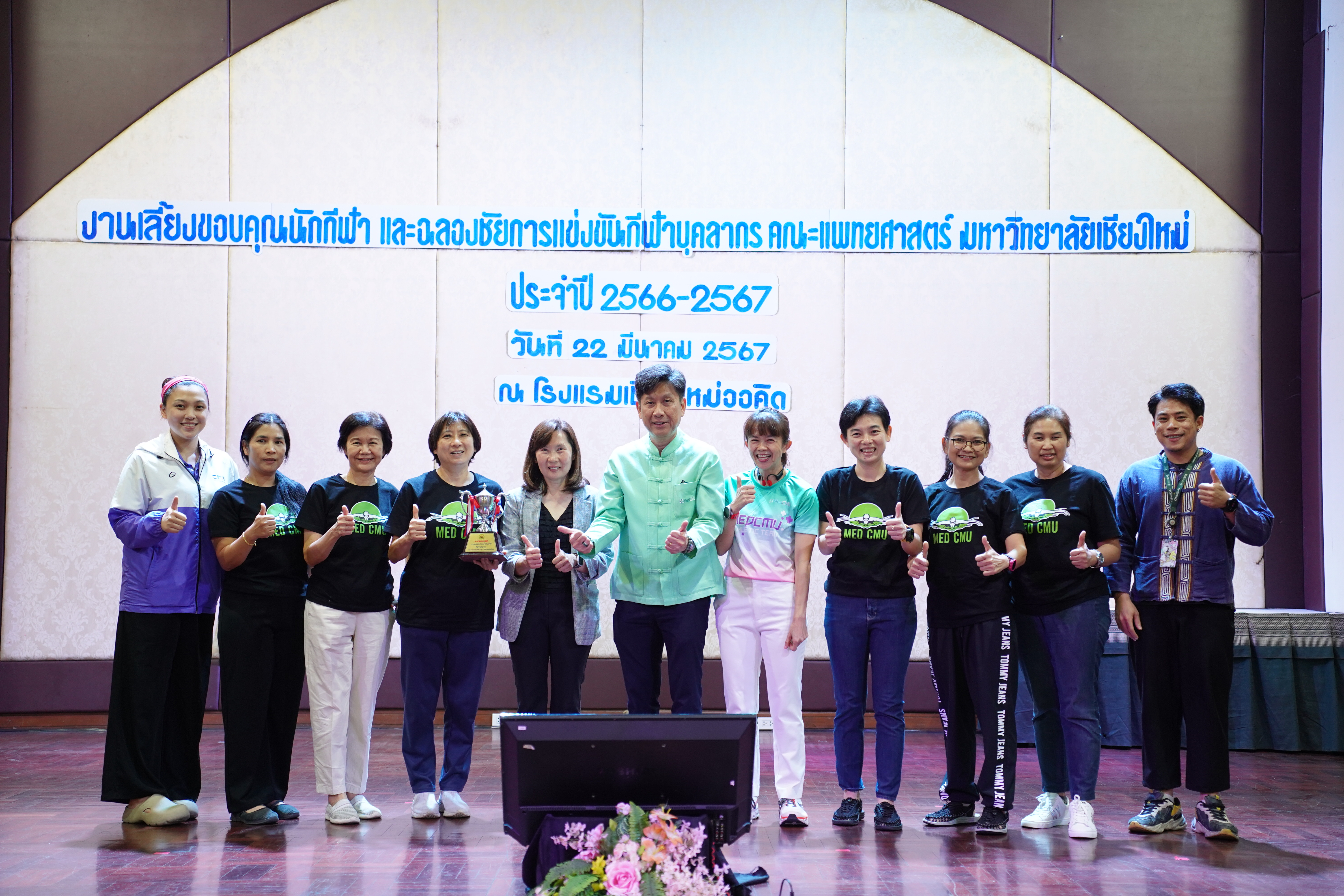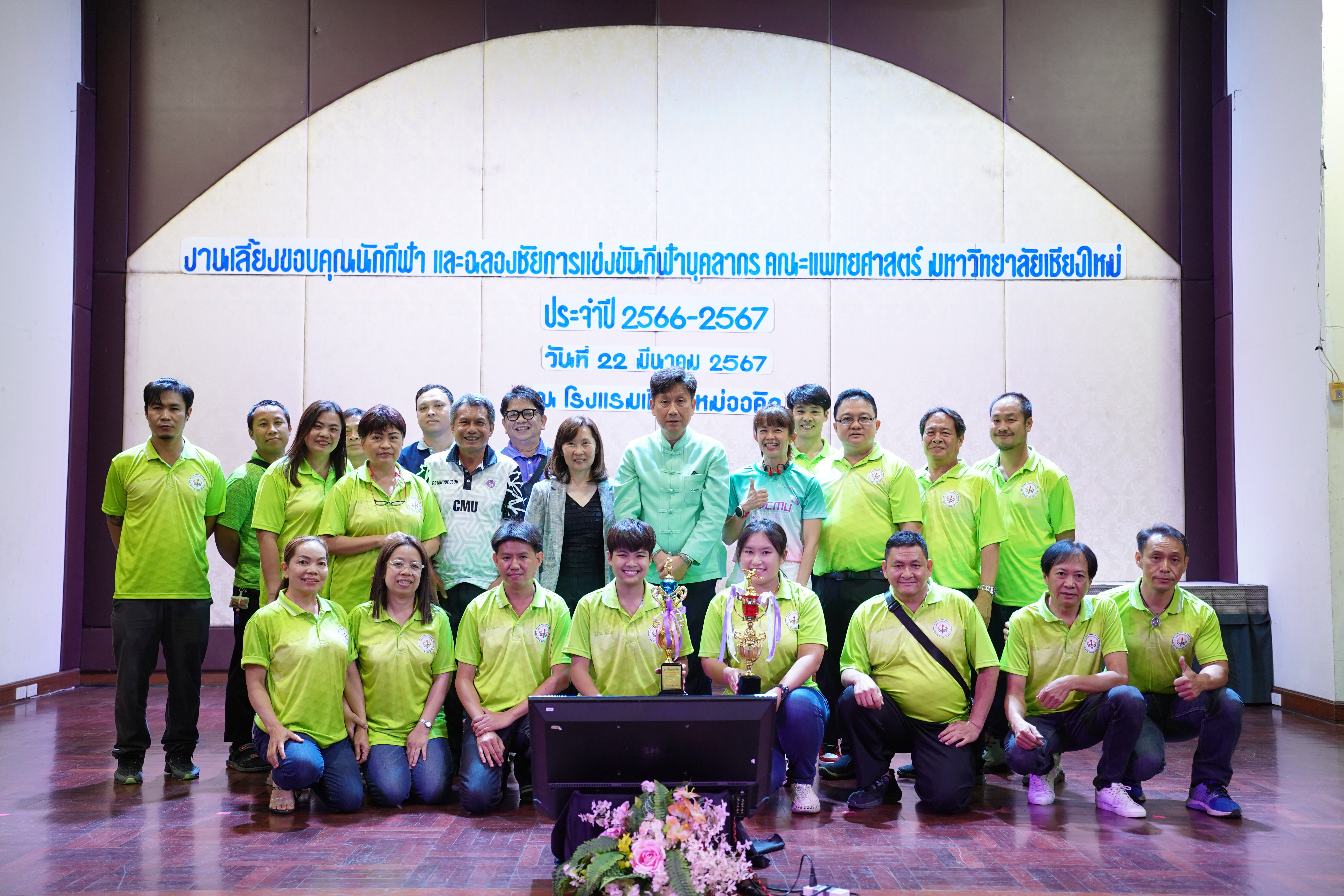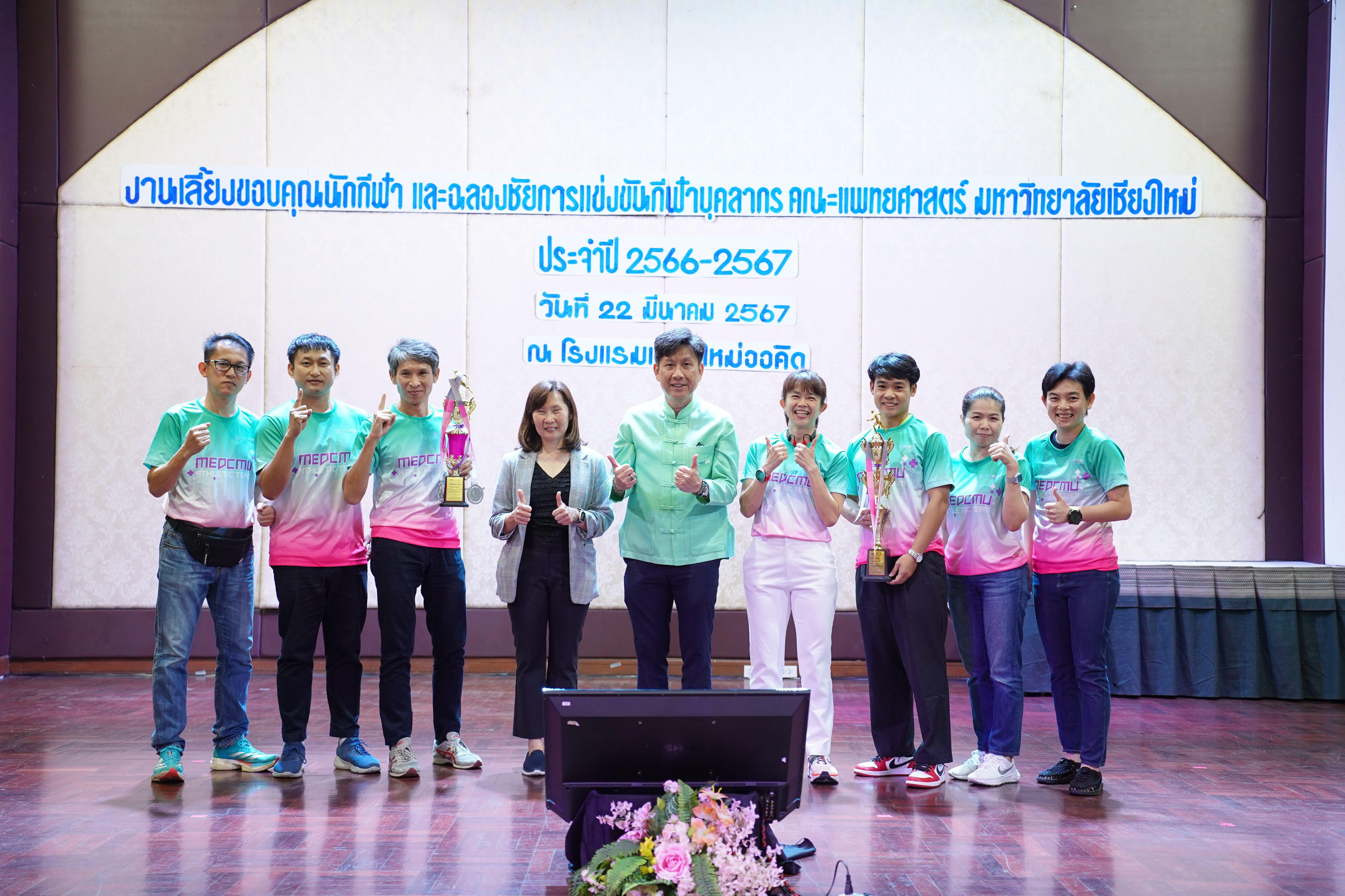 รศ.นพ.ณัฐพงศ์ โฆษชุณหนันท์ รองคณบดีคณะแพทยศาสตร์ มช. เป็นประธานในพิธีเปิดงานเลี้ยงขอบคุณนักกีฬา และฉลองชัยการแข่งขันกีฬาบุคลากรคณะแพทยศาสตร์ มช. ประจำปี 2566-2567 โดยมีทีมนักกีฬาที่ได้รับรางวัลทั้งหมด 17 ทีม พร้อมด้วยคณะผู้บริหาร คณาจารย์ และบุคลากรเข้าร่วมภายในงาน เพื่อสร้างความสัมพันธ์อันดีและร่วมส่งกำลังใจให้แก่นักกีฬา เมื่อวันที่ 22 มีนาคม 2567 ณ โรงแรมเชียงใหม่ออคิด อ.เมือง จ.เชียงใหม่