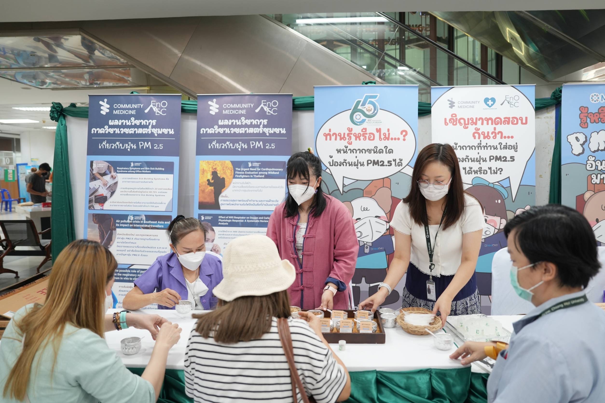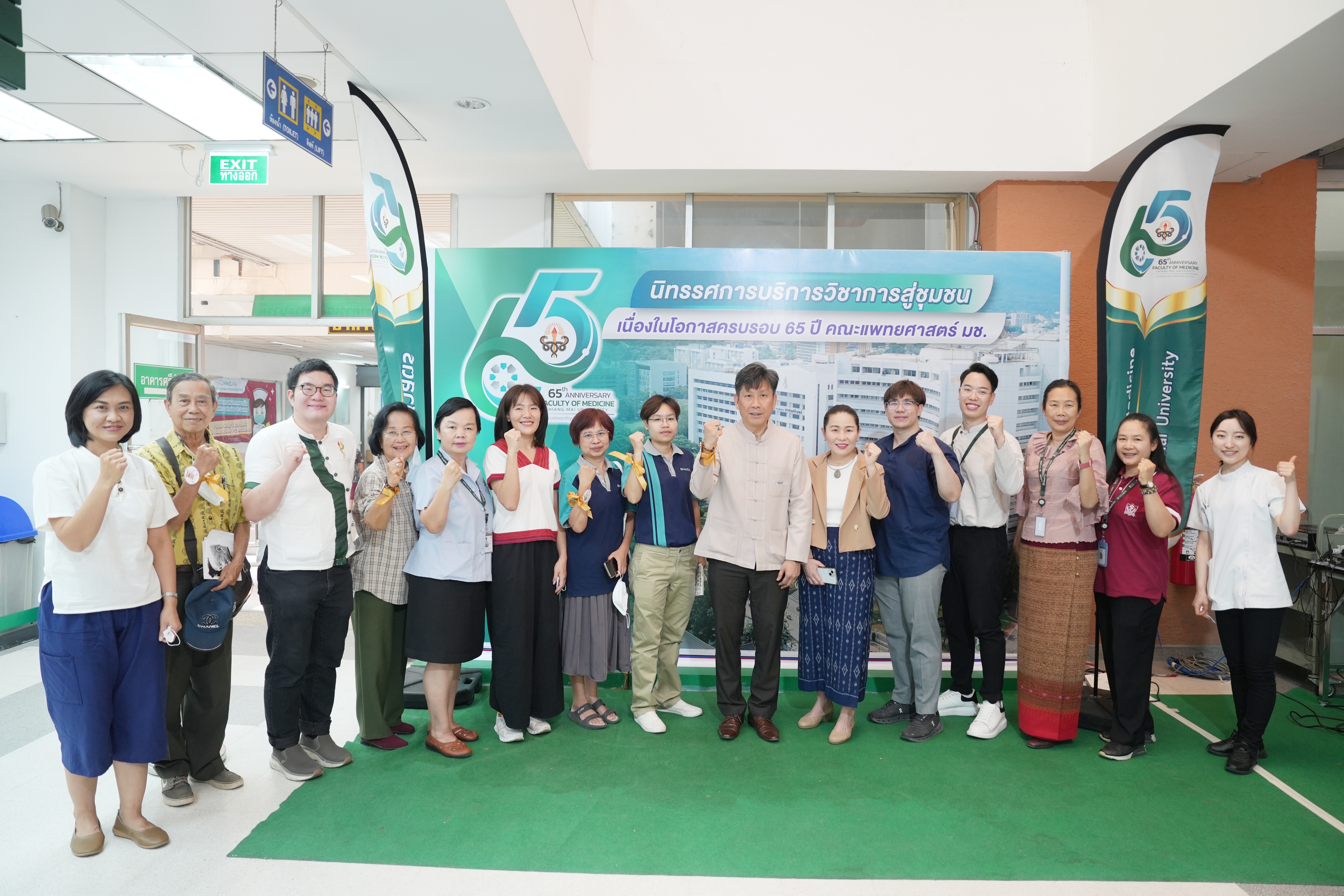 รศ.นพ.ณัฐพงศ์ โฆษชุณหนันท์ รองคณบดีคณะแพทยศาสตร์ มช. เป็นประธานในพิธีเปิดนิทรรศการบริการวิชาการสู่ชุมชน ในงานครบรอบ 65 ปี คณะแพทยศาสตร์ มช. Happy & Healthy Elderly : กิจกรรม “ม่วนอกม่วนใจ๋ ปี๋ใหม่แข็งแฮง” โดยมี รศ.ดร.รัตนา ทรัพย์บำเรอ หัวหน้าภาควิชาเวชศาสตร์ชุมชน คณะแพทยศาสตร์ มช. กล่าวรายงานวัตถุประสงค์ของการจัดงาน โดยภายในงานได้จัดให้มีกิจกรรมสรงน้ำพระ ขอพรปีใหม่เมือง วัดความดันโลหิต กิจกรรมประเมินภาวะสุขภาพ การตรวจวัดมวลร่างกาย (Body composition) การทดสอบแรงบีบมือ (Grip Strength) การประเมินการทรงตัว (Balance) การพบแพทย์ และให้ความรู้เรื่องวัคซีน Workshop ทำยาดมสมุนไพร และการแสดงดนตรีของนักศึกษาแพทย์ จัดโดยภาควิชาเวชศาสตร์ชุมชน คณะแพทยศาสตร์ มช. เมื่อวันที่ 4 เมษายน 2567 ณ บริเวณห้องโถง ชั้น 1 อาคารเฉลิมพระบารมี คณะแพทยศาสตร์ มช.