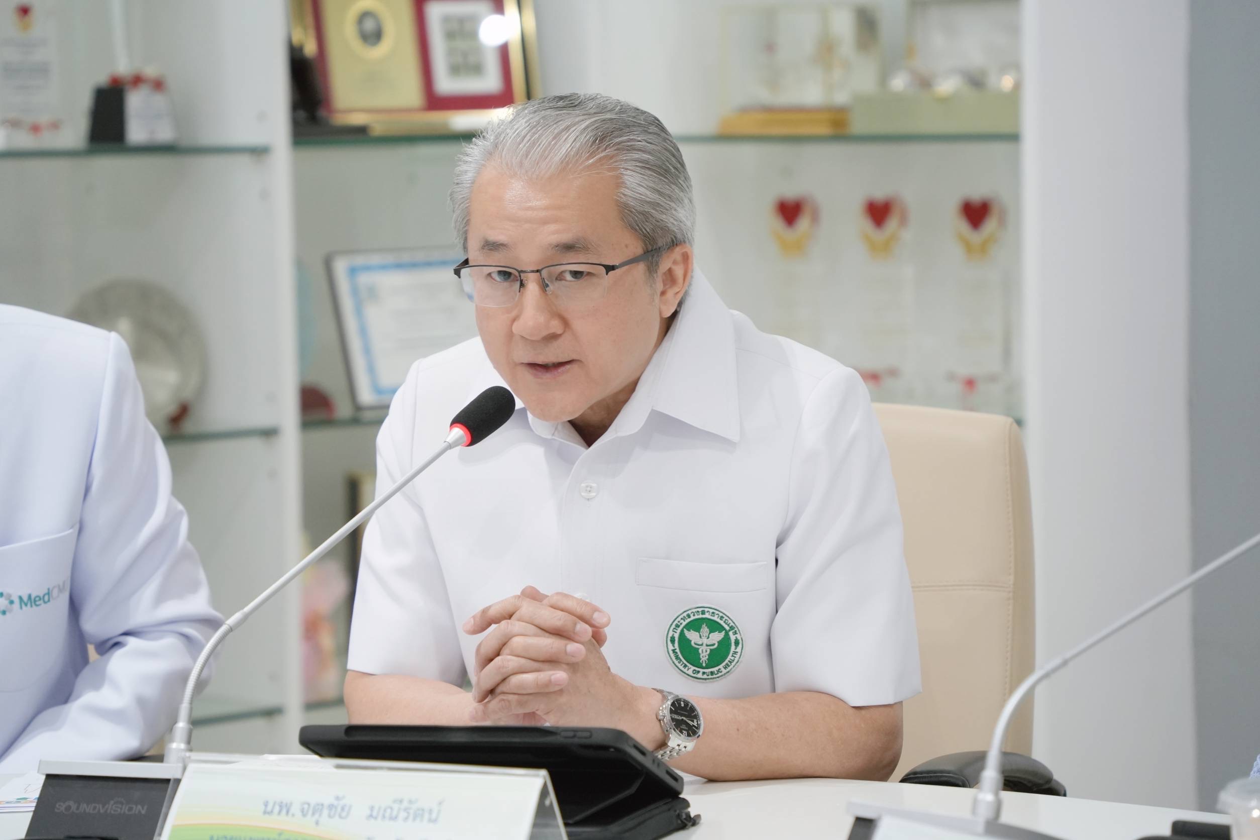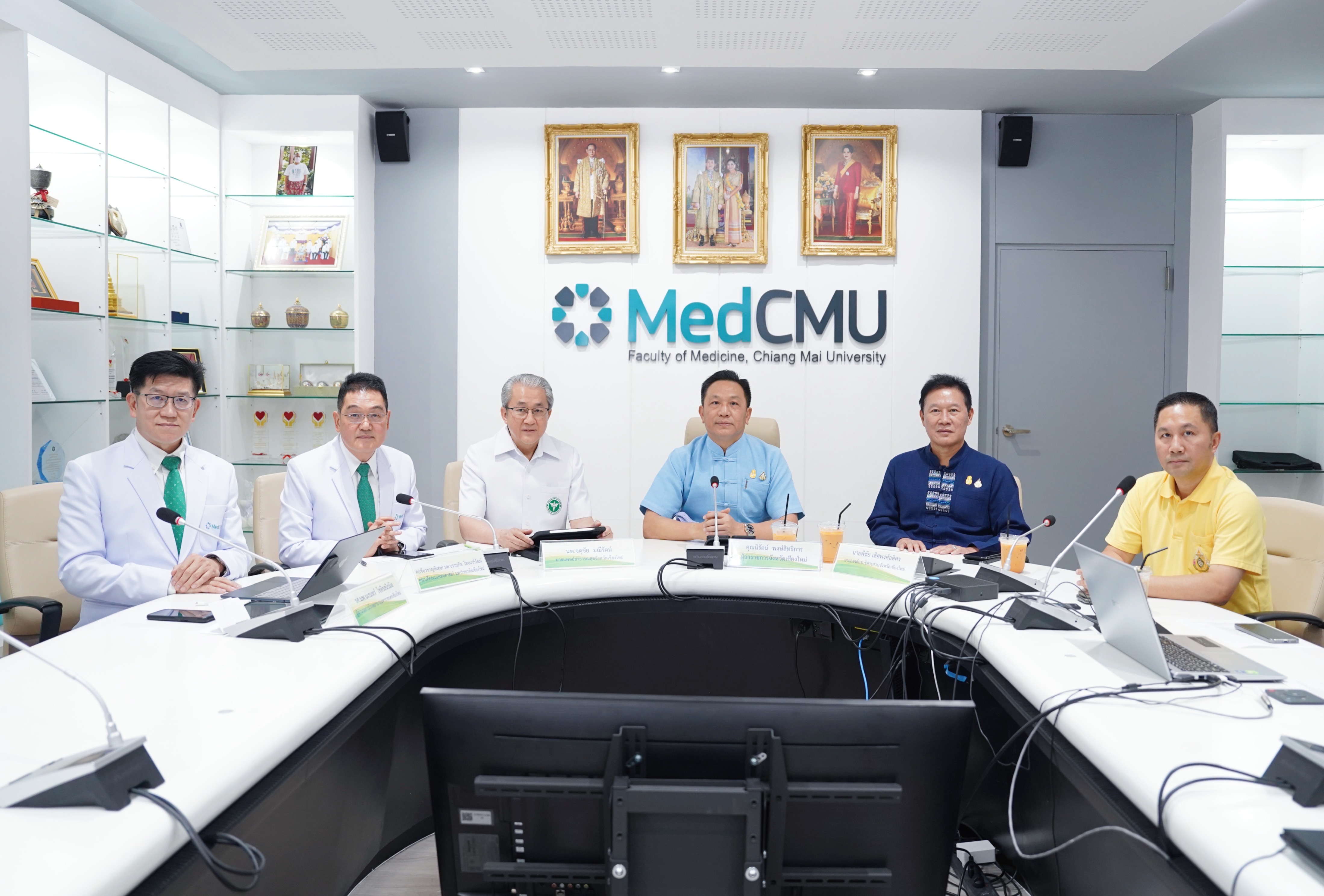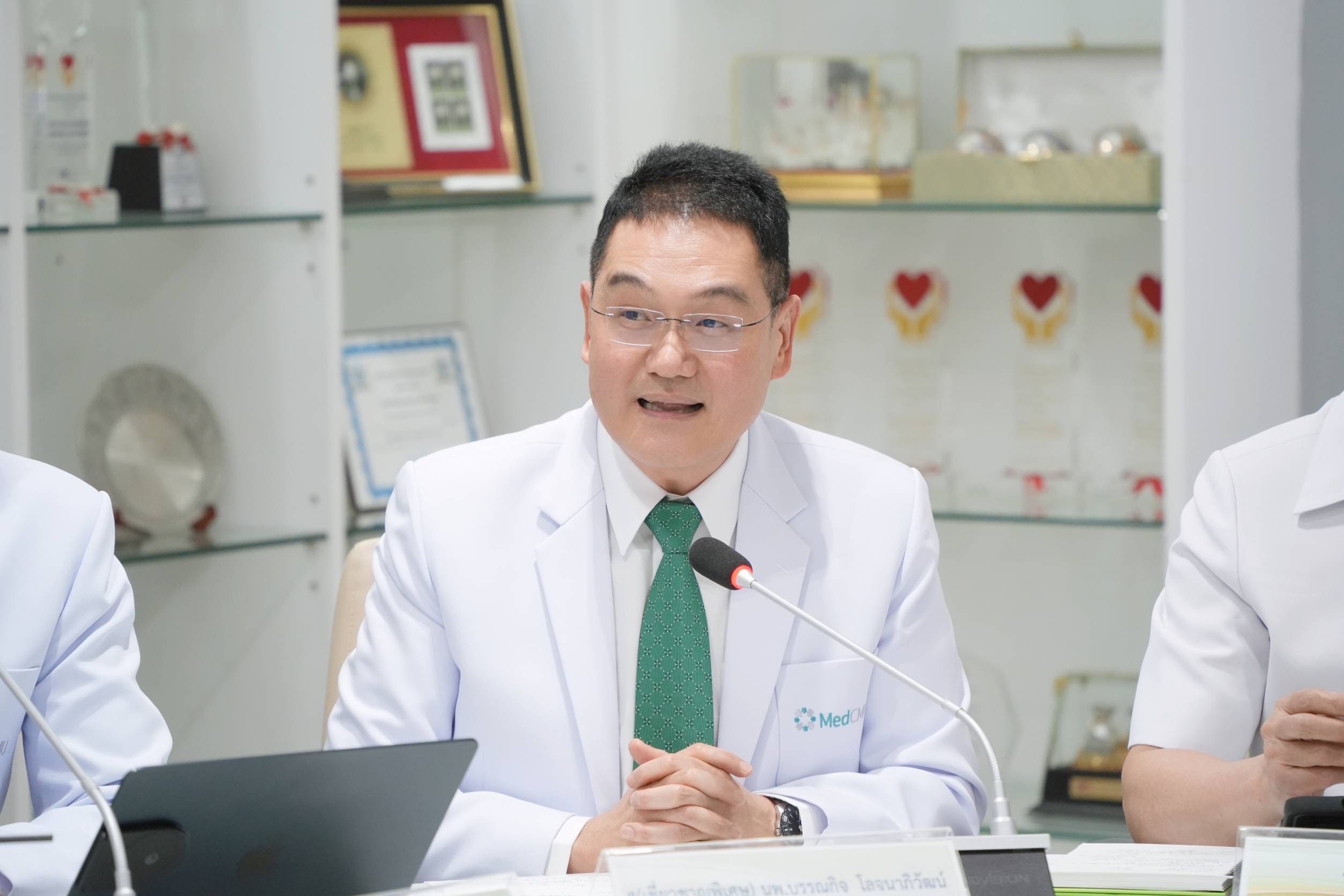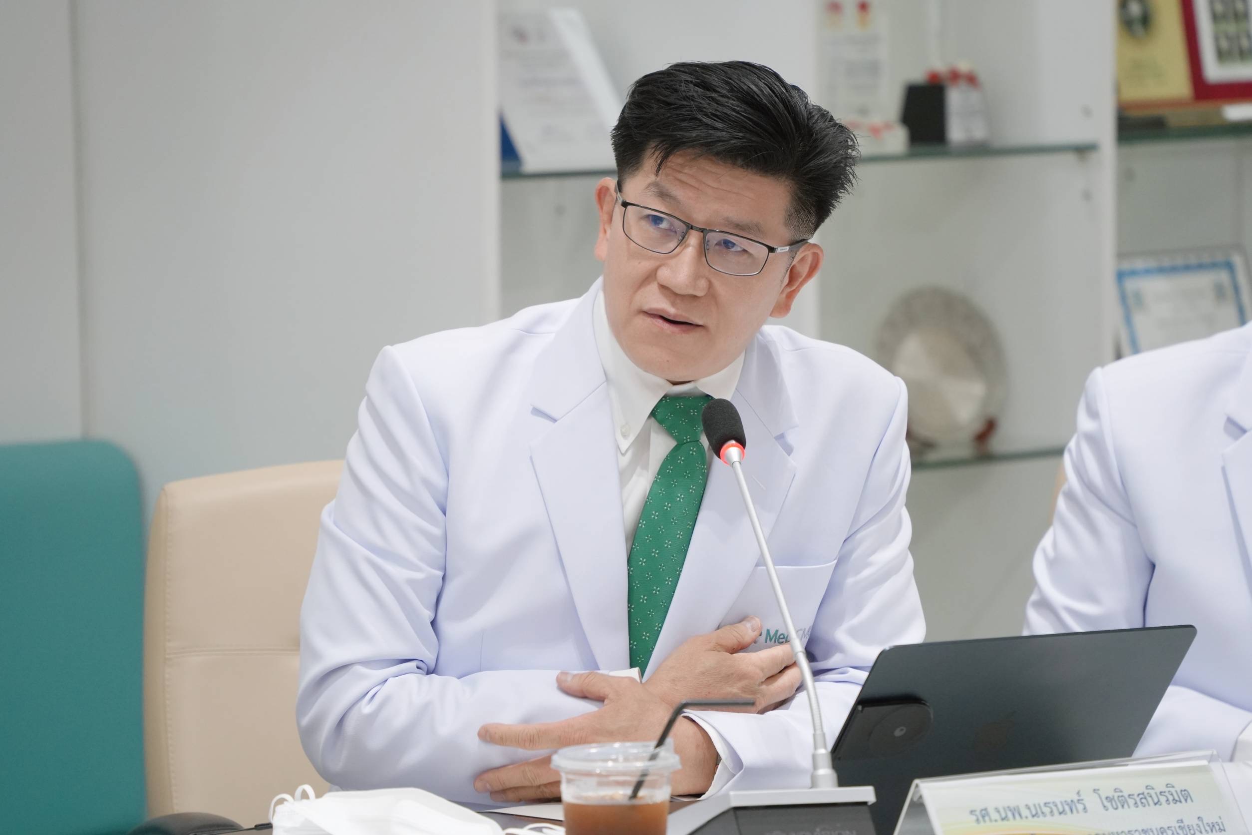 ศ.(เชี่ยวชาญพิเศษ)นพ.บรรณกิจ โลจนาภิวัฒน์ คณบดีคณะแพทยศาสตร์ มช. พร้อมด้วย รศ.นพ.นเรนทร์ โชติรสนิรมิต ผู้อำนวยการโรงพยาบาลมหาราชนครเชียงใหม่ ร่วมแถลงข่าว การปฏิบัติการทางการแพทย์และบริการสาธารณสุข เพื่อรักษาผู้ป่วยทางเดินหายใจ และกลุ่มเปราะบางที่ผ่านมา พร้อมให้ข้อมูลจํานวนผู้ป่วยในโรงพยาบาลมหาราชนครเชียงใหม่ และรายละเอียดของฝุ่น PM2.5 ที่มีผลต่อสุขภาพทั้งระยะสั้นและระยะยาว รวมทั้งมาตรการดูแลประชาชนและนักท่องเที่ยวในพื้นที่จังหวัดเชียงใหม่ โดยมีนายนิรัตน์ พงษ์สิทธิถาวร ผู้ว่าราชการจังหวัดเชียงใหม่ เป็นประธานในการแถลงข่าวฯ พร้อมด้วย นพ.จตุชัย มณีรัตน์ นายแพทย์สาธารณสุข จังหวัดเชียงใหม่ , นายพิชัย เลิศพงศ์อดิศร นายกองค์การบริหารส่วนจังหวัดเชียงใหม่ และนายดุสิต พงศาพิพัฒน์ หัวหน้าสำนักงานป้องกันและบรรเทาสาธารณภัย จังหวัดเชียงใหม่ ร่วมแถลงข่าวสื่อมวลชน ในวันที่ 8 เมษายน 2567 ณ ห้องประชุมบุญสม มาร์ติน คณะแพทยศาสตร์ มช.