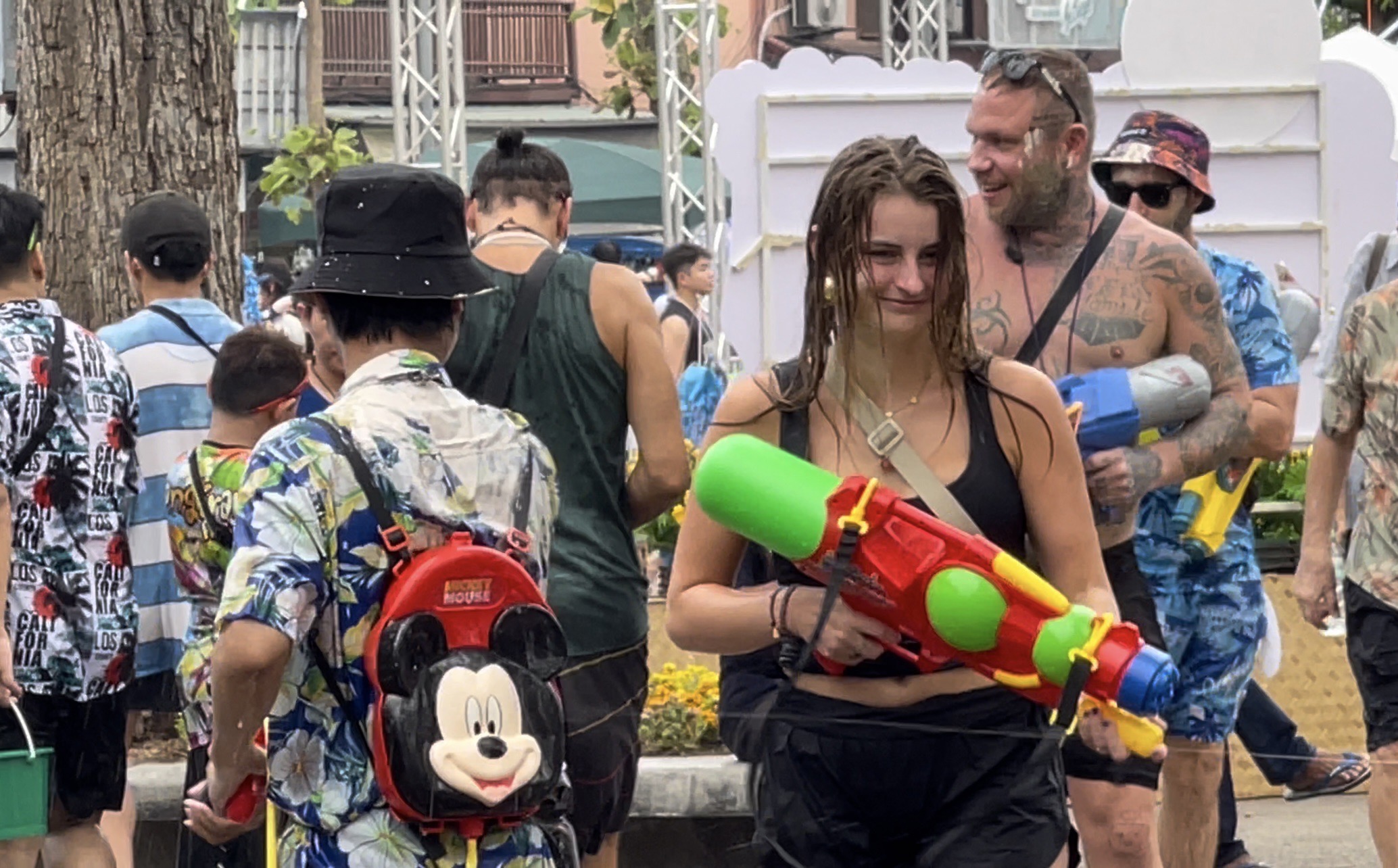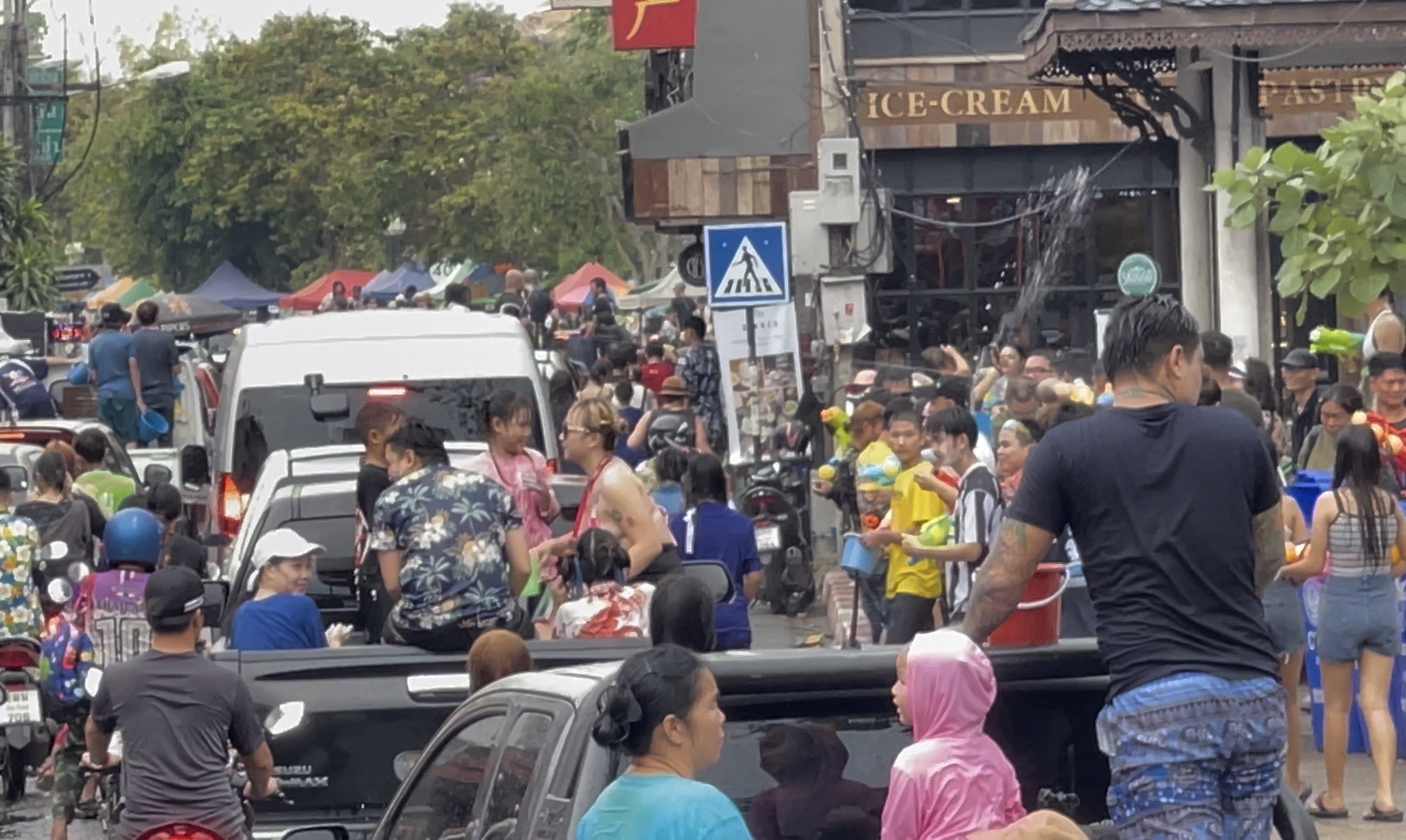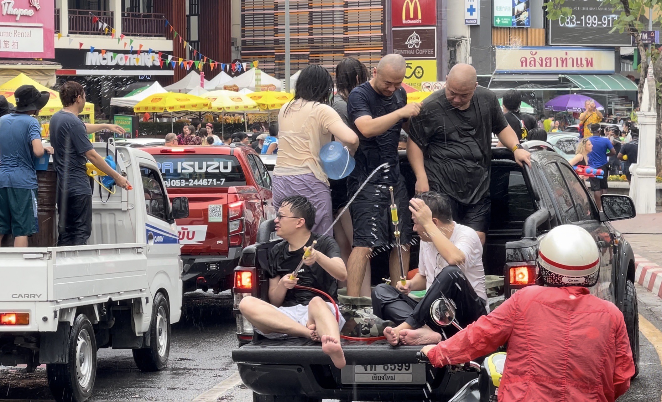 ขณะที่บริเวณข่วงประตูท่าแพในขณะนี้พบว่า บรรดาวัยรุ่นหนุ่มสาว และชาวต่างชาติ ได้ำากันจับกลุ่มเล่นสาดน้ำกันอย่างเนืองแน่น รวมไปถึงบางรายที่นั่งรถกระบะสาดน้ำเล่น เปิดเพลงเข้ากับบรรยากาศเต้นกันอย่างสนุกสนาน โดยมีทางคาดว่าจะละเล่นสาดน้ำกันยาวไปจนถึงช่วงเย็นและช่วงค่ำของวันนี้
