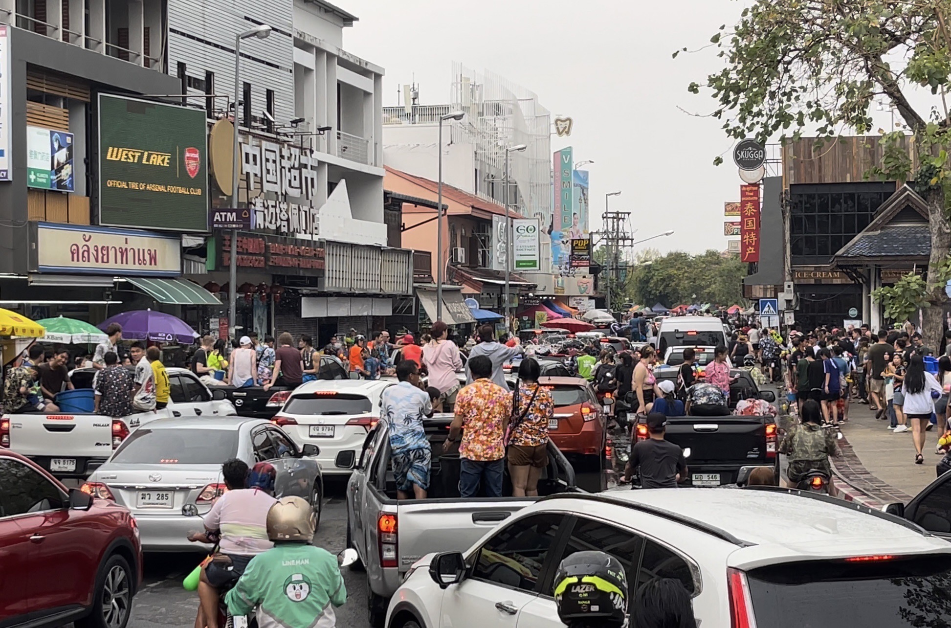 ช่วงเวลาประมาณ 15.30 น. วันนี้ (12 เม.ย.67) รายงานข่าวแจ้งว่า บรรยากาศการเล่นน้ำช่วงเทศกาลสงกรานต์ ของตัวเมืองเชียงใหม่เป็นไปอย่างคึกคัก โดยที่บริเวณลานเอนกประสงค์ ข่วงประตูท่าแพ ซึ่งเป็นจุดศูนย์กลางของการเล่นสาดน้ำในตัวเมืองเชีบงใหม่ พบว่าบรรดาวัยรุ่นหนุ่มสาว ทั้งชาวไทยและต่างชาติ ได้พากันออกมาเล่นสาดน้ำใส่กันอย่างสนุกสนานชุ่มฉ่ำตลอดทั้งสองฝั่งถนนและ ยาวไปตลอดทั้งสาย ส่งผลทำให้การจราจรบริเวณนี้ค่อนข้างหนาแน่น รถสัญจรไปได้ค่อนข้างช้า