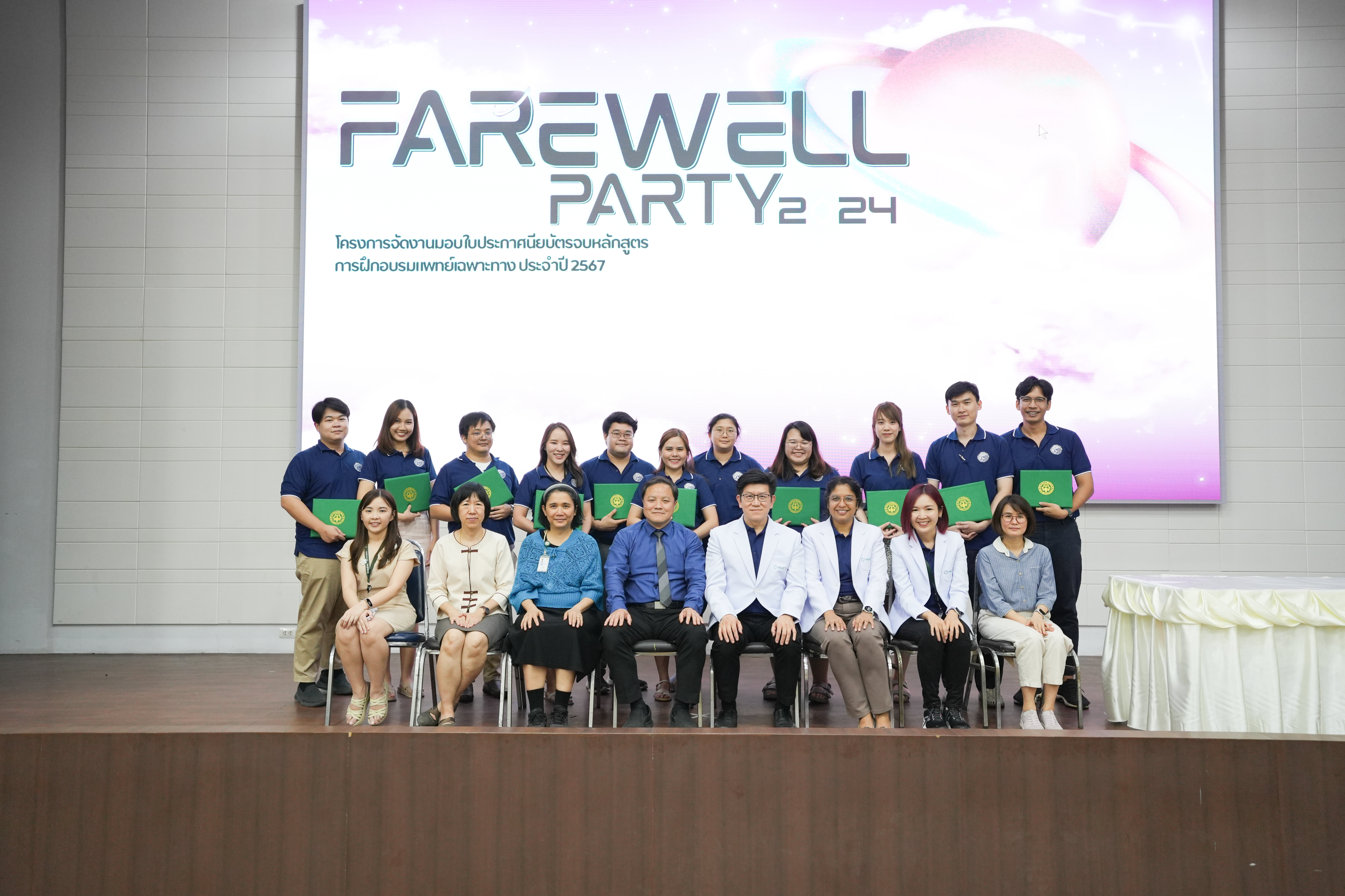 ศ.(เชี่ยวชาญพิเศษ)นพ.บรรณกิจ โลจนาภิวัฒน์ คณบดีคณะแพทยศาสตร์ มช. เป็นประธานในพิธีเปิดงานมอบใบประกาศนียบัตรจบหลักสูตรการฝึกอบรมแพทย์เฉพาะทาง ประจำปี 2567 “Farewell Party 2024” โดยมี รศ.นพ.นเรนทร์ โชติรสนิรมิต ผู้อำนวยการโรงพยาบาลมหาราชนครเชียงใหม่ กล่าวให้โอวาทแพทย์เฉพาะทางที่จบหลักสูตร และกล่าวรายงานโดย รศ.พญ.จิราภรณ์ โกรานา รองคณบดีคณะแพทยศาสตร์ มช. โดยภายในงานได้จัดให้มีการมอบใบประกาศนียบัตรให้แก่ แพทย์เฉพาะทางที่จบหลักสูตร จำนวน 220 คน ในวันที่ 29 เมษายน 2567 ณ ห้องประชุมชั้น 2 อาคารเรียนและปฏิบัติการ 50 ปี คณะแพทยศาสตร์ มช.