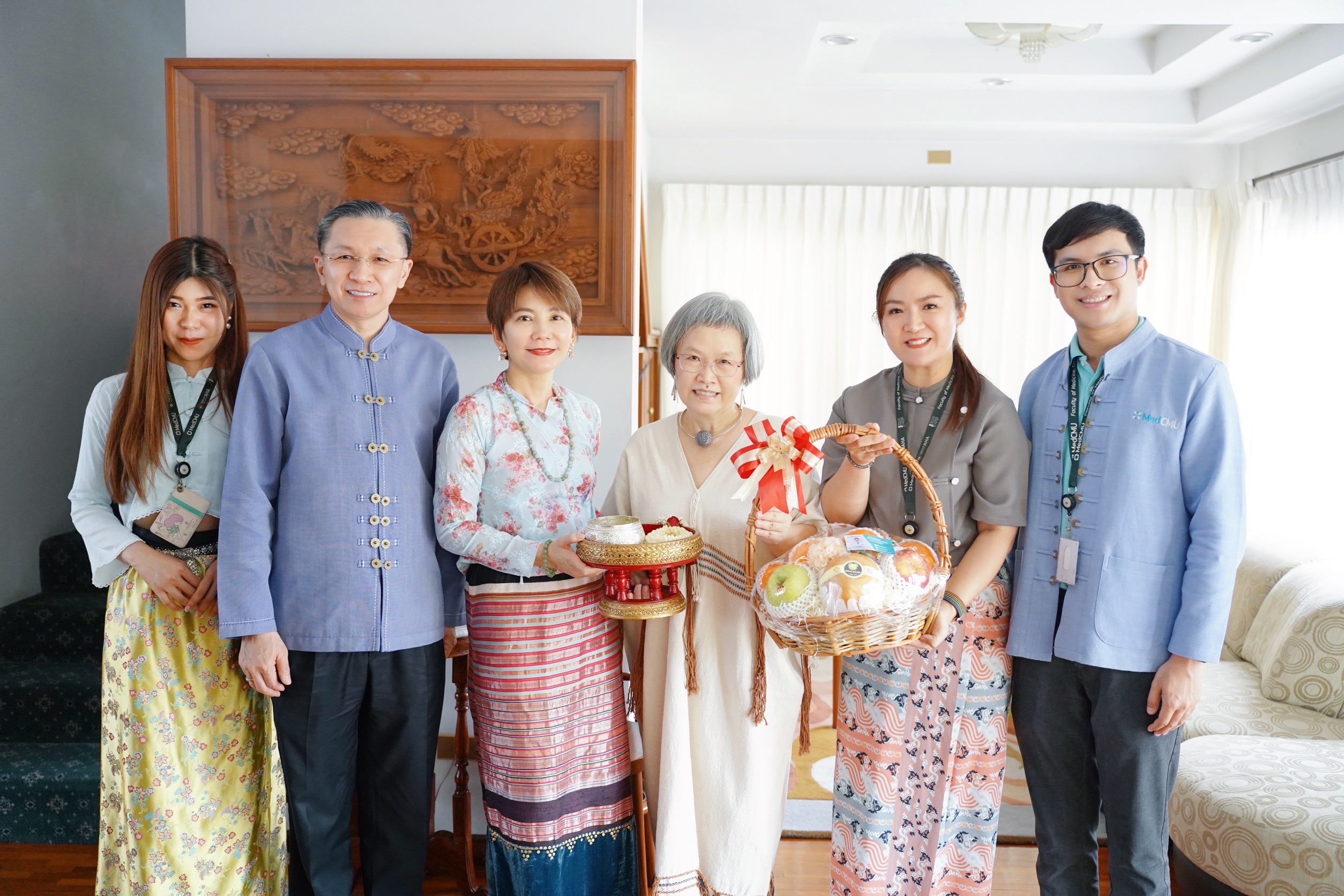 ผศ.พญ.พุดตาน วงศ์ตรีรัตนชัย รองคณบดีคณะแพทยศาสตร์ มช. , คุณธวัชชัย กฤติยาภิชาตกุล ที่ปรึกษาผู้ทรงคุณวุฒิ คณะแพทยศาสตร์ มช. และคุณนุชจรี อนุนิมิตรานนท์ หัวหน้างานประชาสัมพันธ์ คณะแพทยศาสตร์ มช. พร้อมคณะ ร่วมสูมาคารวะ รดน้ำดำหัว ขอพรคุณศรีสุดา ชวชาติ ศรีสุโข ผู้บริหารและผู้ดำเนินรายการวิทยุ MASS FM เนื่องในเทศกาลวันสงกรานต์ ในวันที่ 1 พฤษภาคม 2567 ณ บ้านพักรับรอง อ.เมือง จ.เชียงใหม่