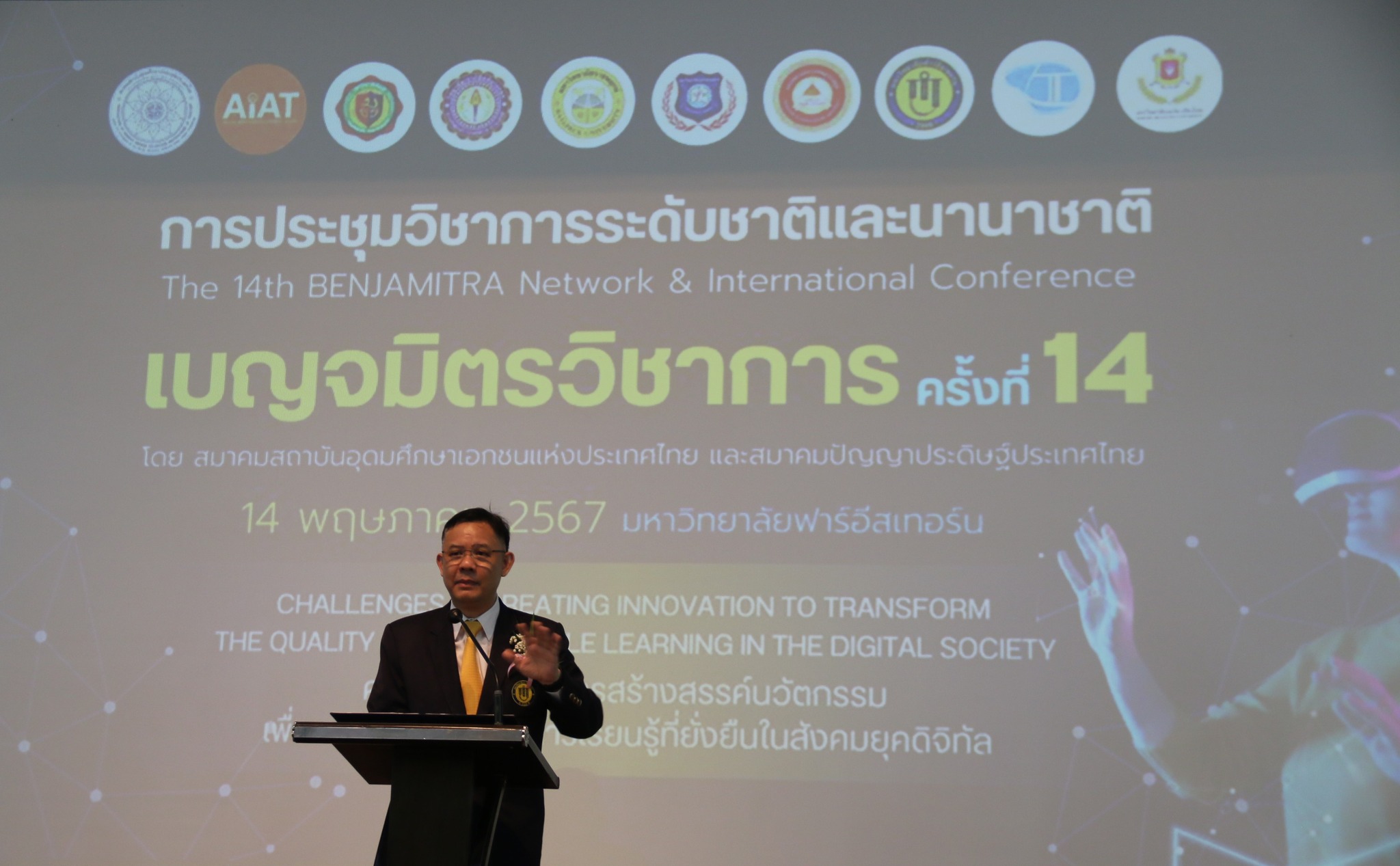วันที่ 14 พฤษภาคม 2567 มหาวิทยาลัยฟาร์อีสเทอร์น จ.เชียงใหม่ เป็นเจ้าภาพหลัก ร่วมกับมหาวิทยาลัยในเครือข่ายเบญจมิตรวิชาการ และสมาคมปัญญาประดิษฐ์ประเทศไทย จัดการประชุมวิชาการระดับชาติและนานาชาติ ครั้งที่ 14 ภายใต้แนวคิด “ความท้าทายในการสร้างสรรค์นวัตกรรม เพื่อพลิกโฉมคุณภาพการเรียนรู้ที่ยั่งยืนในสังคมยุคดิจิทัล” (CHALLENGES IN CREATING INNOVATION TO TRANSFORM THE QUALITY OF SUSTAINABLE LEARNING IN THE DIGITAL SOCIETY) โดย ดร. สมศักดิ์ รุ่งเรือง นายกสมาคมสถาบันอุดมศึกษาเอกชนแห่งประเทศไทย เป็นประธานพิธีเปิดการประชุม และ ดร.กิตติพัฒน์ สุวรรณชิน อธิการบดี ม.ฟาร์อีสเทอร์น กล่าวต้อนรับ นักวิชาการ นักวิจัย ภายในงาน