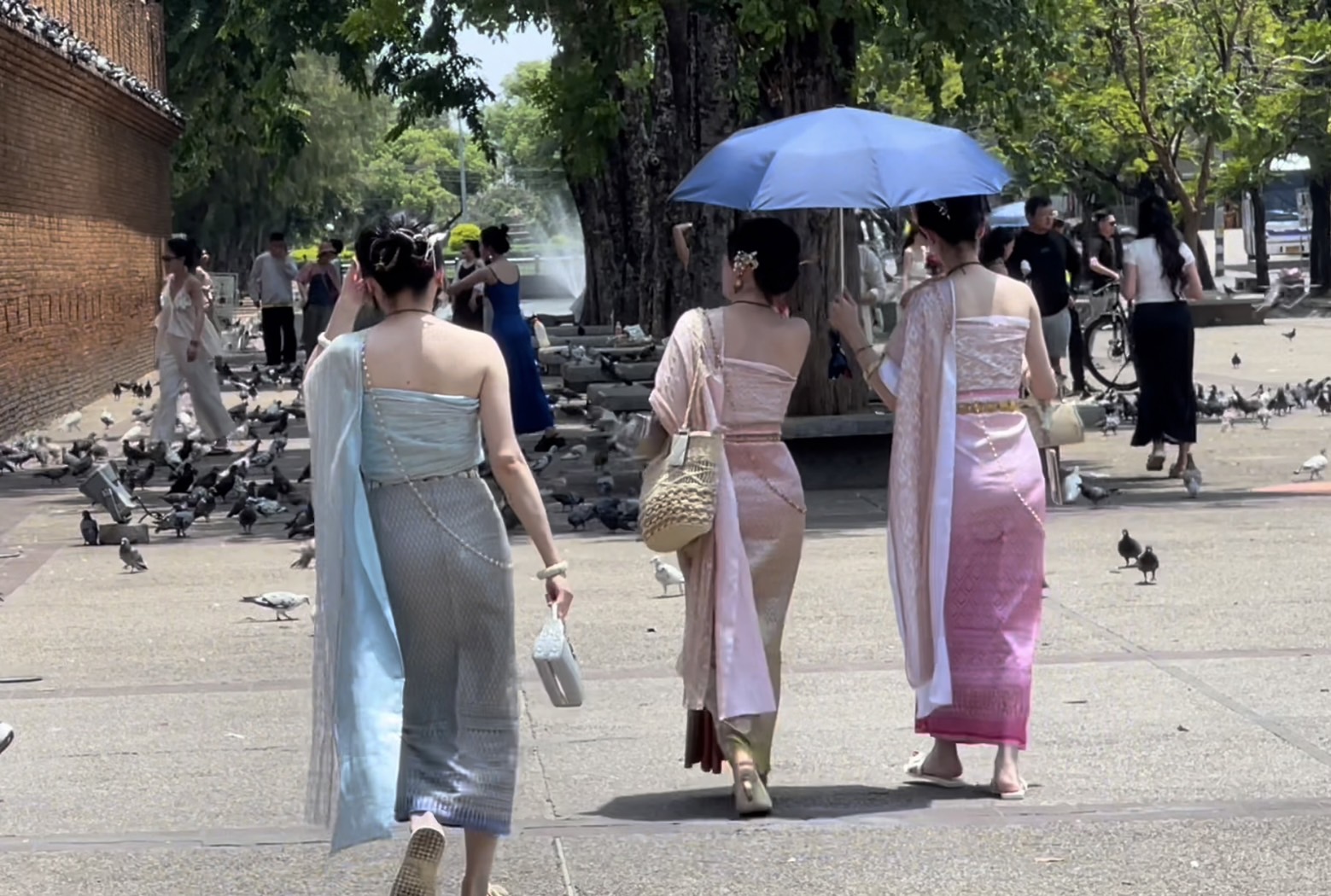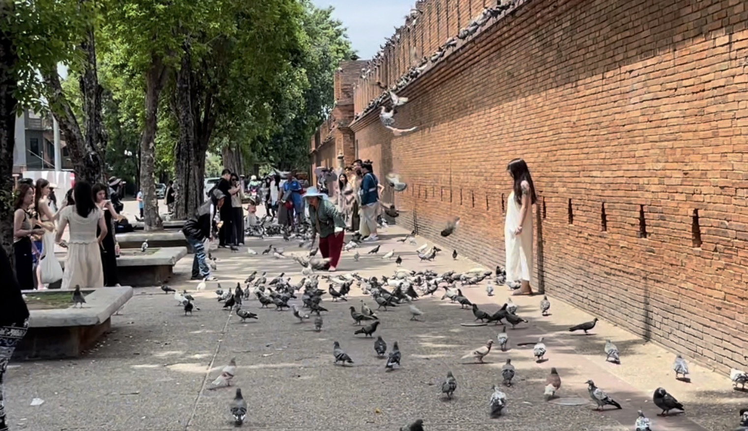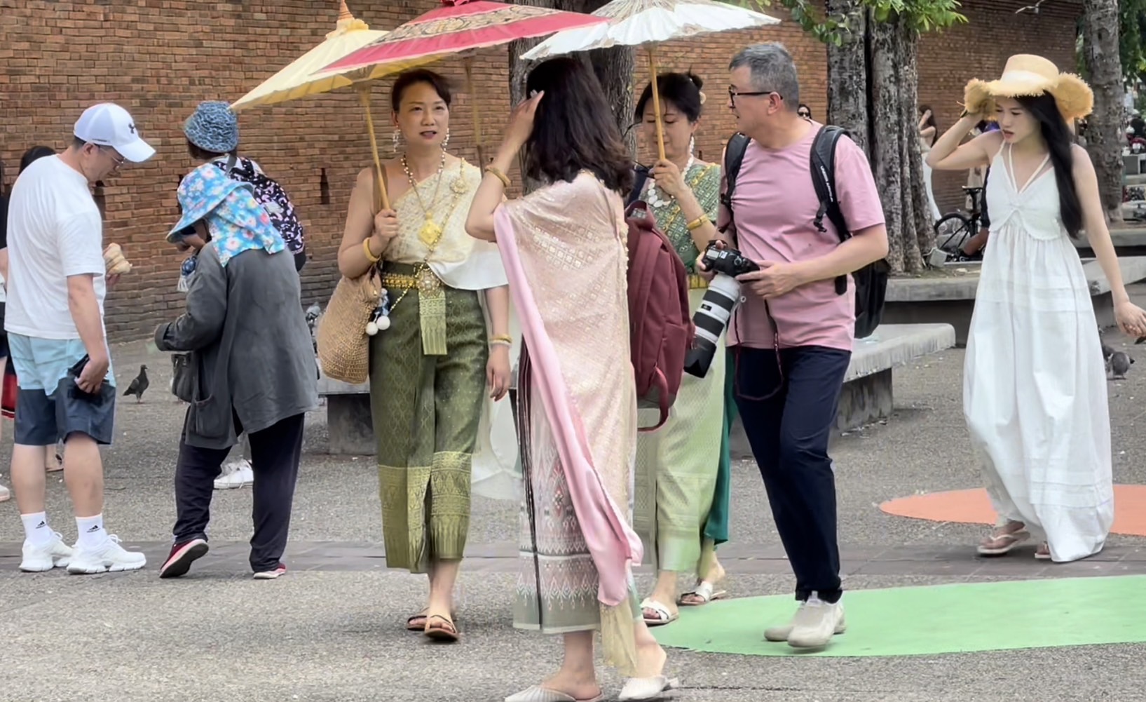 ขณะที่ตามพื้นที่ตัวเมืองเชียงใหม่ พบว่า ในระยะนี้ยังคงมีนักท่องเที่ยวต่างชาติทั้งโซนเอเชียและยุโรป เดินทางมาท่องเที่ยวอย่างต่อเนื่อง โดยเฉพาะในย่านบริเวณลานเอนกประสงค์ประตูท่าแพ ซึ่งเป็นแลนด์มาร์คที่นักท่องเที่ยวแวะเวียนมาถ่ายภาพกันจำนวนมาก โดยเฉพาะกลุ่มนักท่องเที่ยวโซนเอเชีย ที่หลายคนพากันเช่าชุดไทย แต่งตัวออกมายืนถ่ายภาพคู่กับกำแพงเมือง และทำคอนเทนต์ แชร์ลงโลกโซเชี่ยล ทำให้การท่องเที่ยวของจังหวัดเชียงใหม่นั้นกลายเป็นที่รู้จักแพร่หลายมากขึ้น นอกจากนี้ยังทำให้ ร้านค้า และร้านเช่าชุดไทย ที่เปิดเช่าตามย่านนี้ต่างได้รับอานิสงส์จากการที่นักท่องเที่ยว พากันมาเช่าชุดเพื่อแต่งตัวให้เข้ากับบรรยากาศของเมืองไทยอีกด้วย
