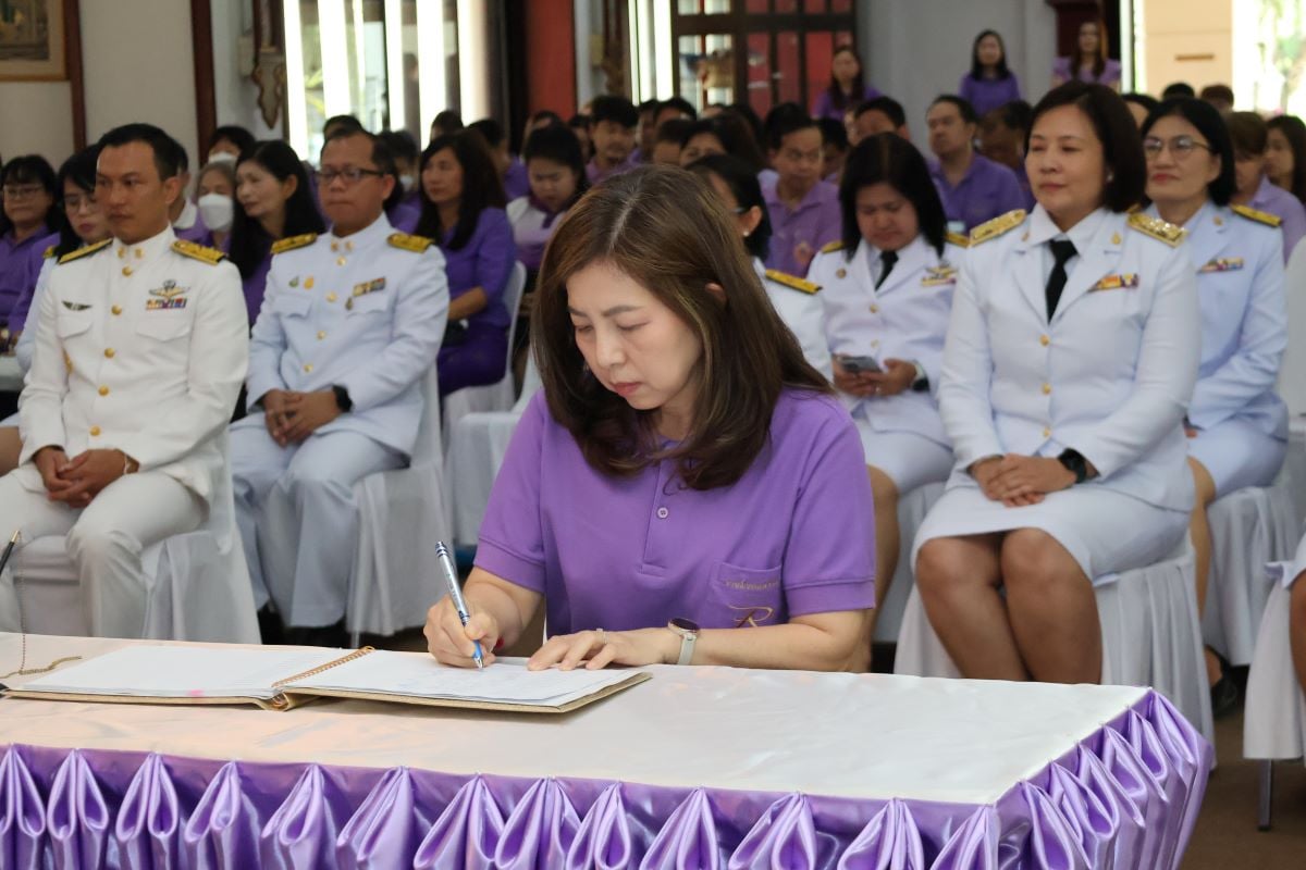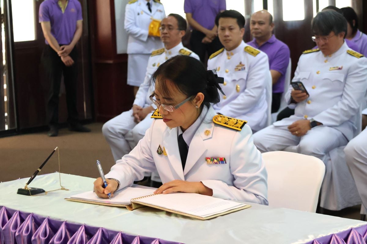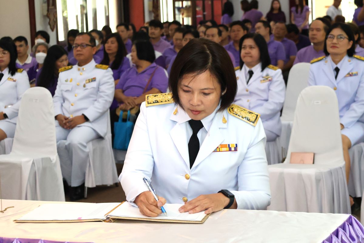 โดยประธานในพิธี เปิดกรวยดอกไม้และกล่าวถวายพระพรชัยมงคล จากนั้นประธานในพิธีนำผู้ร่วมพิธีร่วมลงนามถวายพระพรชัยมงคลเบื้องหน้าพระฉายาลักษณ์