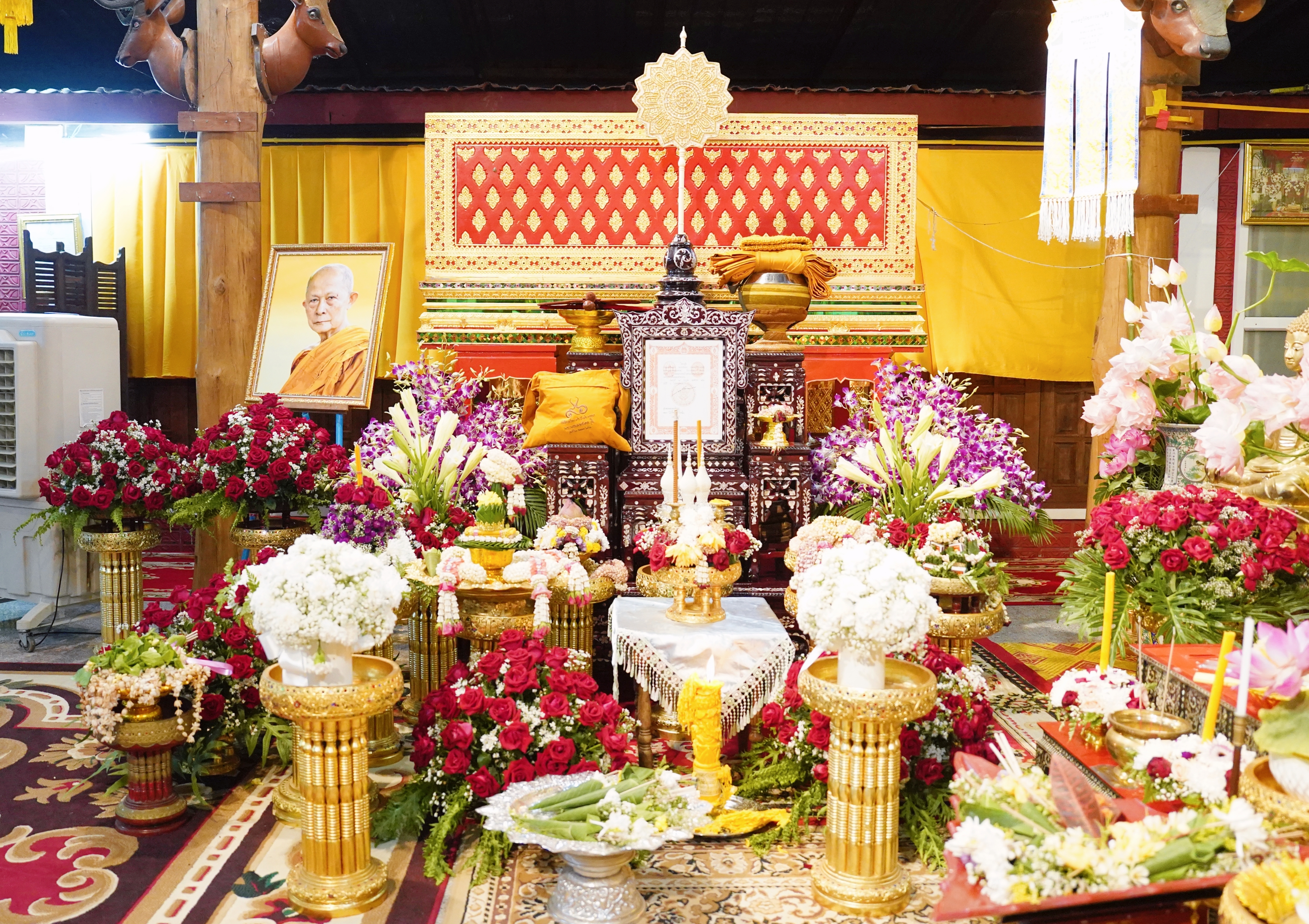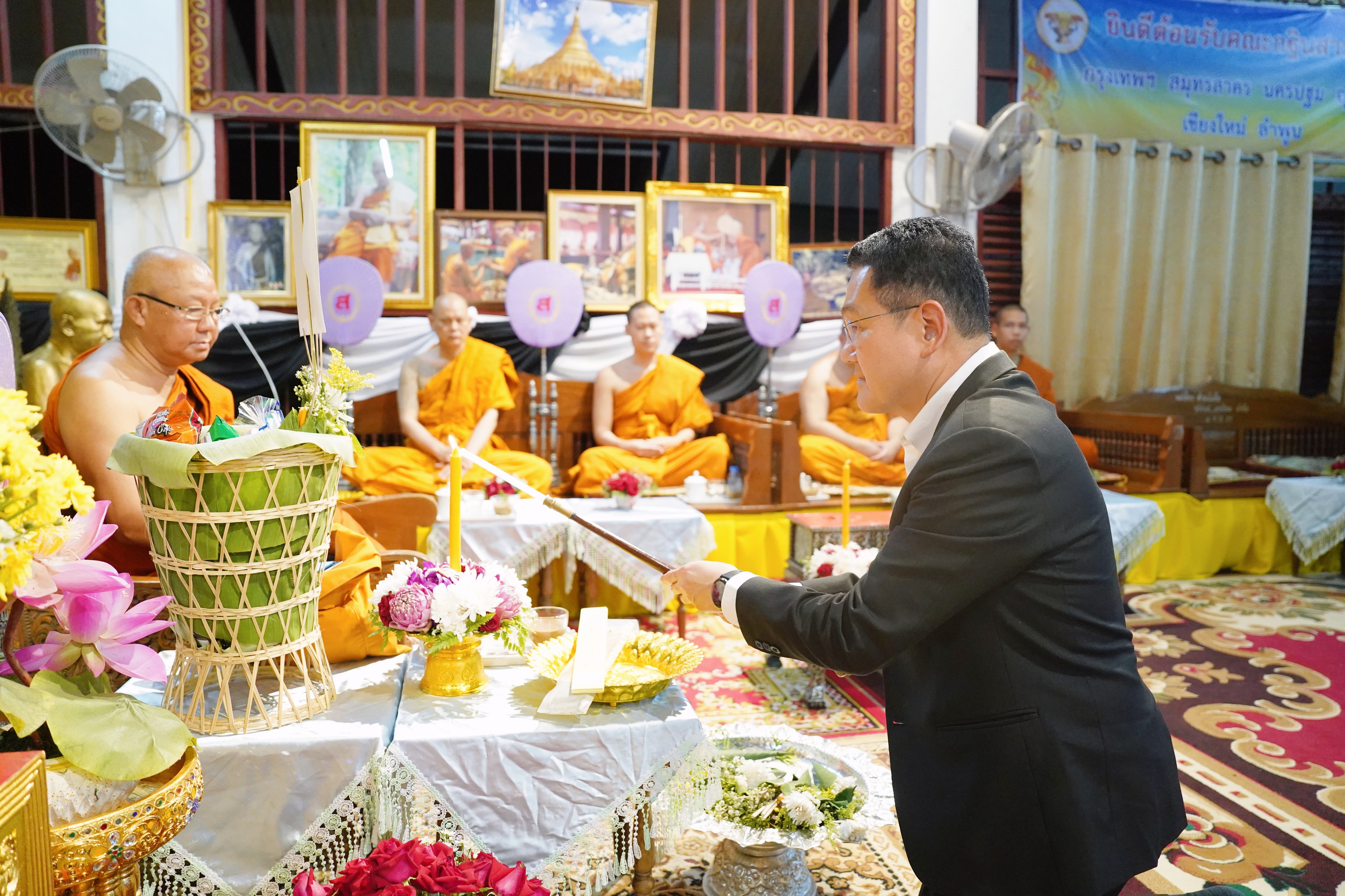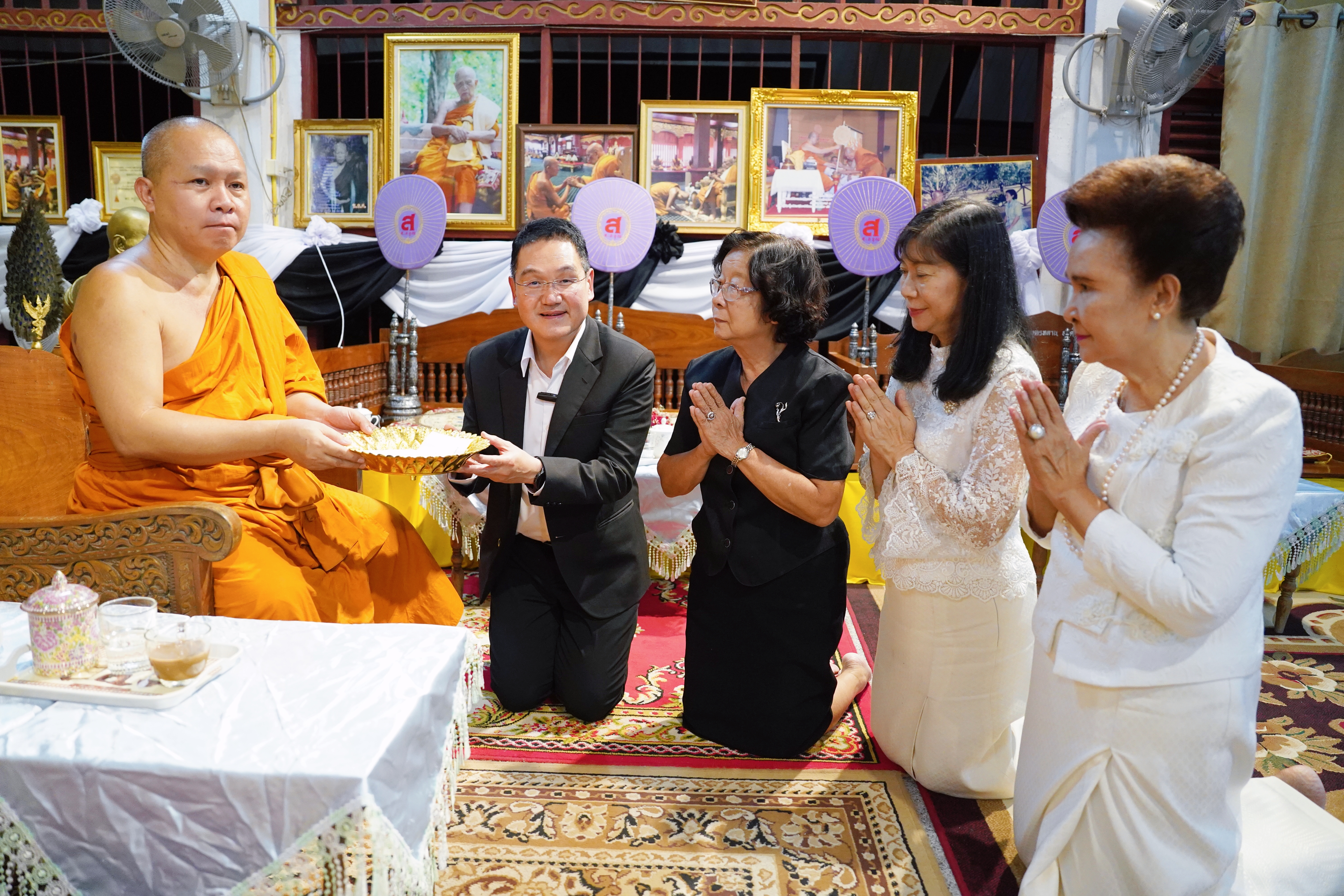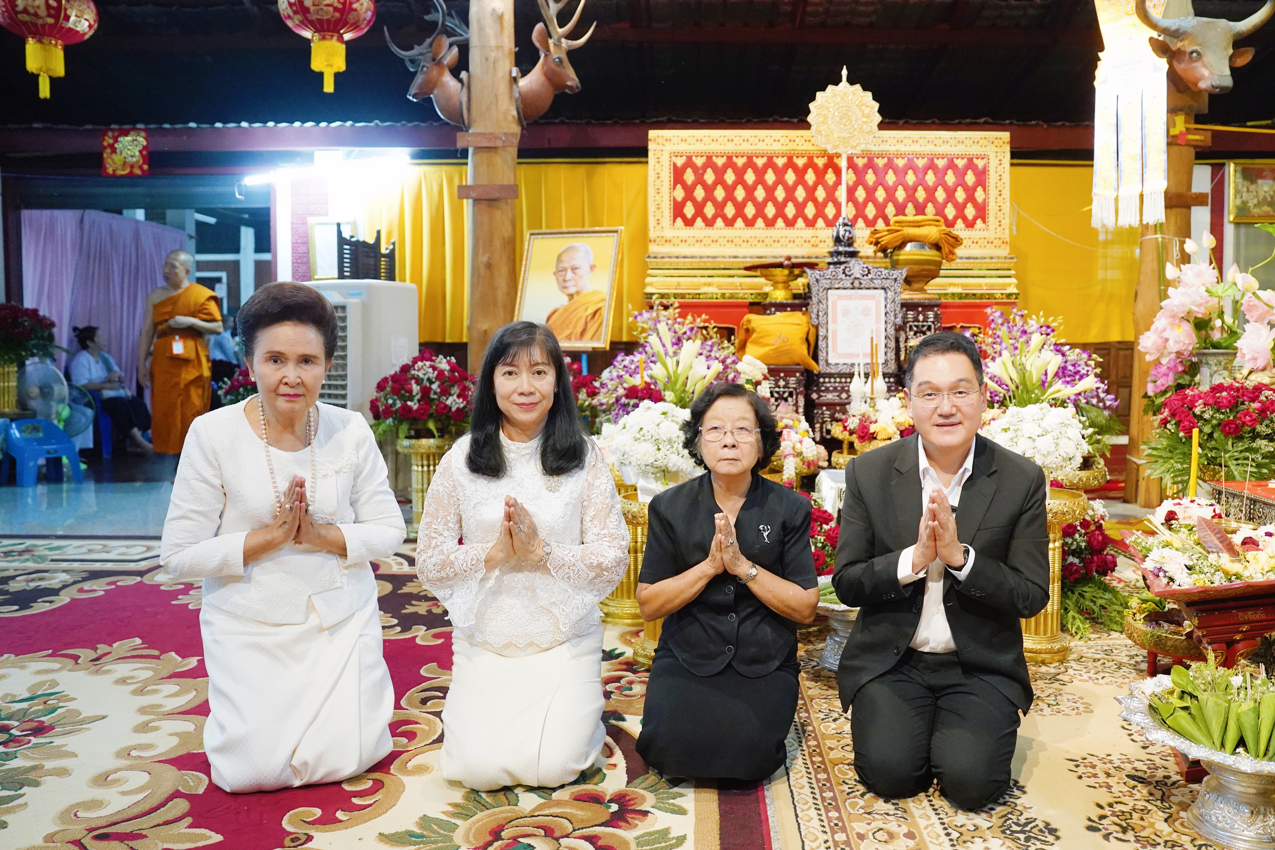 ศ.(เชี่ยวชาญพิเศษ) นพ.บรรณกิจ โลจนาภิวัฒน์ คณบดีคณะแพทยศาสตร์ มช. พร้อมด้วย รศ.พญ.ยุพา สุมิตสวรรค์, อ.จารุวรรณ ปฐมธนพงษ์ ที่ปรึกษาผู้ทรงคุณวุฒิคณะแพทยศาสตร์ มช., คุณพัชรา อุบลศรี ที่ปรึกษาประธานมูลนิธิโรงพยาบาลสวนดอก คณะแพทยศาสตร์ มช. ร่วมเป็นเจ้าภาพในพิธีสวดอภิธรรมและบำเพ็ญบุญกุศลศพ พระครูวิรัชภาวนานุสิฐ วิ. (สุชิน วิมโล) เจ้าอาวาสวัดถ้ำตอง เมื่อวันที่ 31 พฤษภาคม 2567 ณ วัดถ้ำตอง อ.จอมทอง จ.เชียงใหม่