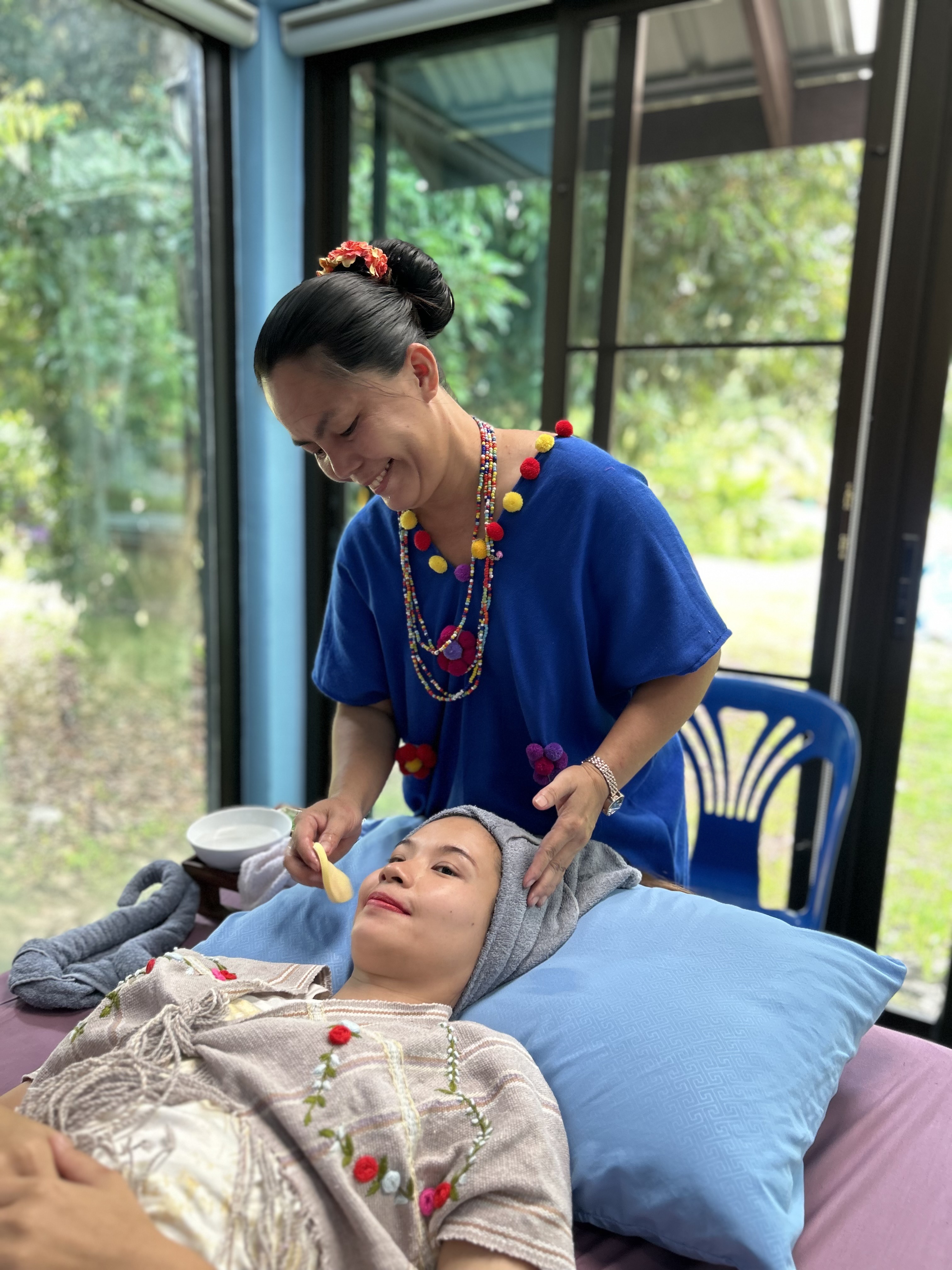 มหาวิทยาลัยราชภัฏเชียงใหม่ จัดอบรมเชิงปฏิบัติการสร้างองค์ความรู้ การบริการสปา ด้วยภูมิปัญญาปกาเกอญอ และกิจกรรมการทดสอบกิจกรรมการให้บริการของสปาชุมชน ณ ริมธารโฮมสเตย์