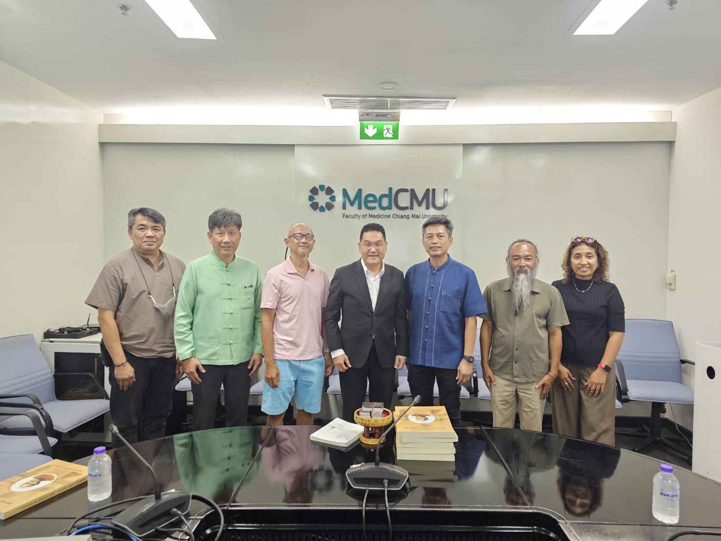 ศ.(เชี่ยวชาญพิเศษ)นพ.บรรณกิจ โลจนาภิวัฒน์ คณบดีคณะแพทยศาสตร์ มช. พร้อมด้วย รศ.นพ.ณัฐพงศ์ โฆษชุณหนันท์ รองคณบดีคณะแพทยศาสตร์ มช. ร่วมปรึกษาหารือกิจกรรมประมูลภาพการกุศลโครงการ “ฮอมบุญ Arts & Donations” ครั้งที่ 2 นำโดยคุณมนัส เกียรติเจริญวัฒน์ กรรมการผู้จัดการคุ้มหอมคาเฟ่ & อาร์ตแกลลอรี่ เชียงใหม่ ร่วมกับ เชียงใหม่อาร์ตมิวเซียม, ศิลปินแห่งชาติ และศิลปินจิตอาสาชั้นนำของภาคเหนือ โดยรายได้จากโครงการนี้ส่วนหนึ่งมอบให้แก่มูลนิธิโรงพยาบาลสวนดอก เพื่อร่วมในโอกาศฉลอง 65 ปีคณะแพทยศาสตร์ มช เมื่อวันที่ 7 มิถุนายน 2567 ณ ห้องประชุม 802 อาคารราชนครินทร์ คณะแพทยศาสตร์ มช.