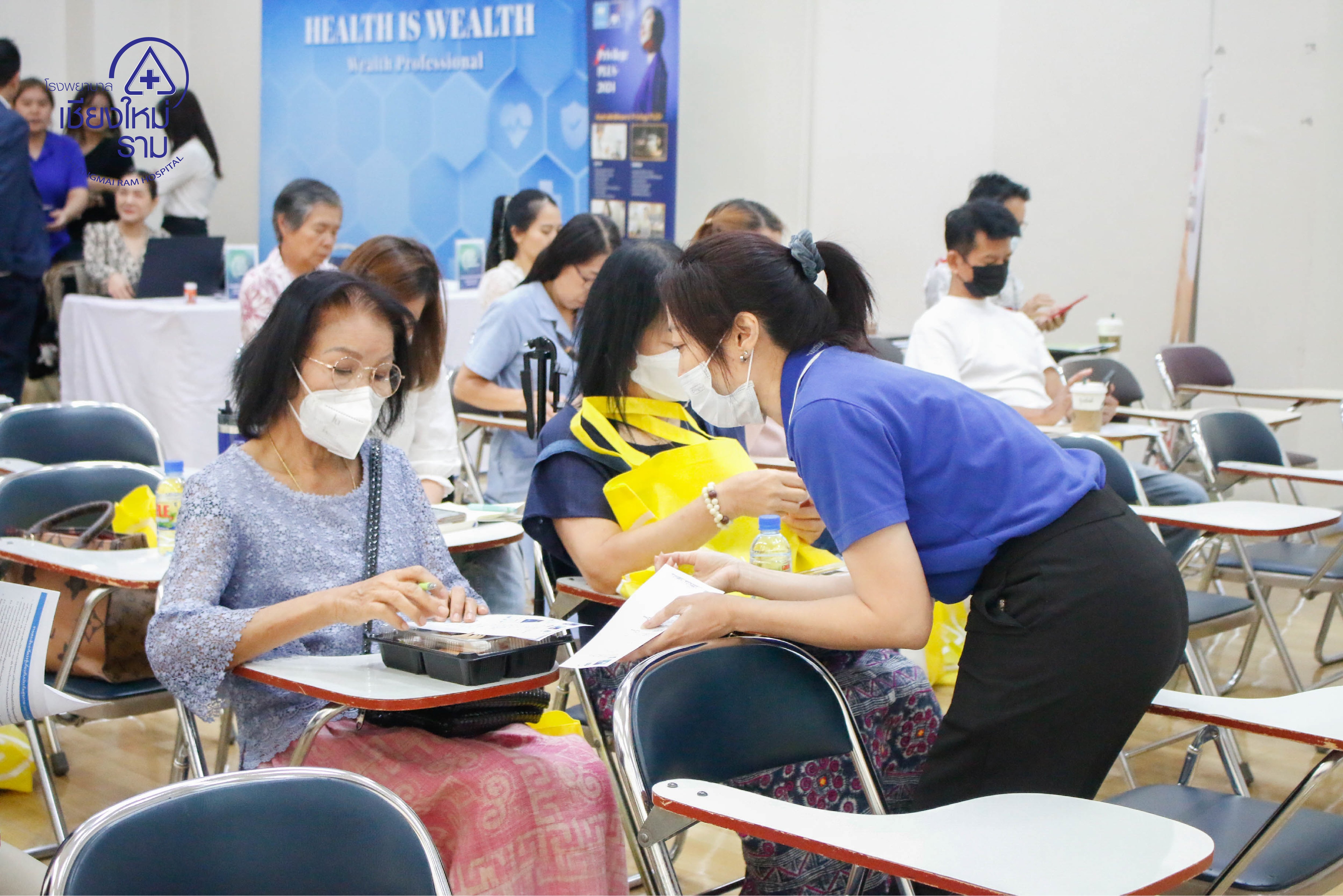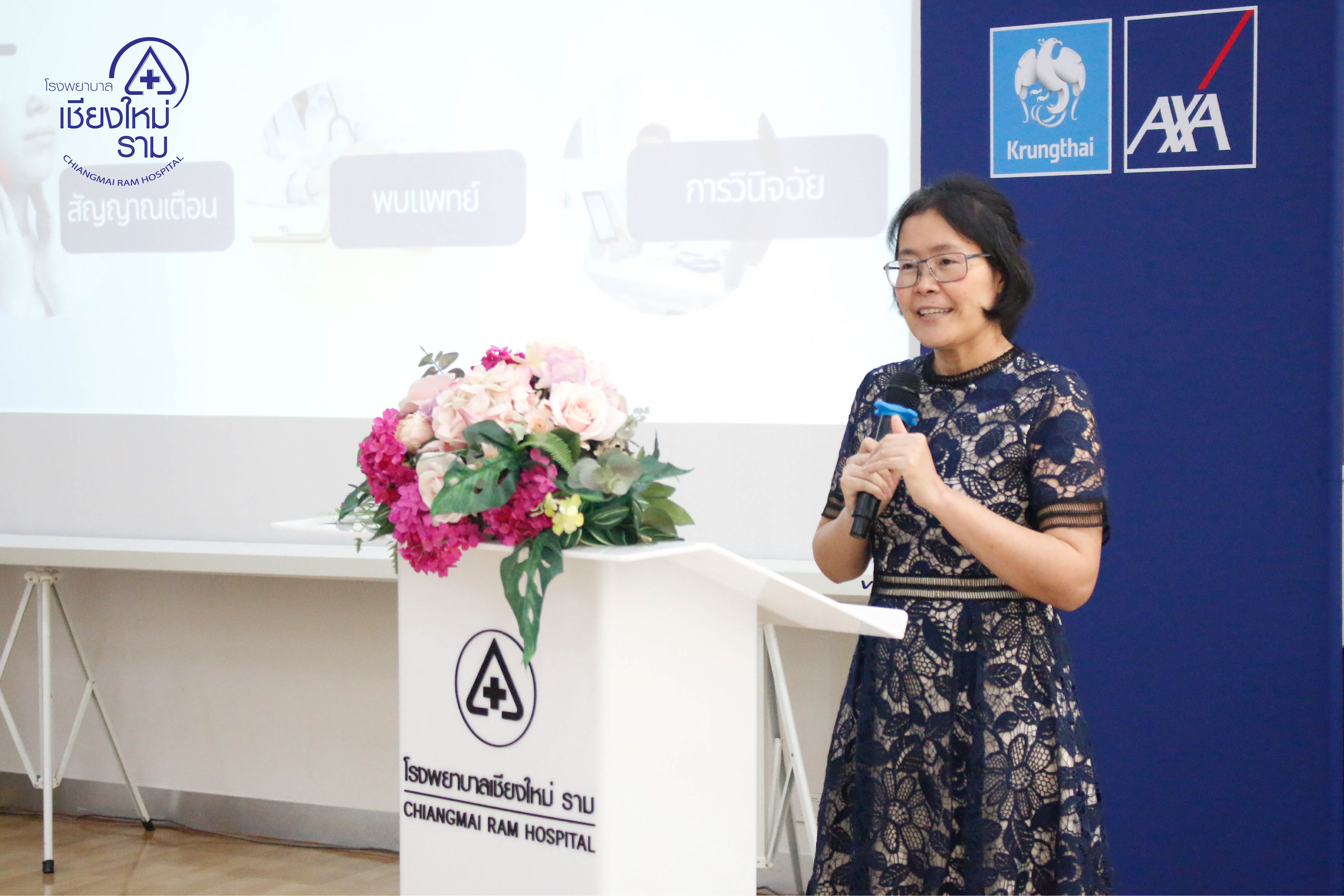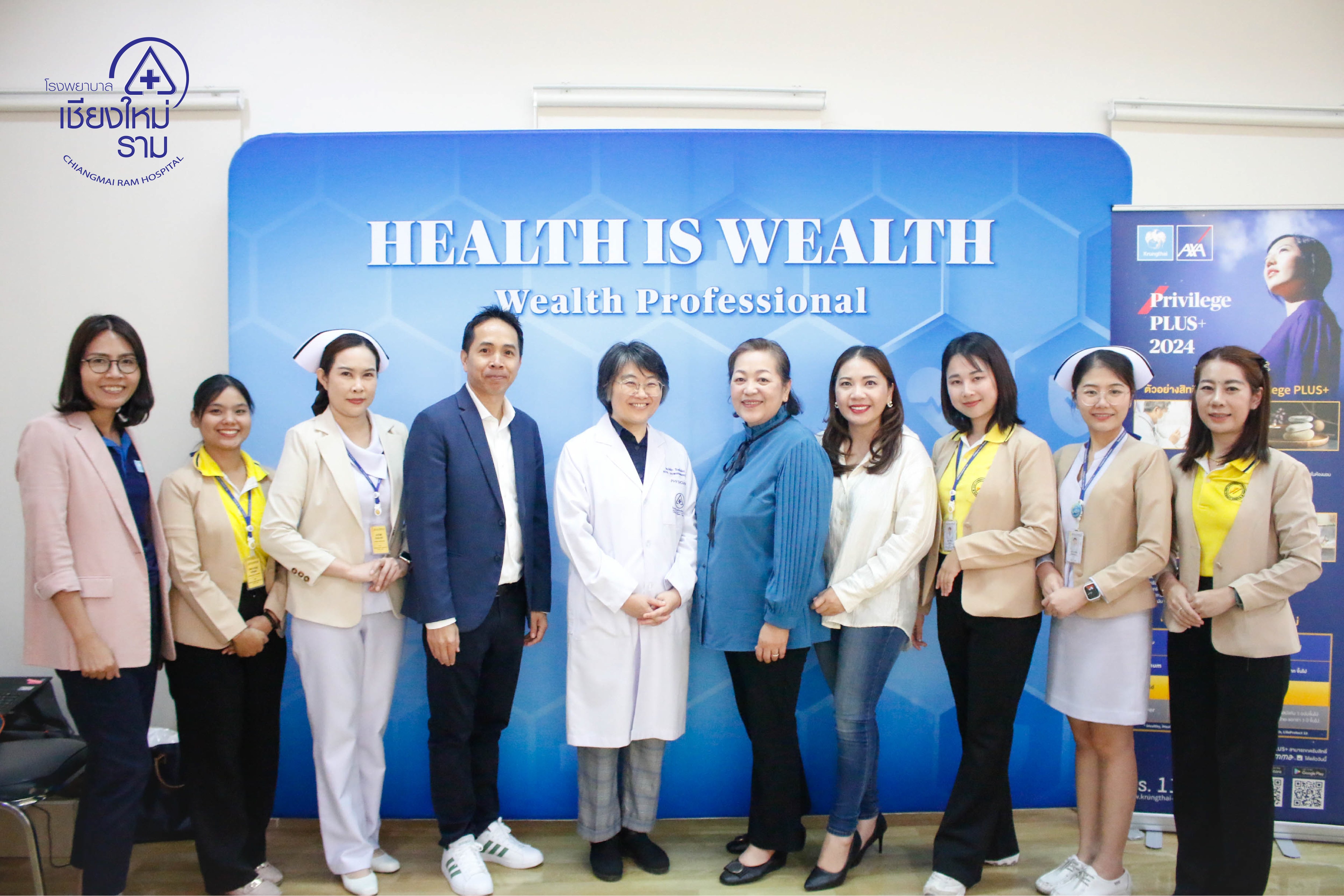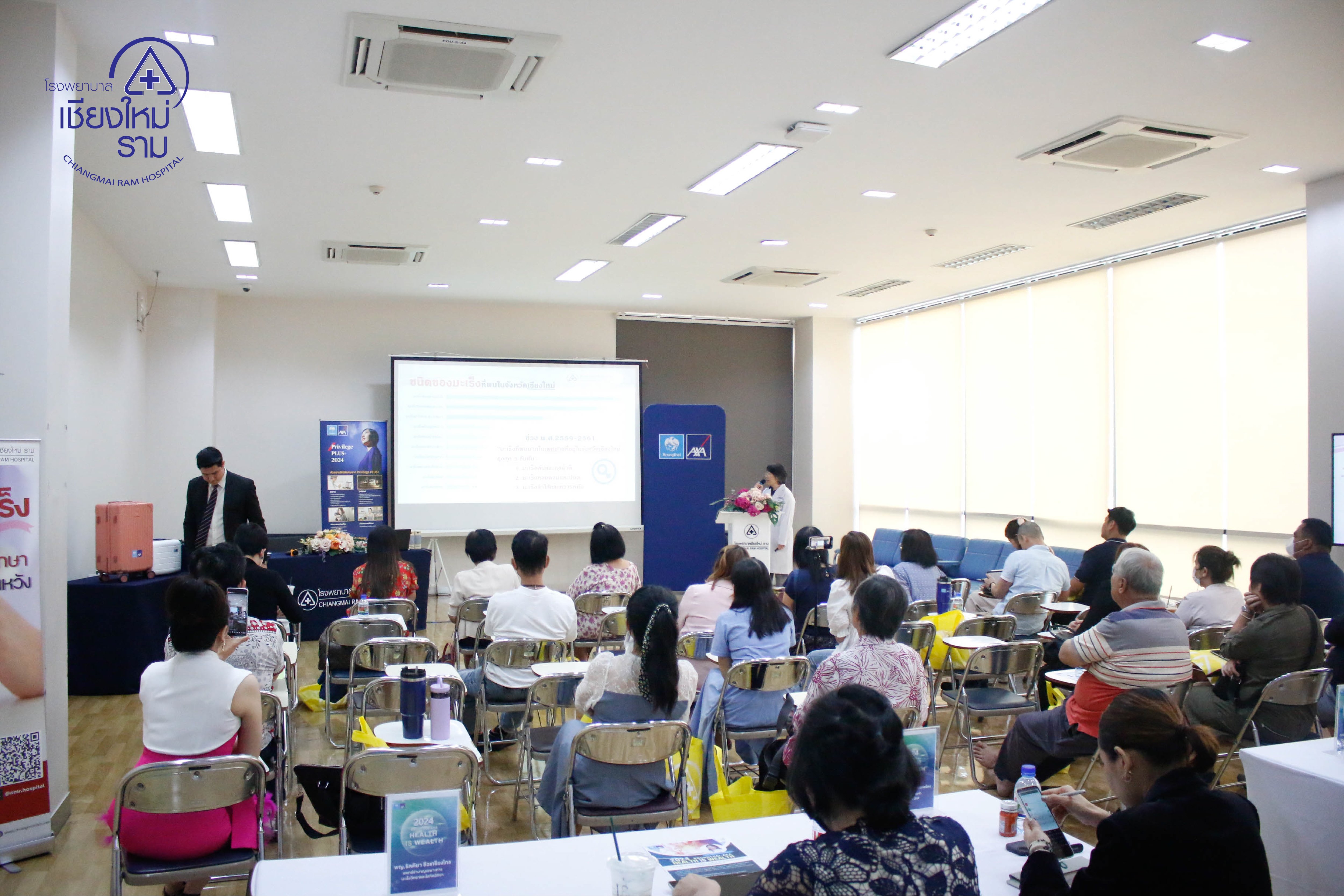 วันที่ 15 มิ.ย. 67 โรงพยาบาลเชียงใหม่ ราม ร่วมกับ บริษัท กรุงไทย-แอกซ่า ประกันชีวิต จำกัด (มหาชน) ได้จัดงานสัมมนาพิเศษเชิงสุขภาพ Health is Wealth “สุขภาพดี มั่งมีไปด้วยกัน” ณ ห้องประชุมชั้น 2 ศูนย์กายภาพบำบัด เชียงใหม่ ราม คอมเพล็กซ์