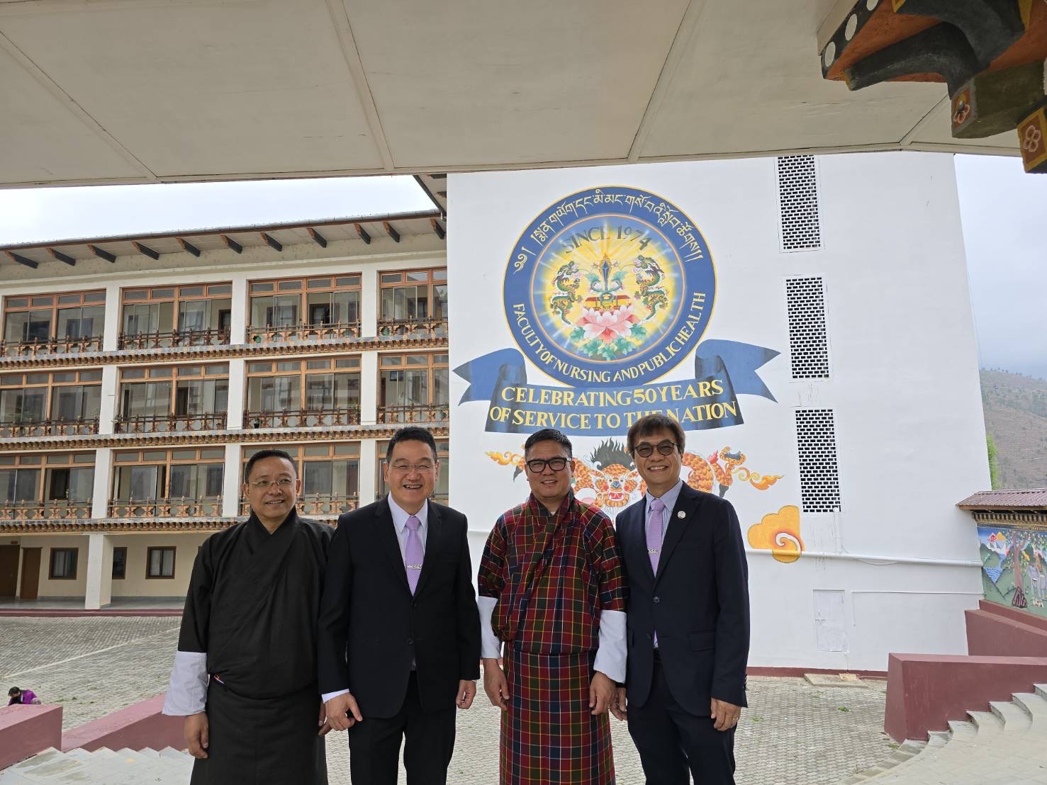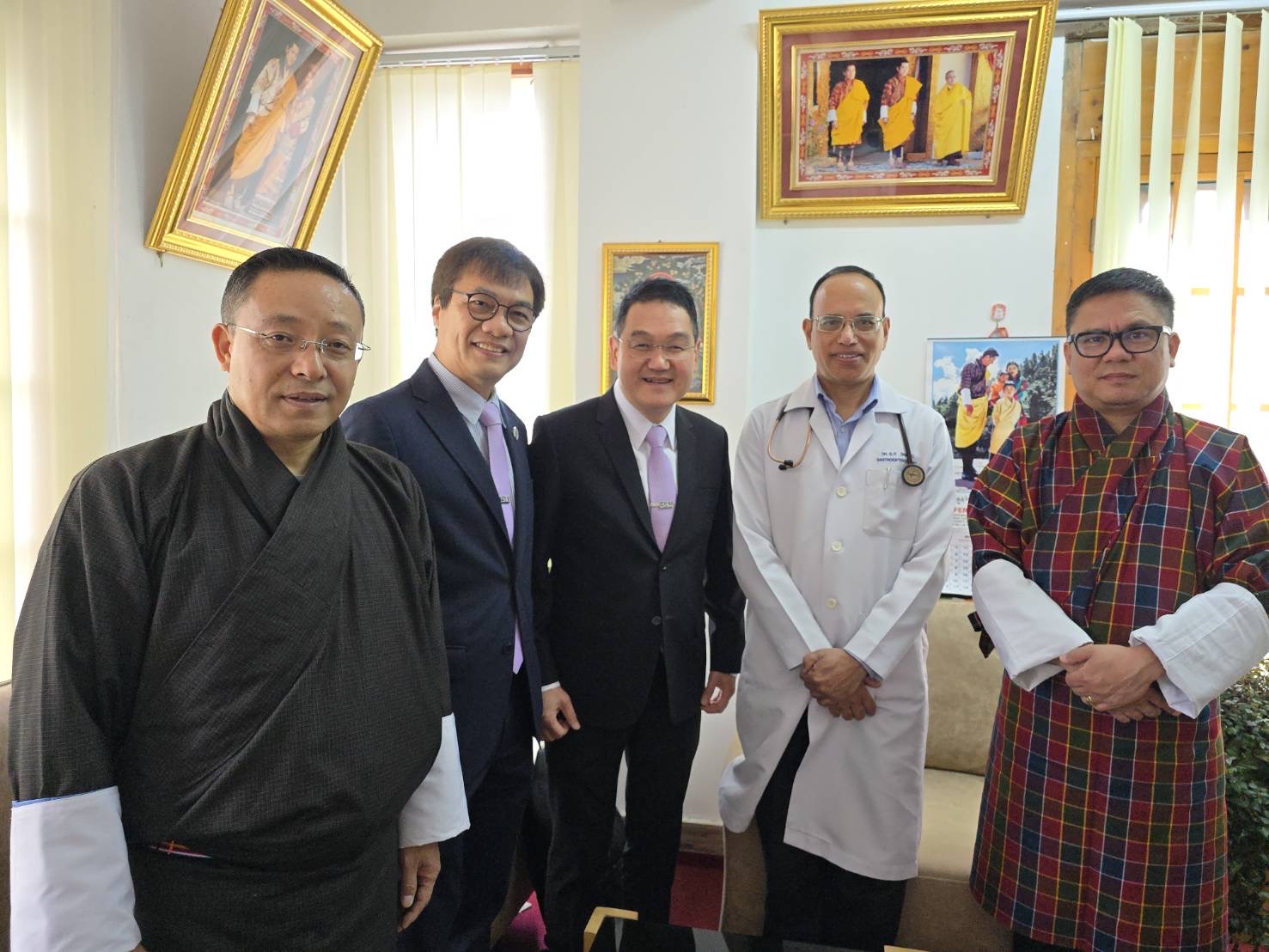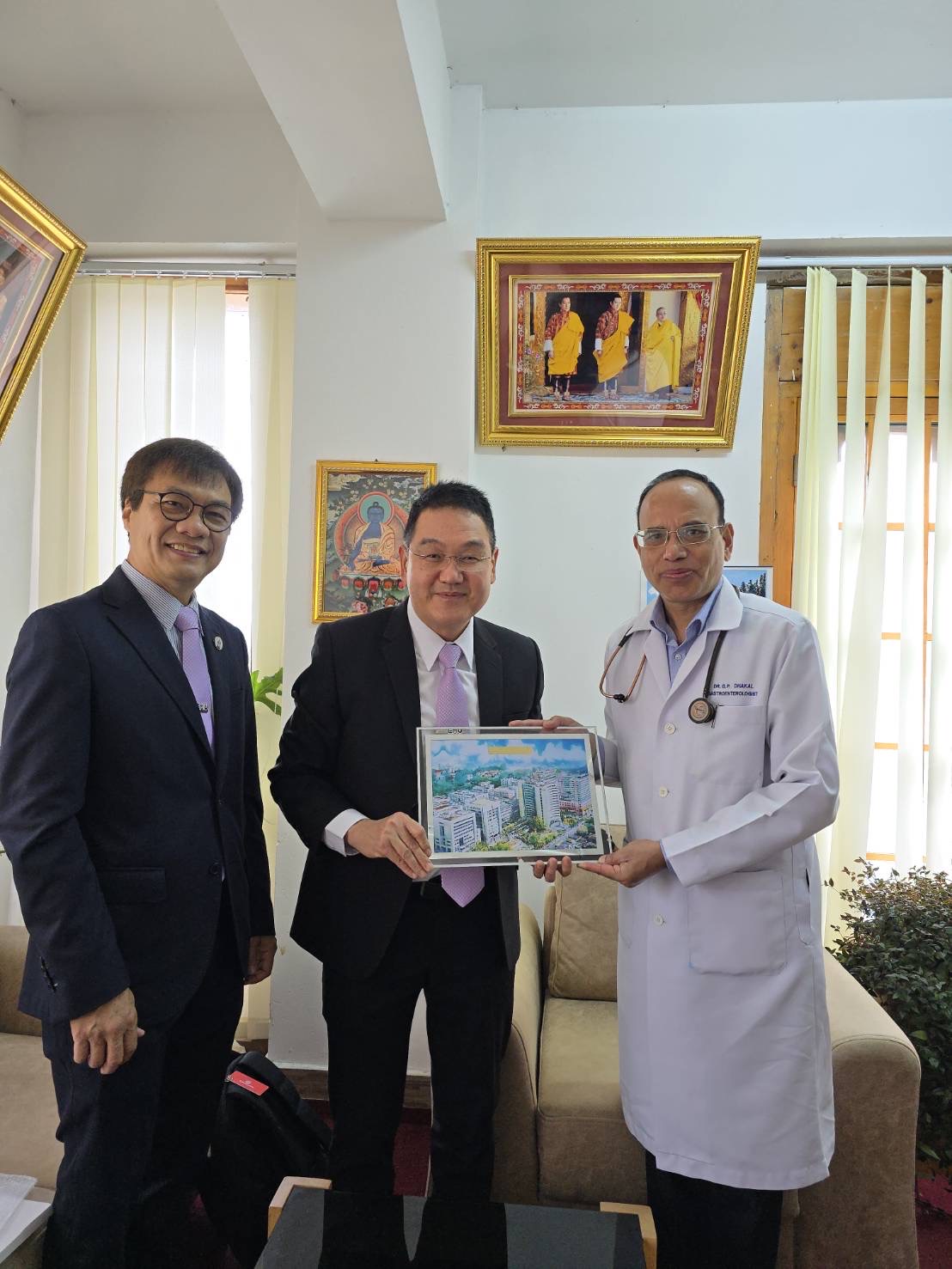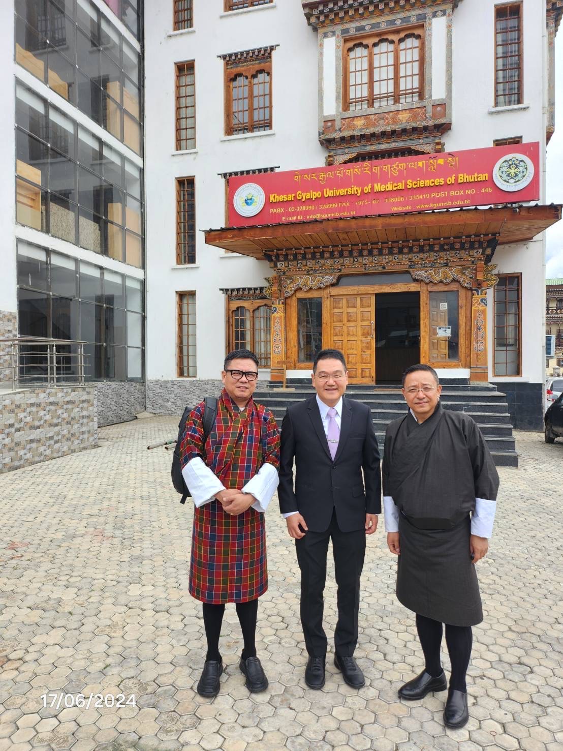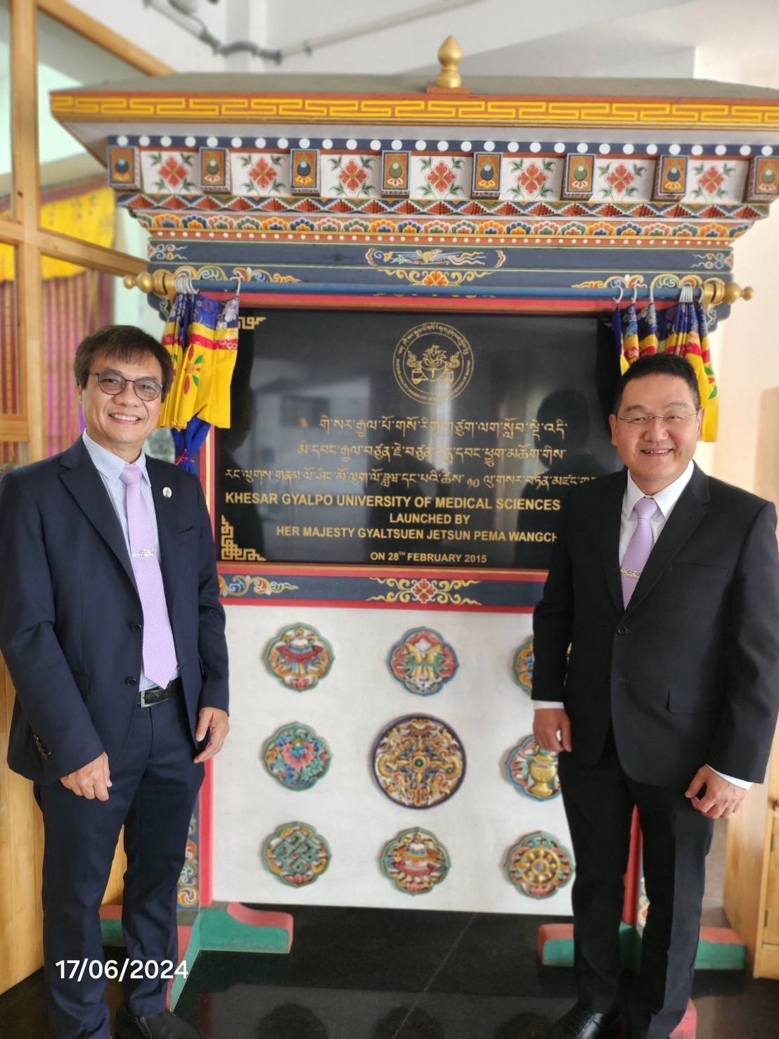 ศ.(เชี่ยวชาญพิเศษ) นพ.บรรณกิจ โลจนาภิวัฒน์ คณบดีคณะแพทยศาสตร์ มช. พร้อมด้วย รศ.นพ.ประพันธ์ จุฑาวิจิตรธรรม หัวหน้าศูนย์ความร่วมมือทางการวิจัยโรคติดเชื้อไทย-เกาหลี เข้าเยี่ยม มหาวิทยาลัย Khesar Gyalpo University of Medical Sciences of Bhutan (KGUMSB) และโรงพยาบาลในเครือ KGUMSB เพื่อต่อยอดความร่วมมือด้านโรงพยาบาล การฝึกอบรมบุคคลากรทางการแพทย์และการวิจัยระหว่างสองสถาบัน โดยมี Dr.Guru Prasad Dhakal, Dean at the Faculty of Postgraduate Medicine. และ Mr.Nima Sangay, Dean of Nursing and Public Health ให้การต้อนรับ ในวันที่ 17 มิถุนายน 2567 ณ Khesar Gyalpo University of Medical Sciences of Bhutan ประเทศภูฏาน