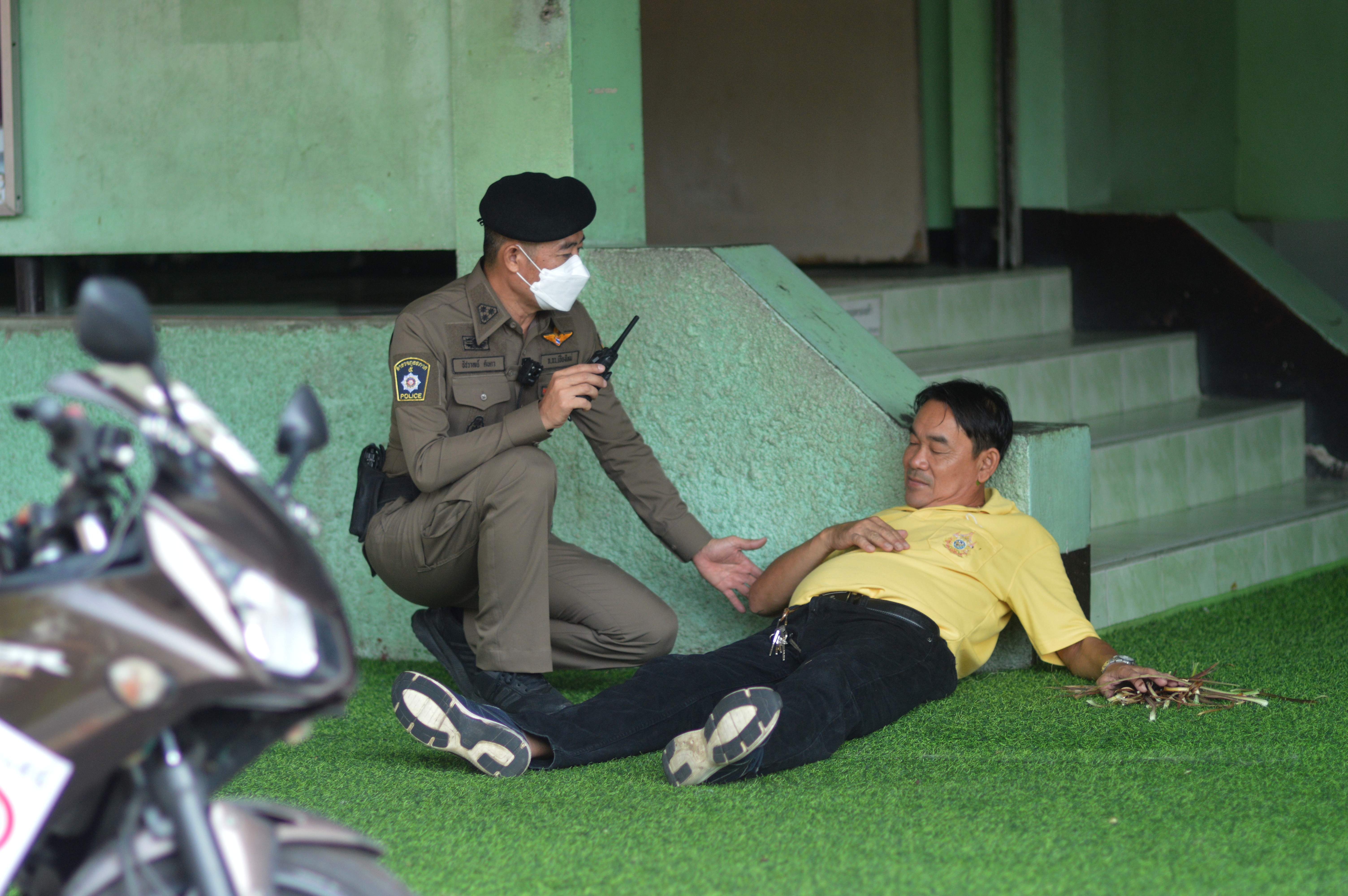 เจ้าหน้าสายตรวจ ตำรวจสถานีตำรวจภูธรเมืองเชียงใหม่เข้าสำรวจสถานการณ์ แจ้งกำลังเสริมระงับเหตุการณ์พร้อมอุปกรณ์ไม้ง่ามระงับเหตุเข้าประทบคนร้ายจับกุมที่สนามกีฬาของโรงเรียน รถพยาบาลเชียงใหม่เมดิคอลเซ็นเตอร์เข้ารับผู้บาดในเหตุการณ์ พอเหตุการณ์สงบลงแล้ว ผู้อำนวยการควบคุมภาวะฉุกเฉินประกาศเหตุการณ์ยุติลงแล้ว ให้ครูนักเรียนชั้นประถมศึกษาที่ 1-3 นำนักเรียนลงมาที่บริเณโดมชั้นประถมศึกษาที่ 4-6 ลงมาบริเวณที่สนาม เพื่อเช็คจำนวนนักเรียน และรายงานต่อผู้บัชาการเหตุการณ์