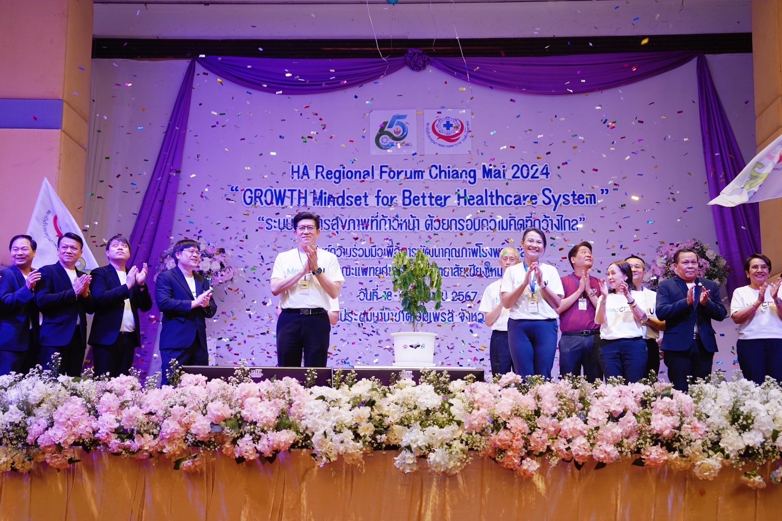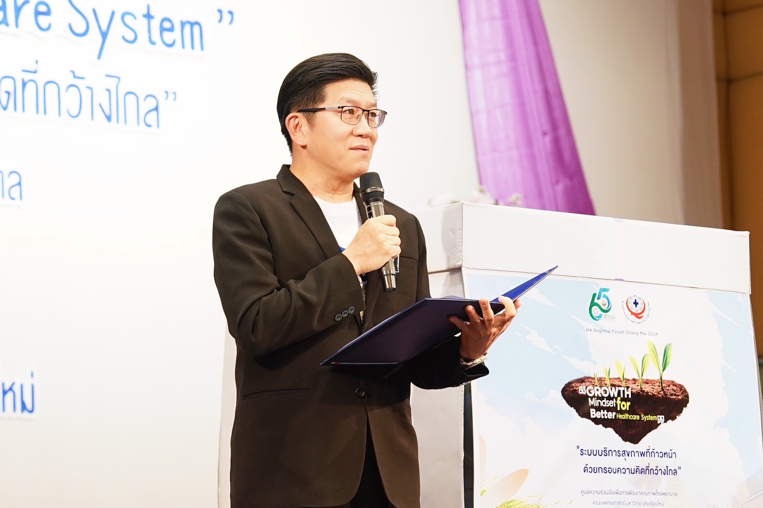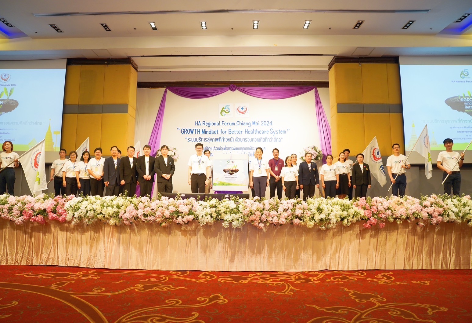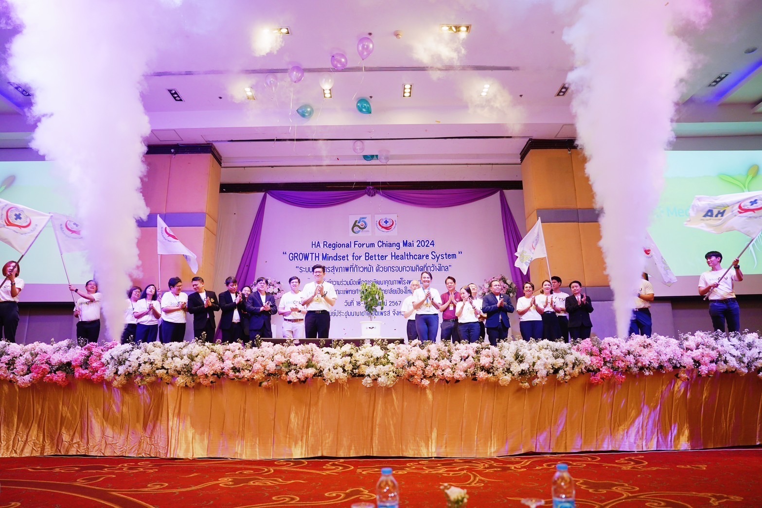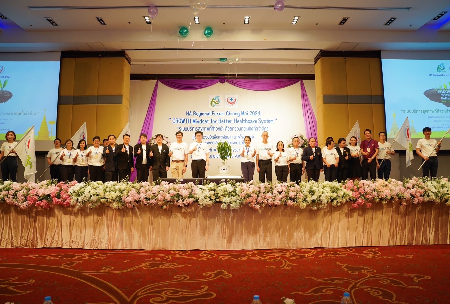 รศ.นพ.นเรนทร์ โชติรสนิรมิต ผู้อำนวยการโรงพยาบาลมหาราชนครเชียงใหม่ พร้อมด้วย อ.นพ.อนุวัฒน์ ศุภชุติกุล ผู้ทรงคุณวุฒิสถาบันรับรองคุณภาพสถานพยาบาล, อ.ผ่องพรรณ จันทนสมบัติ ผู้ทรงคุณวุฒิสถาบันรับรองคุณภาพสถานพยาบาล, อ.ปิยวรรณ ลิ้มปัญญาเลิศ ผู้อำนวยการสถาบันรับรองคุณภาพสถานพยาบาล พร้อมคณะ ร่วมพิธีเปิดการประชุมวิชาการ HA Regional Forum Chiang Mai 2024 ภายใต้แนวคิด Growth Mindset for Better Healthcare System : ระบบบริการสุขภาพที่ก้าวหน้า ด้วยกรอบความคิดที่กว้างไกล” มีความมุ่งมั่นในการทำสถานพยาบาลมีระบบคุณภาพในระดับสากล ประชาชนมีสุขภาพดี ปลอดภัย ด้วยมาตรฐาน HA การพัฒนาคุณภาพมีความต่อเนื่อง สามารถยกระดับการพัฒนาคุณภาพสู่การเป็นองค์กรที่มีประสิทธิภาพสูง (High Performance Organization) วิทยากรโดย รศ.นพ.นเรนทร์ โชติรสนิรมิต ผู้อำนวยการโรงพยาบาลมหาราชนครเชียงใหม่ และ อ.ปิยวรรณ ลิ้มปัญญาเลิศ ผู้อำนวยการสถาบันรับรองคุณภาพสถานพยาบาล ให้เกียรติบรรยาย Growth Mindset for Better Healthcare System มีผู้เข้าร่วมประชุมจากโรงพยาบาลต่างๆ ทั่วภาคเหนือ ประมาณ 800 คน โดยมี รศ.นพ.ธนวัฒน์ วะสีนนท์ ผู้อำนวยการ HACC CMU และรองผู้อำนวยการโรงพยาบาลมหาราชนครเชียงใหม่ กล่าวรายงาน จัดโดยศูนย์ความร่วมมือเพื่อการพัฒนาคุณภาพโรงพยาบาล คณะแพทยศาสตร์ มช. จัดขึ้นในวันที่ 18-19 มิถุนายน 2567 ณ ศูนย์ประชุมนานาชาติ ดิเอมเพรส เชียงใหม่ จังหวัดเชียงใหม่