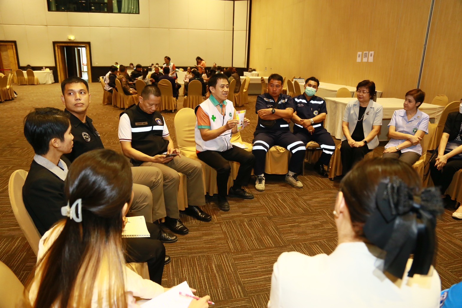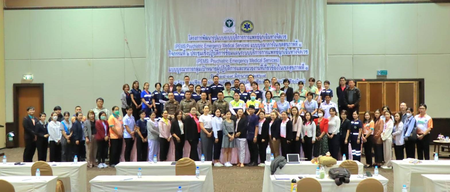 วันที่ 18-19 มิถุนายน 2567 โรงพยาบาลสวนปรุง จัดโครงการพัฒนารูปแบบระบบบริการการแพทย์ฉุกเฉินเฉพาะทางจิตเวช (PEMS : Psychiatric Emergency Medical Services) แบบบูรณาการในเขตสุขภาพที่ 1 กิจกรรมที่ 2 ซ้อมแผนระบบบริการการแพทย์ฉุกเฉินเฉพาะทางจิตเวช สำหรับผู้รับผิดชอบงานบริการจิตเวชและงานบริการการแพทย์ฉุกเฉินโรงพยาบาลทั้งภาครัฐและเอกชน อบจ. อปท. ป้องกันและบรรเทาสาธารณภัย ผู้นำชุมชน ชุดรักษาความปลอดภัยหมู่บ้าน ตำรวจ กู้ชีพกู้ภัยและทีมจิตเวชฉุกเฉิน ในเขตสุขภาพที่ 1 จำนวน 100 คน โดย นพ.กิตต์กวี โพธิ์โน ผู้ช่วยอธิบดีกรมสุขภาพจิต ผู้อำนวยการโรงพยาบาลสวนปรุง มอบหมายให้ นพ.กิตติพงศ์ สานิชวรรณกุล รองผู้อำนวยการด้านการแพทย์ 1 เป็นประธานเปิดงาน นพ.กิตติศักดิ์ วิบูลย์มา นายแพทย์ชำนาญการพิเศษ หัวหน้าทีมปฏิบัติการการแพทย์ฉุกเฉินเฉพาะทางจิตเวช โรงพยาบาลสวนปรุง กล่าวรายงานและนำคณะ เป็นวิทยากร ณ โรงแรมเชียงใหม่แกรนด์วิว อำเภอเมืองเชียงใหม่ จังหวัดเชียงใหม่
