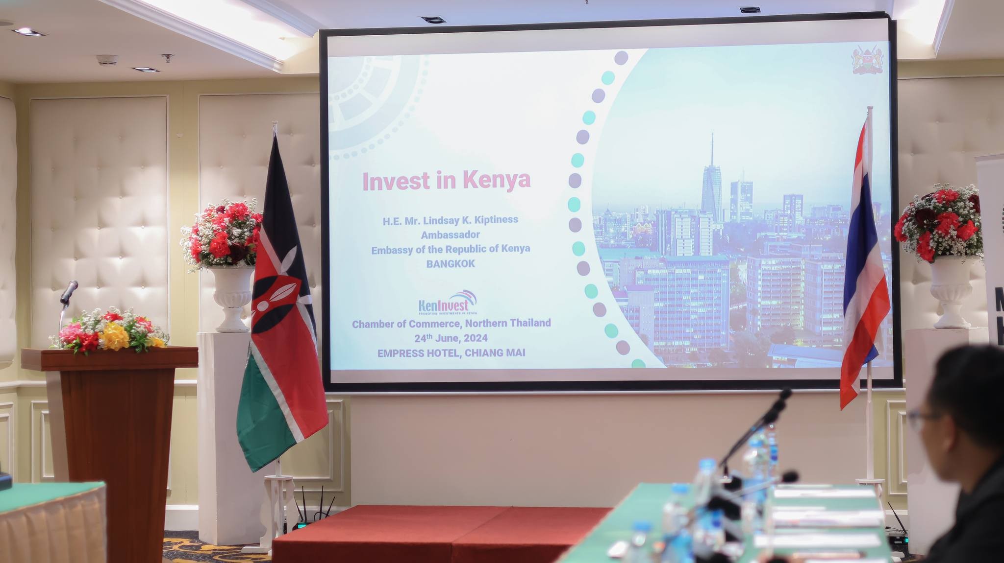 วันที่ 24 มิถุนายน 2567 ผู้แทนหอการค้าจังหวัดเชียงใหม่ นำโดย นายอาคม สุวรรณกันธา รองประธานกรรมการ พร้อมด้วย นายสมโภช ลิ้มเล็งเลิศ รองประธานกรรมการ นายสุกฤษ กระแสสุข กรรมการรองเลขาธิการ และนายสาธิน เชื้อเจ็ดตน รองประธานกรรมการ YEC ร่วมประชุมหารือในการเตรียมความพร้อมหอการค้าภาคเหนือเพื่อการค้าการลงทุนในประเทศเคนยา ร่วมกับเอกอัครราชทูตสาธารณรัฐเคนยาประจำประเทศไทย โดย Mr. Kiptiness Lindsay Kimwole ณ ห้องกินรี 1 ชั้น 2 อาคารโรงแรมเอ็มเพรส พรีเมียร์ จังหวัดเชียงใหม่