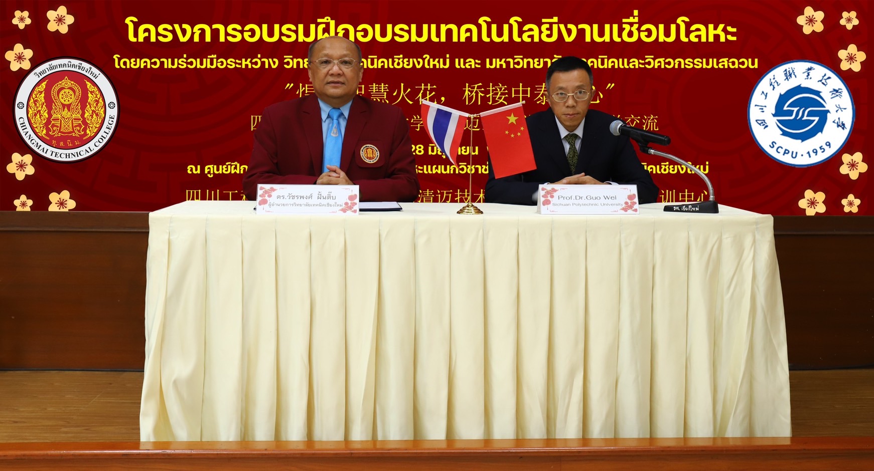 วิทยาลัยเทคนิคเชียงใหม่จัดโครงการอบรมฝึกอบรมเทคโนโลยีงานเชื่อมโลหะ แผนกวิชาช่างเชื่อมโลหะ ซึ่งเป็นความร่วมมือระหว่าง วิทยาลัยเทคนิคเชียงใหม่ และ มหาวิทยาลัยเทคนิคและวิศวกรรมเสฉวน