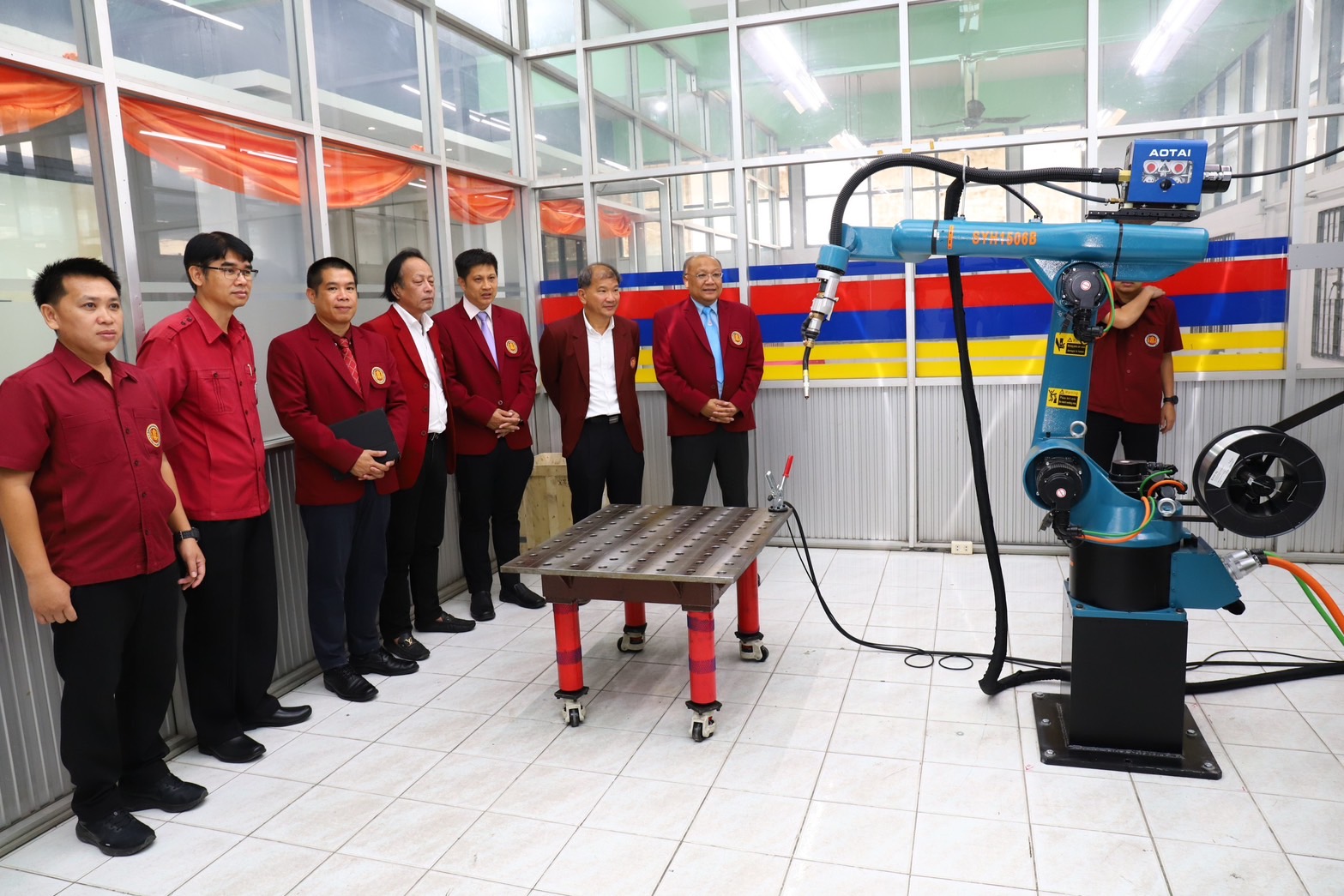 โดยมีคณะผู้บริหาร คณะครู นักเรียน นักศึกษา ที่มีการจัดการเรียนการสอนในประเภทวิชาอุตสาหกรรม เข้าร่วมการเปิดงานโครงการฯในครั้งนี้ และได้เยี่ยมชมห้องปฏิบัติการและการทำงานของครุภัณฑ์ที่ได้รับโดยมีวัตถุประสงค์เพื่อจัดตั้งเป็นศูนย์เทคโนโลยีงานเชื่อมเป็นแหล่งบริการเครื่องมืออุปกรณ์และเทคโนโลยีเกี่ยวกับงานเชื่อม สำหรับการสอนให้กับครู อาจารย์ นักเรียน นักศึกษา ประชาชนที่สนใจในงานเชื่อมและมีพื้นที่ในการเรียนรู้ของผู้เรียนที่ต้องการแสวงหา ภายใต้แนวคิดการศึกษาเพื่ออาชีพและพัฒนาสังคม ร่วมกับกรมพัฒนาฝีมือแรงงาน พร้อมทั้งเป็นศูนย์สื่อเทคโนโลยีงานเชื่อมชั้นสูงที่สมบูรณ์ ที่สามารถให้บริการจัดอบรมเผยแพร่ความรู้เกี่ยวกับเทคโนโลยีงานเชื่อมอย่างมีคุณภาพในอนาคตต่อไป