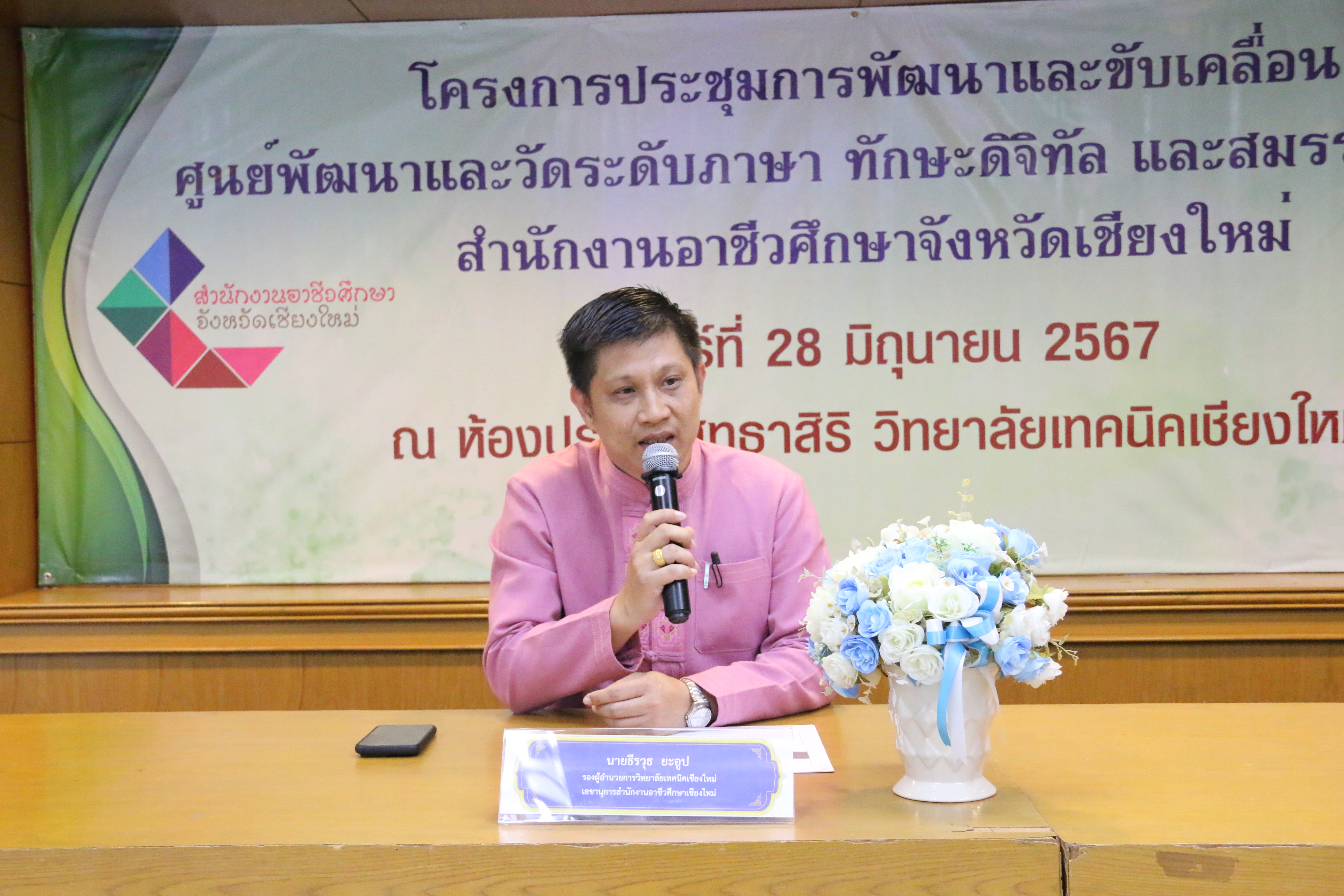 สำนักงานอาชีวศึกษาจังหวัดเชียงใหม่ ดำเนินโครงการการประชุมการพัฒนาและขับเคลื่อนศูนย์พัฒนาและวัดระดับภาษา ทักษะดิจิทัล และสมรรถนะวิชาชีพ สำนักงานอาชีวศึกษาจังหวัดเชียงใหม่” ภายใต้โครงการยกระดับและพัฒนาขีดความสามารถด้านภาษา และทักษะดิจิทัลเพื่อพัฒนากำลังคนให้มีสมรรถนะสูง สอดรับกับมาตรฐานสากล
