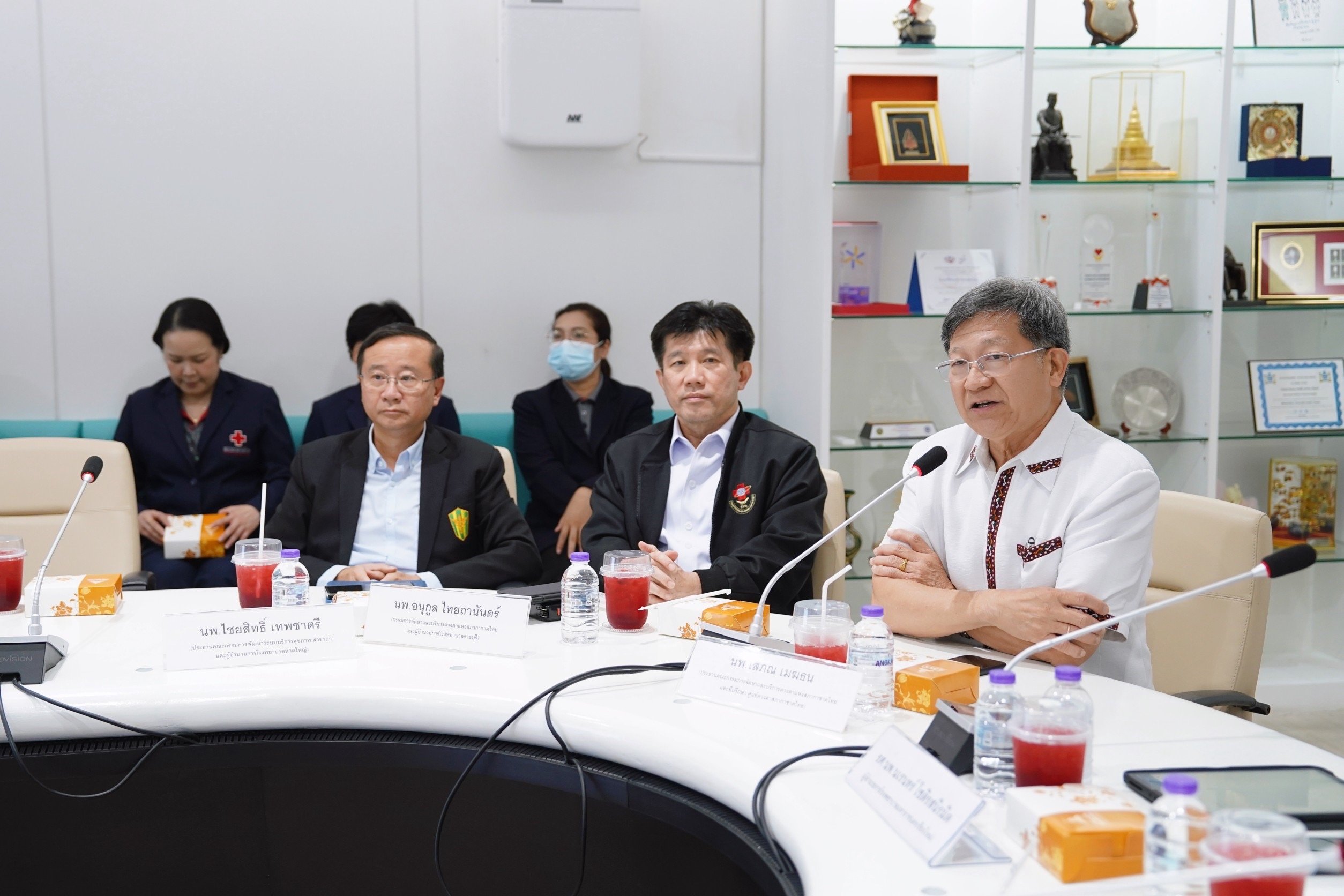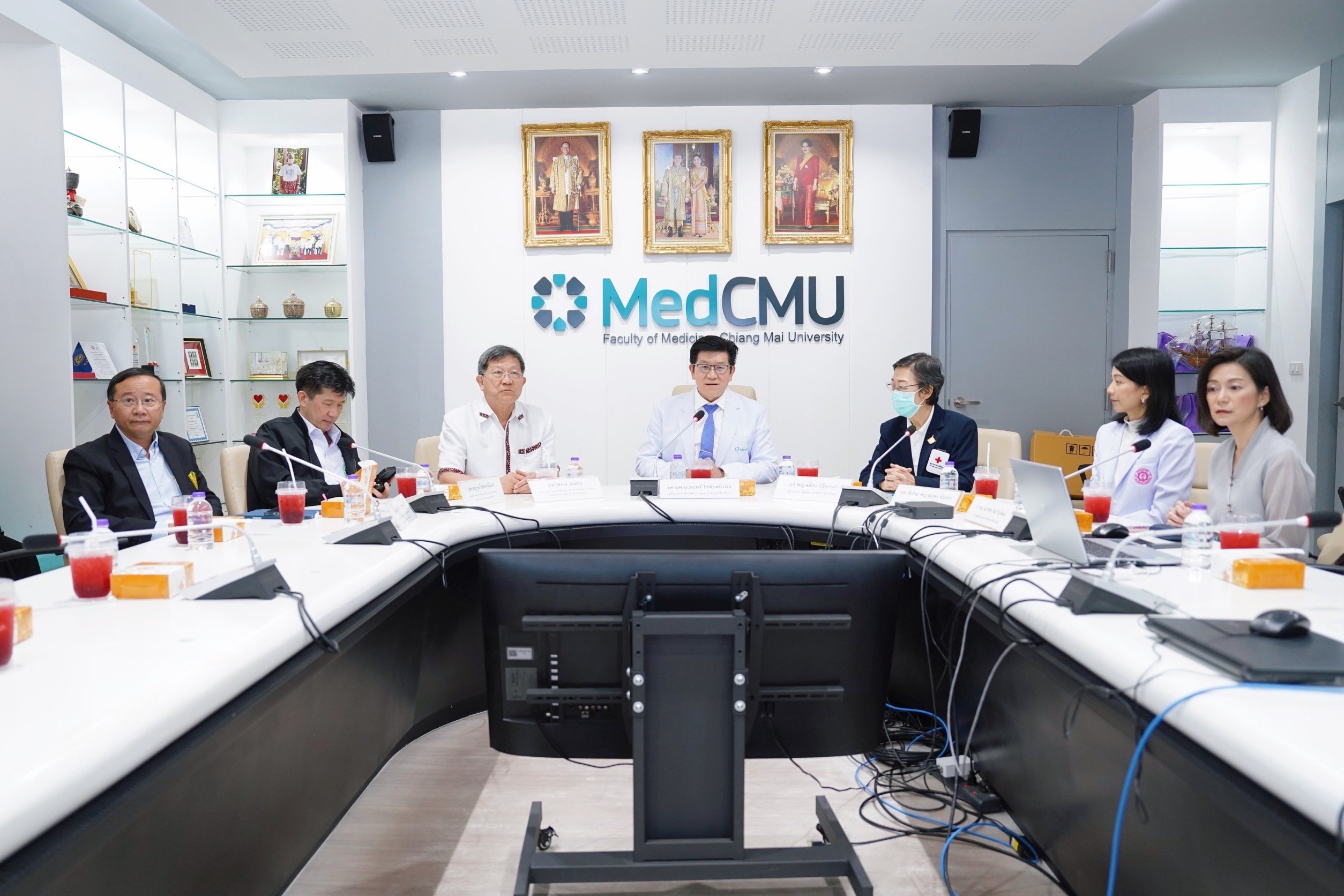รศ.นพ.นเรนทร์ โชติรสนิรมิต ผู้อำนวยการโรงพยาบาลมหาราชนครเชียงใหม่ พร้อมด้วย ดร.พรศิริ ใจสม รองหัวหน้าฝ่ายการพยาบาล โรงพยาบาลมหาราชนครเชียงใหม่, รศ.พญ.นภาพร ตนานุวัฒน์ รองหัวหน้าภาควิชาจักษุวิทยา และคณะ ให้การต้อนรับ นพ.โสภณ เมฆธน ประธานคณะกรรมการจัดหาและบริการดวงตา สภากาชาดไทย และที่ปรึกษา ศูนย์ดวงตา สภากาชาดไทย, ผศ.พญ.ลลิดา ปริยกนก ผู้อำนวยการศูนย์ดวงตาสภากาชาดไทย พร้อมคณะ ร่วมการประชุมชี้แจงการดำเนินการจัดหาดวงตาจากผู้บริจาคภาวะหัวใจหยุดเต้น (Cardiac death) โดยมี หัวหน้างานการพยาบาล หัวหน้าหอผู้ป่วย รวมทั้งจักษุแพทย์ ร่วมให้การต้อนรับ และแลกเปลี่ยนเรียนรู้การบริจาคดวงตา เพื่อส่งเสริมศักยภาพการรับบริจาคดวงตาในโรงพยาบาลมหาราชนครเชียงใหม่ ให้มีจำนวนเพิ่มมากขึ้น ในวันที่ 28 มิถุนายน 2567 ณ ห้องประชุมบุญสม มาร์ติน ชั้น 1 อาคารบุญสม มาร์ติน คณะแพทยศาสตร์ มช.