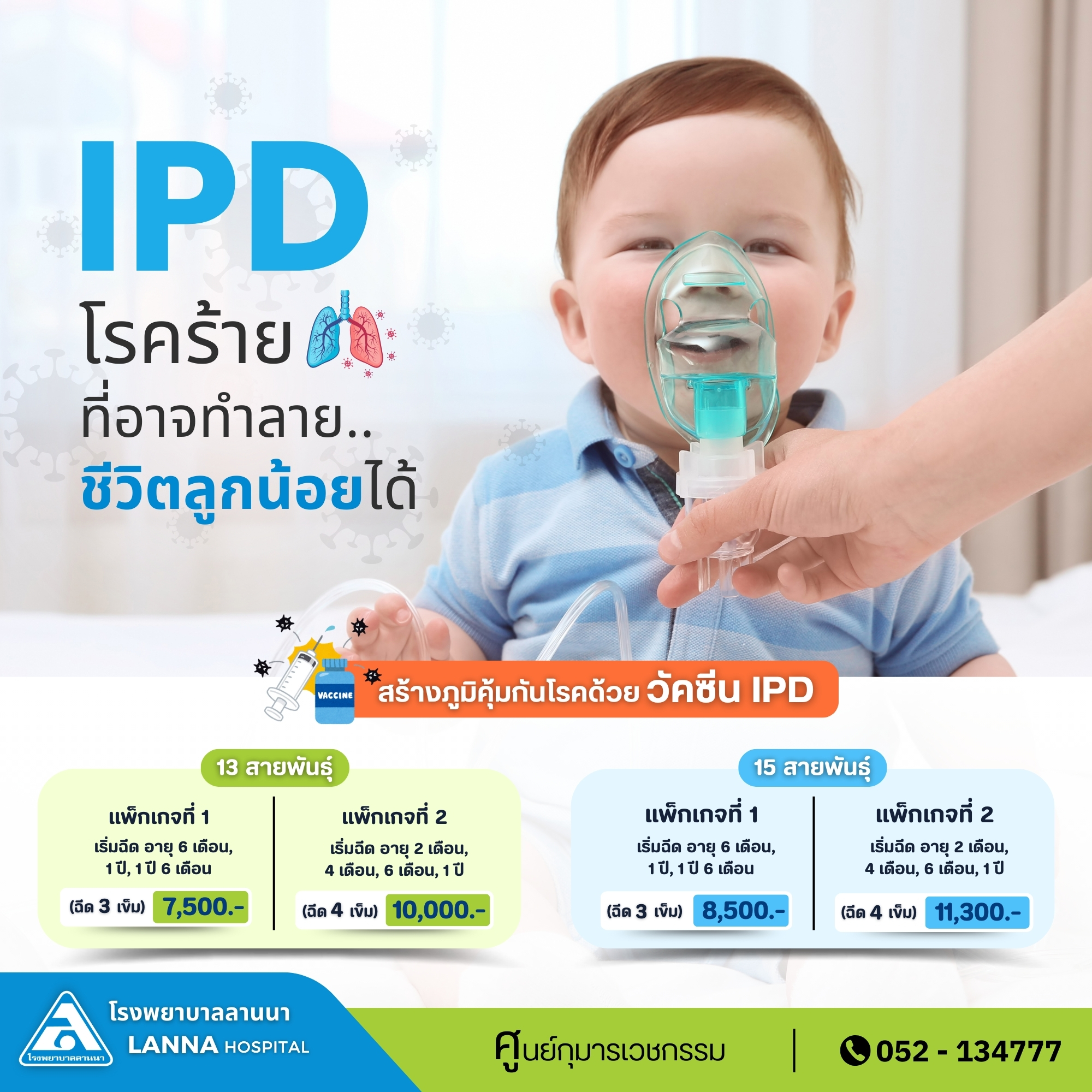เสริมสร้างภูมิคุ้มกันให้กับลูกๆของท่าน ด้วยการฉีดวัคซีน IPD ป้องกันโรคปอดอักเสบในเด็ก เชื้อ นิวโมคอคคัส มีมากกว่า 90 สายพันธุ์ แต่ละสายพันธุ์มีความรุนแรงก่อโรคไม่เท่ากัน แนะนำให้ฉีดวัคซีนป้องกัน IPD ในเด็ก อายุต่ำกว่า 5 ปี สามารถฉีดตั้งแต่เด็กอายุ 2 เดือน ขึ้นไป