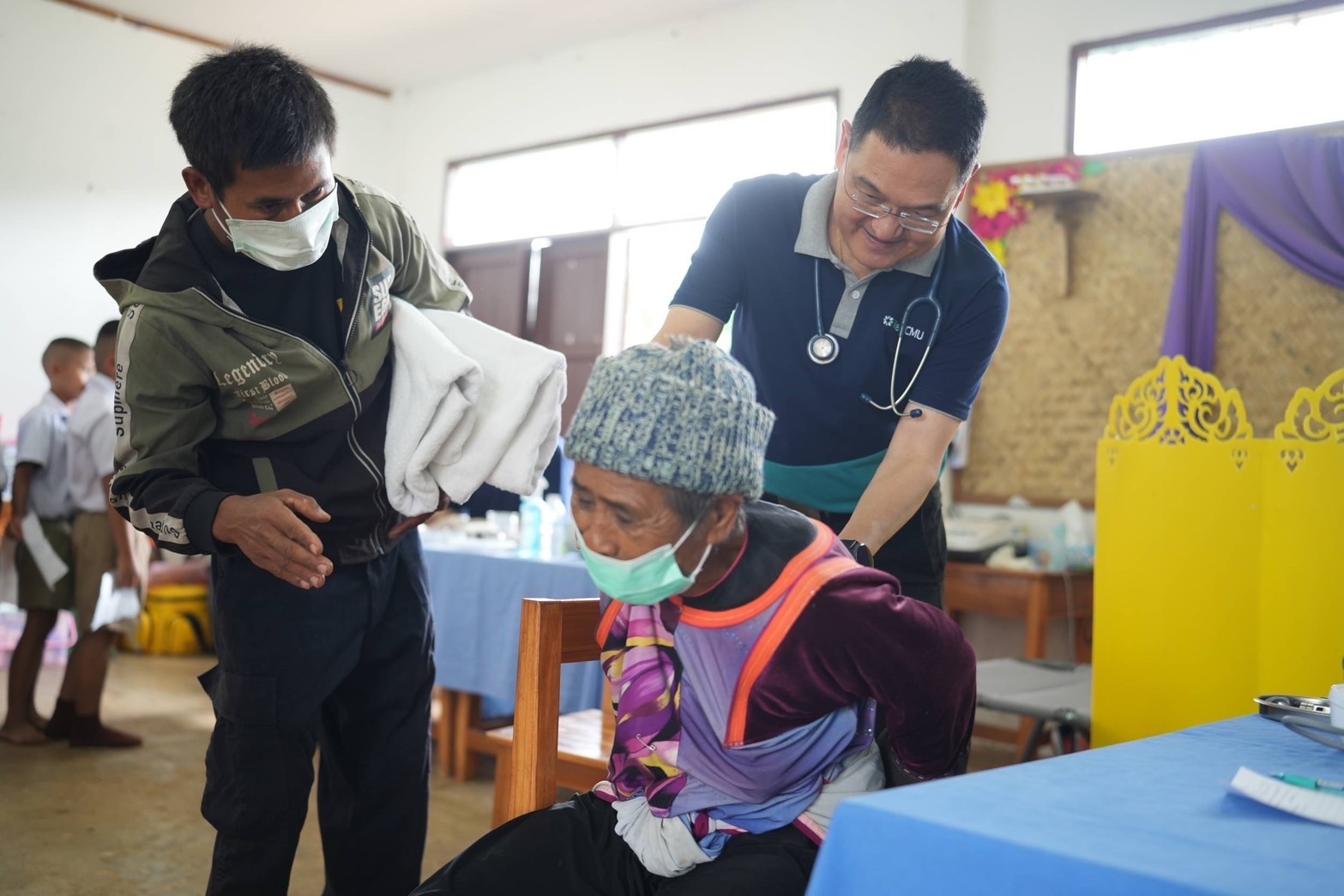ศ.(เชี่ยวชาญพิเศษ)นพ.บรรณกิจ โลจนาภิวัฒน์ คณบดีคณะแพทยศาสตร์ มช. พร้อมด้วย ผศ.พญ.พุดตาน วงศ์ตรีรัตนชัย รองคณบดีคณะแพทยศาสตร์ มช. รศ.พญ.ประภาพร สู่ประเสริฐ รองคณบดีคณะแพทยศาสตร์ มช. บุคลากรทางการแพทย์ เจ้าหน้าที่จากหน่วยงานต่างๆ จิตอาสาผู้ร่วมปฏิบัติงาน ทันตแพทย์จิตอาสาจากคลินิคทันตกรรมเอเชียฟอร์จูน และออฟโรดจิตอาสา รวมจำนวน 78 คน ออกหน่วยแพทย์อาสาฯ ให้บริการตรวจรักษาพยาบาล แก่นักเรียน และประชาชนในพื้นที่ดอยสามหมื่น เมื่อวันที่ 20 กรกฎาคม 2567 ณ โรงเรียนตำรวจตระเวนชายแดนเบญจมะ 1 บ้านสามหมื่น ต.เมืองแหง อ.เวียงแหง จ.เชียงใหม่