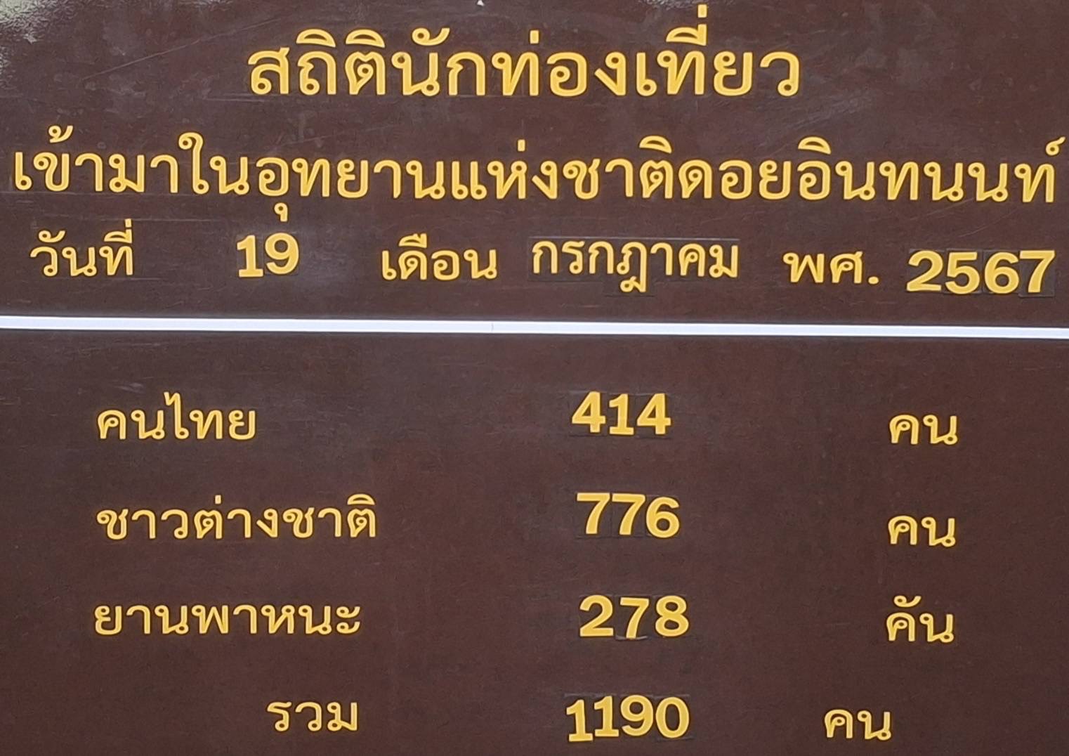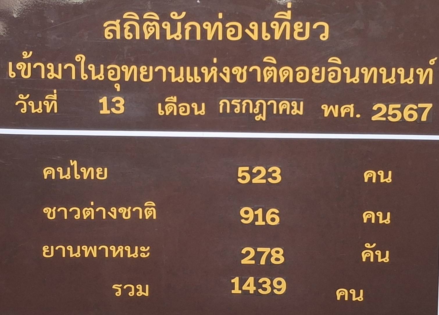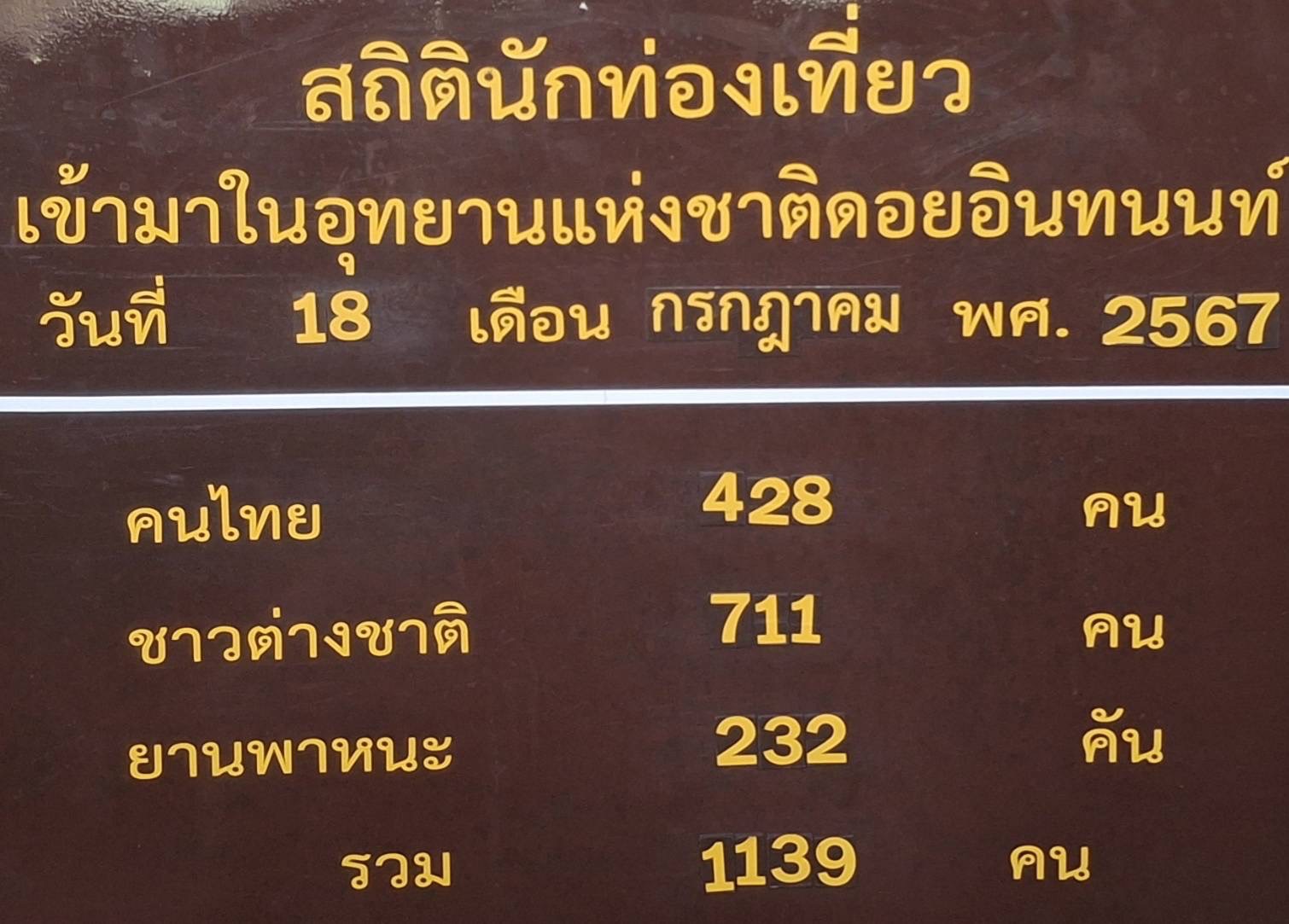 อุณหภูมิต่ำสุดเช้าวันนี้ ที่ยอดดอยอินทนนท์วัดได้ 13 องศาเซลเซียส ส่วนจุดชมแสงแรกเช็คอินยามเช้าตรู่นักท่องเที่ยวพลาดหวังมีแต่หมอกลงปกคลุม อุณหภูมิวัดได้ 15 องศาเซลเซียส และที่ทำการอุทยานแห่งชาติดอยอินทนนท์ กม. 31 วัดได้ 19 องศาเซลเซียส กำลังเย็นสบาย ๆ สถิตินักท่องเที่ยวสะสมจากเมื่อวานนี้ นักท่องเที่ยวชาวไทยจำนวน 1,897 คน นักท่องเที่ยวต่างชาติจำนวน 845 คน ยอดรวมจำนวน 2,742 คน ยานพาหนะ 936 คัน ส่วนสถิตินักท่องเที่ยวสะสมเมื่อวันที่ 20 กรกฎาคม 2567 นักท่องเที่ยวชาวไทยจำนวน 1,689 คน นักท่องเที่ยวต่างชาติจำนวน 1,016 คน ยอดรวมจำนวน 2,705 คน ยานพาหนะจำนวน 606 คัน ซึ่งปริมาณนักท่องเที่ยวต่างชาติเข้ามาท่องเที่ยวเพิ่มมากขึ้นต่อวัน 700 คน พบมากที่สุด วันที่ 20 กรกฎาคม 2567 จำนวน 1,016 คน