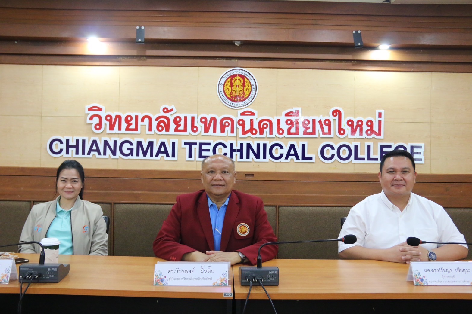 วันศุกร์ที่ 9 สิงหาคม 2567 ดร.วัชรพงศ์ ฝั้นติ๊บ ผู้อำนวยการวิทยาลัยเทคนิคเชียงใหม่ ปฏิบัติหน้าที่ ผู้อำนวยการสำนักงานอาชีวศึกษาจังหวัดเชียงใหม่ ร่วมประชุมการลงพื้นที่หนุนเสริมสนับสนุนวิชาการ ติดตามและประเมินการทำงาน ให้แก่สถานศึกษาสายอาชีพที่รับทุนนวัตกรรมสายอาชีพชั้นสูง โดยมีผู้ทรงคุณวุฒิร่วมลงพื้นที่ จำนวน 4 ท่าน ได้แก่