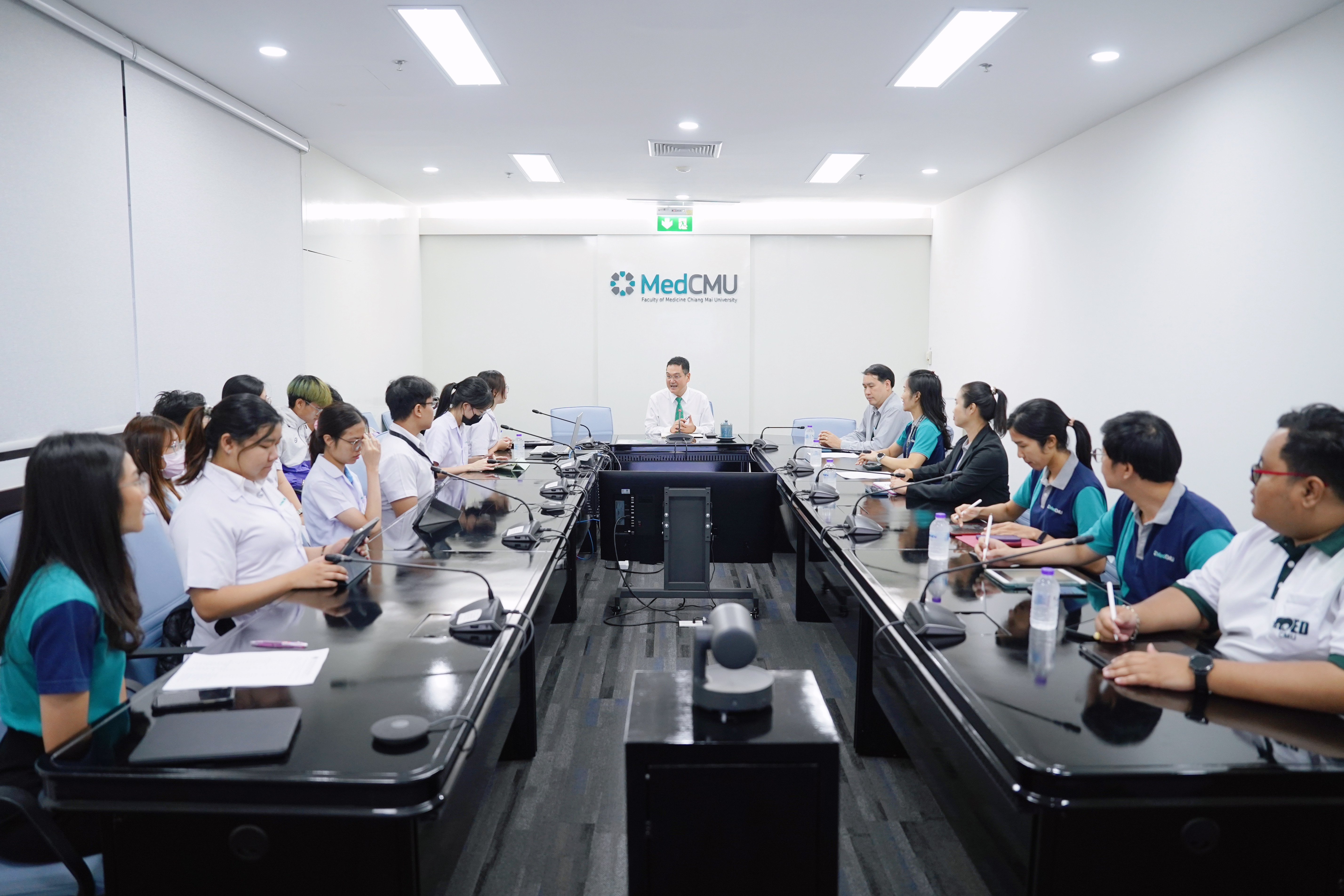 ศ.(เชี่ยวชาญพิเศษ)นพ.บรรณกิจ โลจนาภิวัฒน์ คณบดีคณะแพทยศาสตร์ มช. เป็นประธานการประชุม สโมสรนักศึกษาแพทย์ มหาวิทยาลัยเชียงใหม่ พบผู้บริหาร ครั้งที่ 2 ประจำปีการศึกษา 2567 โดยมี รศ.นพ.เอกรัฐ รัฐฤทธิ์ธำรง และ ผศ.พญ.จีระนันท์ คุณาชีวะ ผู้ช่วยคณบดีคณะแพทยศาสตร์ มช. พร้อมด้วย นศพ.พิมพ์ลักษณ์ ชัยจิตติประเสริฐ นายกสโมสรนักศึกษาแพทย์ และทีมบริหารสโมสรนักศึกษา คณะแพทยศาสตร์ มช. ประจำปีการศึกษา 2567 เข้าร่วมประชุม เพื่อติดตามความก้าวหน้าของกิจกรรมต่าง ๆ และรับฟังข้อเสนอแนะของสโมสรนักศึกษาฯ ในวันที่ 21 สิงหาคม 2567 ณ ห้องประชุม 802 ชั้น 8 อาคารราชนครินทร์ คณะแพทยศาสตร์ มช.
