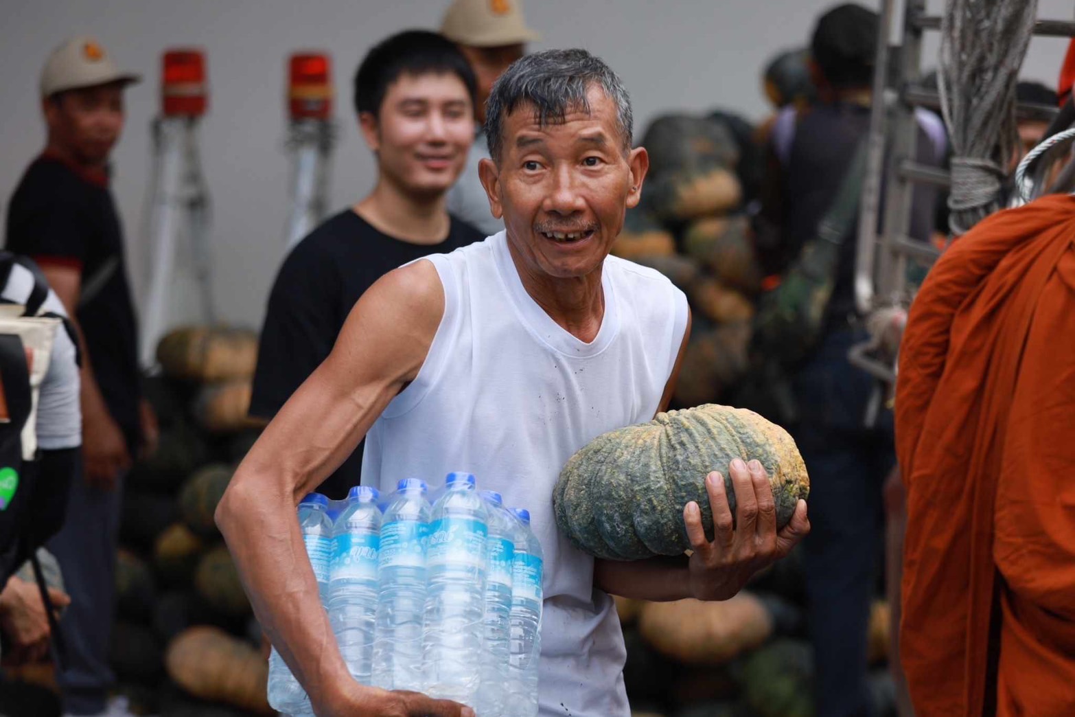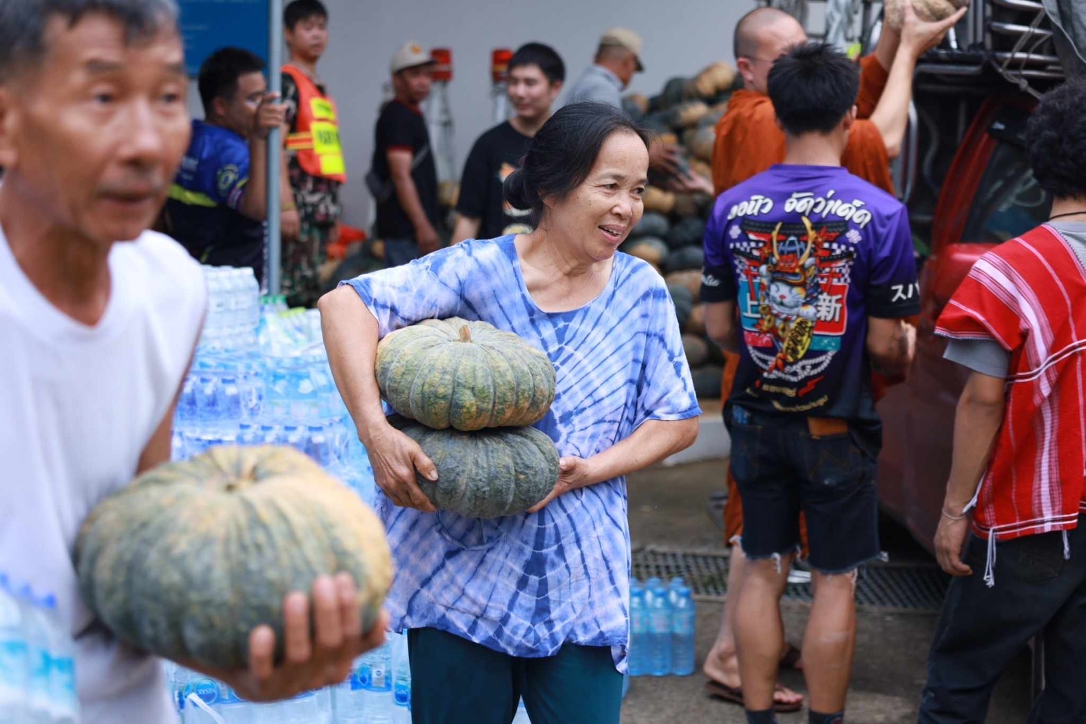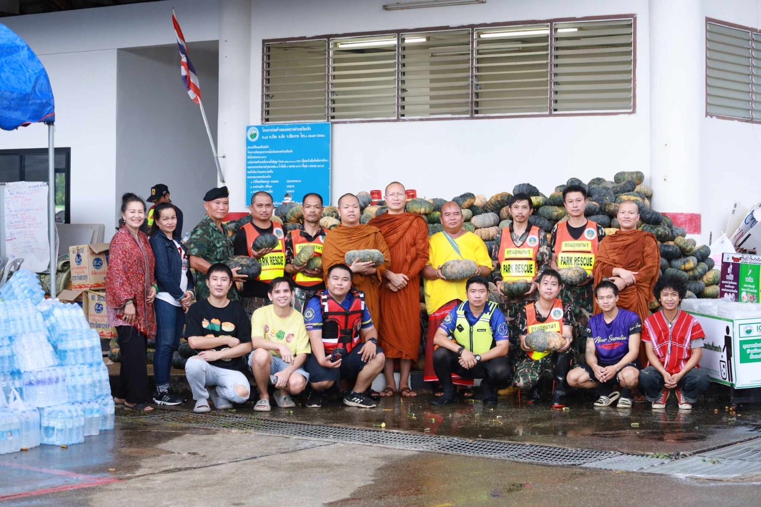 จากใจถึงใจ! พระครูอ๊อด พร้อมญาติธรรม นำฟักทองและผักสดช่วยผู้ประสบภัยน้ำท่วม