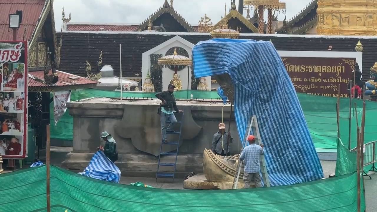 เมื่อบ่ายวันที่ 23 ส.ค.2567 ผู้สื่อข่าวรายงานข่าวคืบหน้า กรณีชาวเชียงใหม่และผู้คนจำนวนมากแสดงความเห็นคัดค้านและวิพากษ์วิจารณ์อย่างหนักกรณีที่วัดพระธาตุดอยคำ ตำบลแม่เหียะ อำเภอเมือง จังหวัดเชียงใหม่ ซึ่งเป็นวัดชื่อดังที่มีผู้คนจำนวนมากเชื่อถือศรัทธาโดยเฉพาะในเรื่องการขอพรและโชคลาภจากการเสี่ยงโชค กำลังดำเนินการจัดสร้างองค์ท้าวเวสสุวรรณความสูง 19 เมตร ซึ่งมีความสูงที่สุดในโลก โดยเพิ่งจัดพิธียกเท้ายักษ์ขึ้นแท่นบัลลังก์เมื่อช่วงสัปดาห์ที่ผ่านมา ทั้งนี้การก่อสร้างดังกล่าวดำเนินการตามการกล่าวอ้างของนางศิวณัฐ รัชตดำรงรัตน์ หรือ “ป้าอ้วนดอยคำ” ที่ระบุว่า ปู่แสะย่าแสะ ยักษ์ในตำนานที่ปกปักษ์รักษาวัดพระธาตุดอยคำ มาเข้าฝันบอกว่า ให้สร้างองค์ท้าวเวสสุวรรณ สูง 19 เมตร ประดิษฐานหน้าวัดพระธาตุดอยคำ