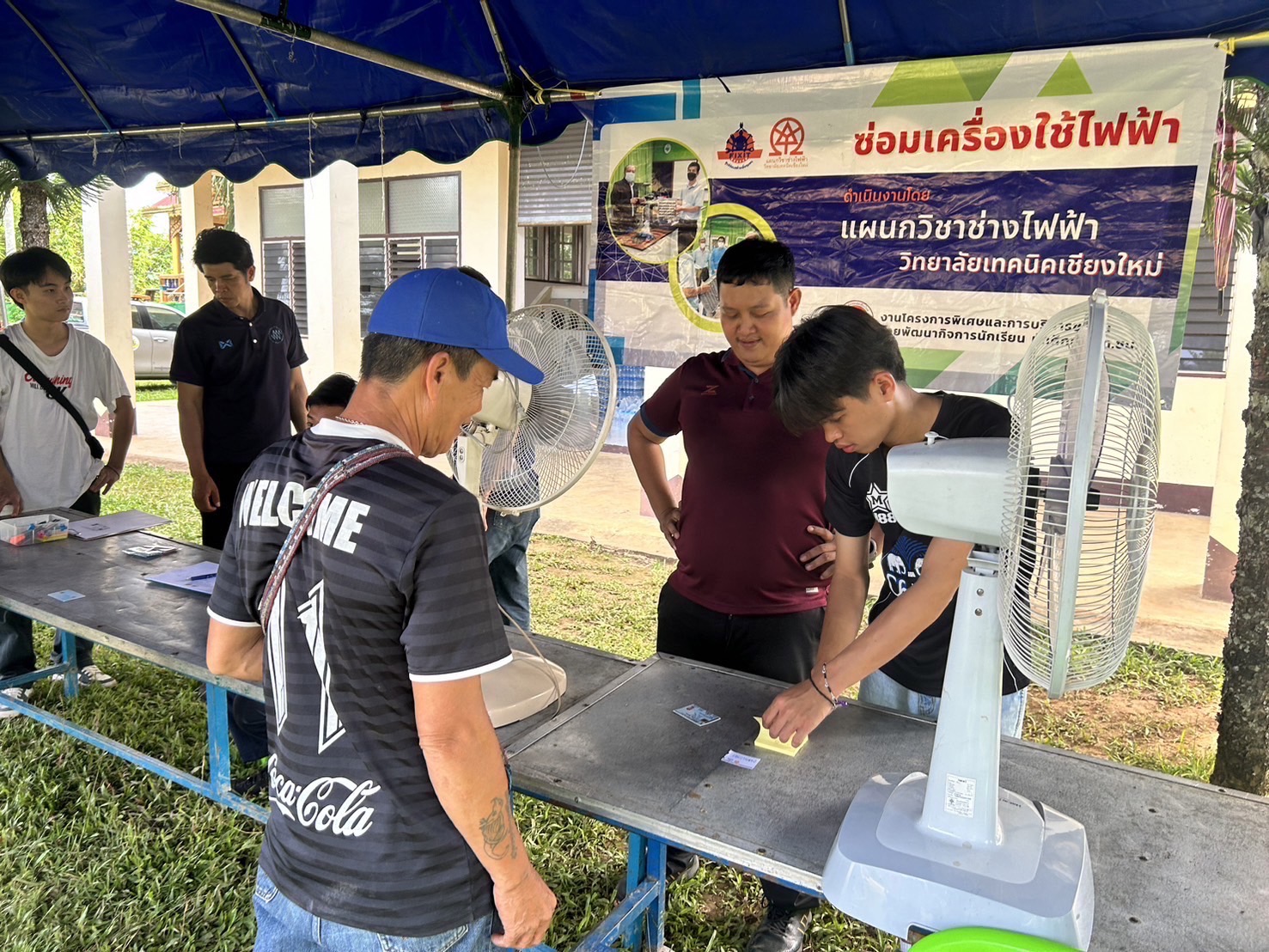วันที่ 18 – 20 กันยายน 2567 ดร.วัชรพงศ์ ฝั้นติ๊บ ผู้อำนวยการวิทยาลัยเทคนิคเชียงใหม่ ปฏิบัติหน้าที่ ผู้อำนวยการสำนักงานอาชีวศึกษาจังหวัดเชียงใหม่ มอบหมายให้ คณะครูและนักศึกษาแผนกวิชาช่างยนต์ แผนกวิชาช่างไฟฟ้า และแผนกวิชาช่างอิเล็กทรอนิกส์ จัดทีมเฉพาะกิจช่วยเหลือพี่น้องประชาชนโดยลงพื้นที่จัดตั้งศูนย์ซ่อมสร้างเพื่อชุมชน Fix It Center เพื่อบริการซ่อมเครื่องใช้ไฟฟ้า ยานพาหนะอุปกรณ์ทางการเกษตร และอุปกรณ์อิเล็กทรอนิกส์ ที่ได้รับความเสียหายจากเหตุการณ์อุทกภัย ณ วัดหมอกจ๋าม ตำบลท่าตอน จังหวัดเชียงใหม่ โดยมีประชาชนจำนวนมากที่ได้รับความเดือนร้อนจากอุทกภัยในครั้งนี้ ทั้งนี้ ศูนย์ Fix it Center วิทยาลัยเทคนิคเชียงใหม่ ได้รับการตรวจเยี่ยมจาก นายนิรัตน์ พงษ์สิทธิถาวร ผู้ว่าราชการจังหวัดเชียงใหม่ ได้ลงพื้นที่ให้กำลังใจ พร้อมมอบอาหาร น้ำดื่ม กับคณะครู และนักเรียนนักศึกษา วิทยาลัยเทคนิคเชียงใหม่
