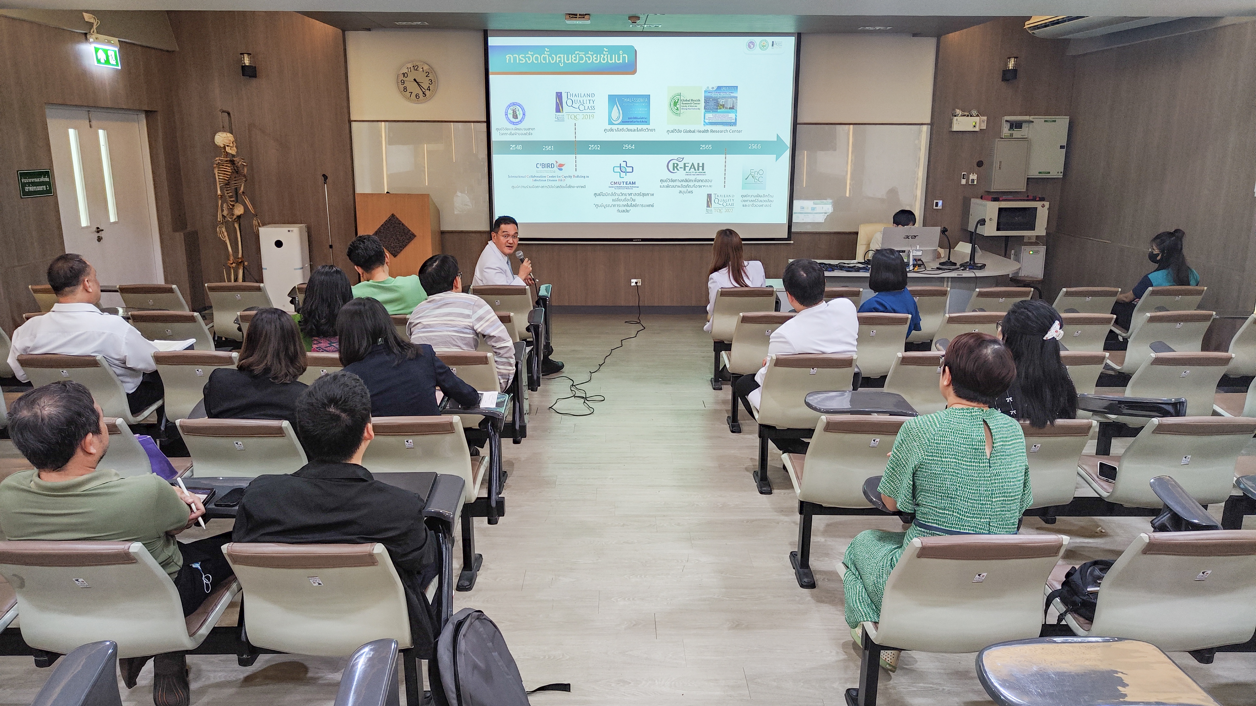 ศ.(เชี่ยวชาญพิเศษ)นพ.บรรณกิจ โลจนาภิวัฒน์ คณบดีคณะแพทยศาสตร์ มช. พร้อมด้วยคณะผู้บริหาร และหัวหน้างาน เยี่ยมหัวหน้าภาควิชาสรีรวิทยา คณะแพทยศาสตร์ มช. ประจำปี 2567 เพื่อชี้แจงเป้าหมายและการดำเนินงานที่สำคัญของคณะแพทยศาสตร์ มช. ปี 2566 – 2567 พร้อมรับฟังผลการดำเนินงานที่สำคัญของภาควิชาที่สอดคล้องกับแผนกลยุทธ์ MEDCMU โดยมี รศ.ดร.อนุสรณ์ ลังกาพินธ์ หัวหน้าภาควิชาสรีรวิทยา คณะแพทยศาสตร์ มช. พร้อมคณาจารย์ และบุคลากร หัวหน้าภาควิชาสรีรวิทยา คณะแพทยศาสตร์ มช. ให้การต้อนรับ ในวันที่ 9 ตุลาคม 2567 ณ ห้องบรรยาย 3 ชั้น 2 อาคารบุญสมมาร์ติน คณะแพทยศาสตร์ มช.