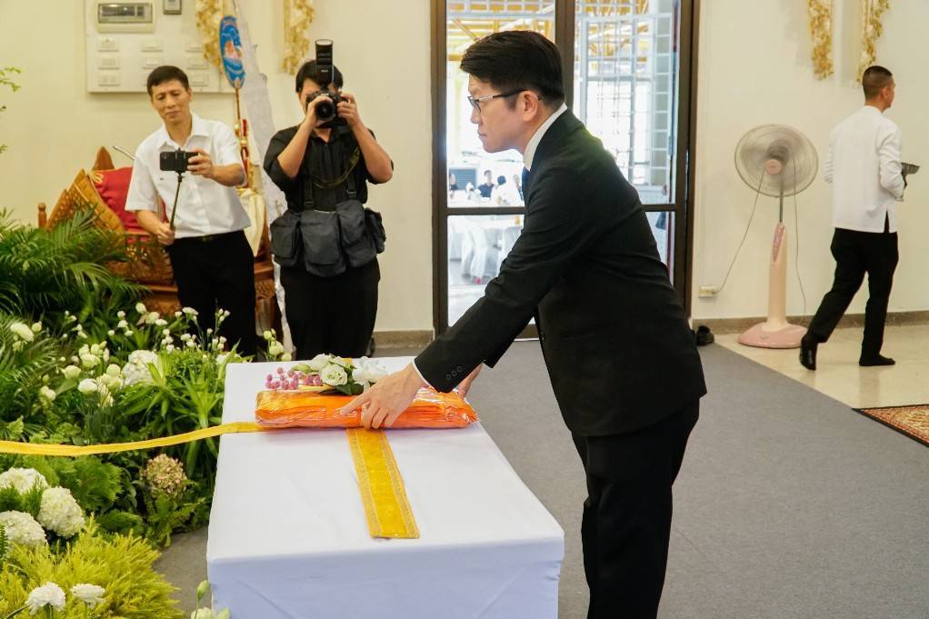 รศ.นพ.นเรนทร์ โชติรสนิรมิต ผู้อำนวยการโรงพยาบาลมหาราชนครเชียงใหม่ พร้อมด้วย ผศ.นพ.ธนินนิตย์ ลีรพันธ์ ผู้อำนวยการศูนย์ศรีพัฒน์ คณะแพทยศาสตร์ มช., รศ.นพ.ชัยยุทธ เจริญธรรม รองหัวหน้าภาควิชาอายุรศาสตร์ คณะแพทยศาสตร์ มช. และ อ.นพ.เฉลิมวุฒิ ปิยพัทธไชย์ อาจารย์ภาควิชาออร์โทปิดิกส์ คณะแพทยศาสตร์ มช. ร่วมเป็นเจ้าภาพในพิธีบำเพ็ญกุศลและสวดอภิธรรมศพ คุณพ่อสาโรช รัตนาวดี และรับมอบเงินบริจาค จำนวน 1,500,000 บาท จากรศ.สุนันทา รัตนาวดี อดีตรองคณบดีฝ่ายวิชาการ วิจัยและวิเทศสัมพันธ์ คณะวิจิตรศิลป์ มช. พร้อมครอบครัว เพื่ออุทิศส่วนกุศล ให้แก่ คุณพ่อสาโรช รัตนาวดี สมทบทุนมูลนิธิโรงพยาบาลสวนดอก เพื่อผู้ป่วยมะเร็ง และเพื่อผู้ป่วยยากไร้ ภาควิชาออร์โทปิดิกส์ จำนวน 500,000 บาท, ภาควิชาอายุรศาสตร์ จำนวน 500,000 บาท และ สมทบทุนมูลนิธิโรงพยาบาลสวนดอก เพื่อจัดซื้อเครื่องช่วยหายใจ จำนวน 1 เครื่อง มูลค่า 500,000 บาท ในวันที่ 12 ตุลาคม 2567 ณ ศาลาสหัส-หงษ์ มหาคุณ วัดพระสิงห์วรมหาวิหาร อ.เมือง จ.เชียงใหม่