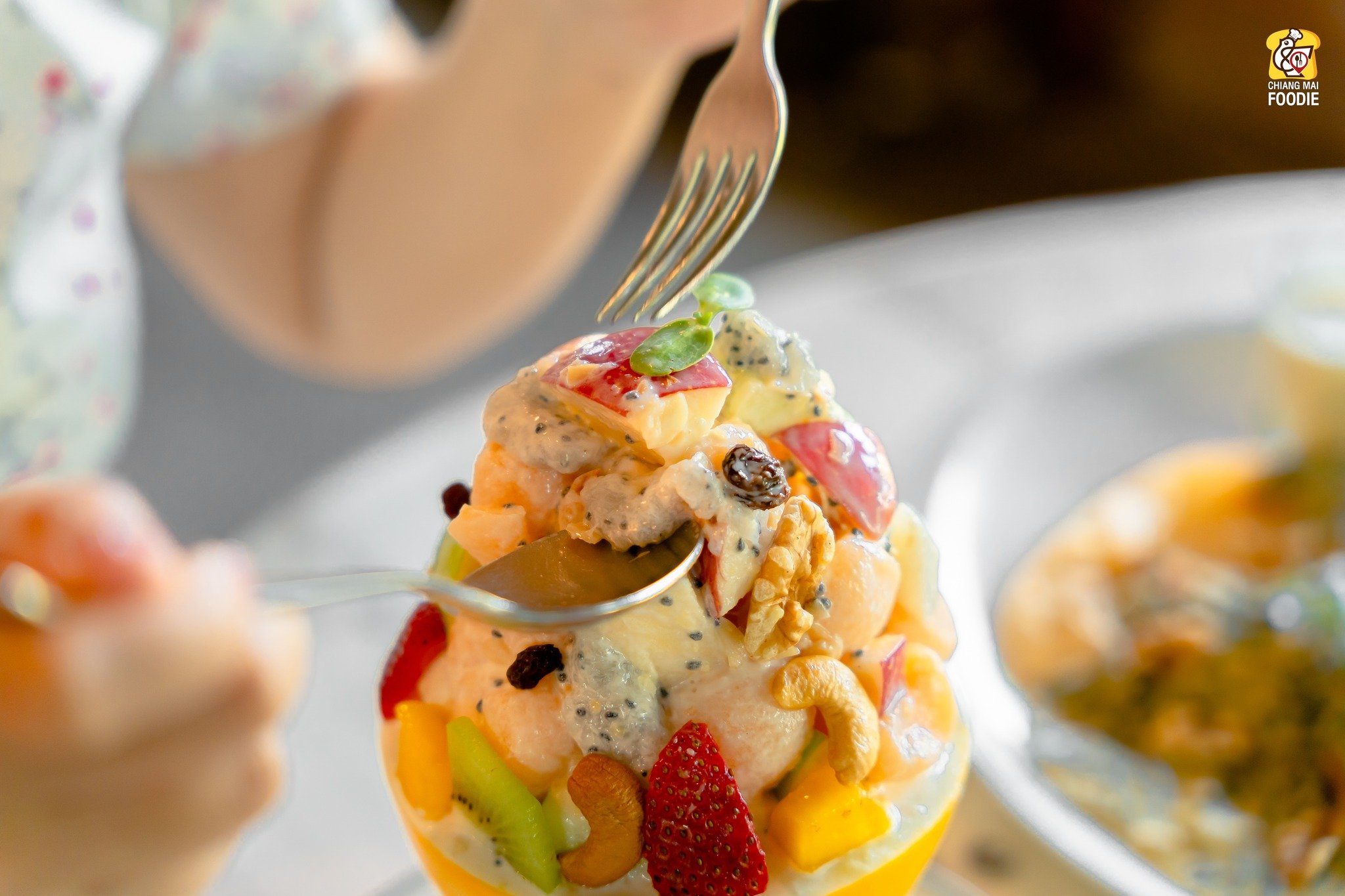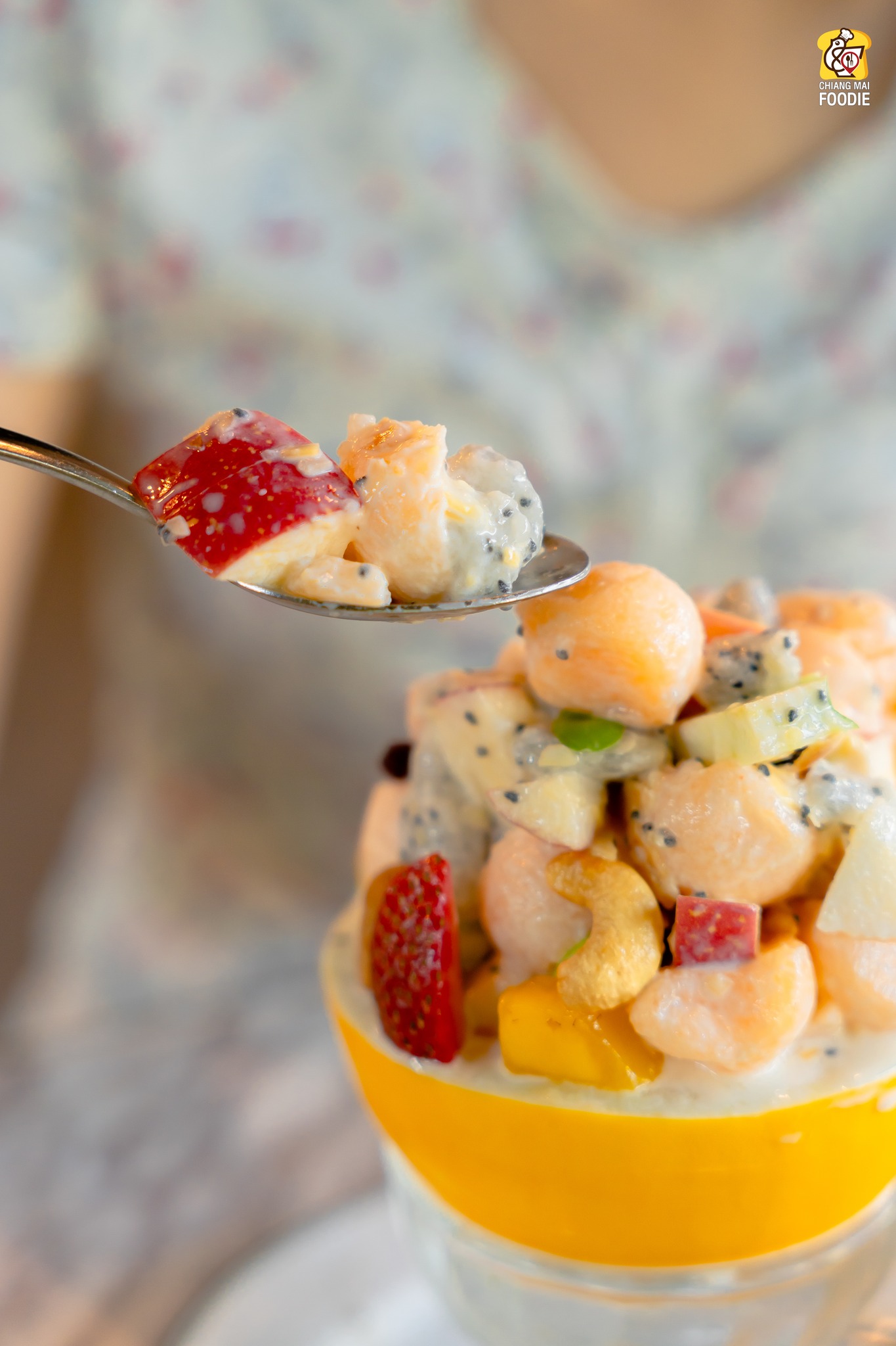 - สลัดผลไม้ เสิร์ฟมาในลูกเมลอนสดชื่น ผลไม้ตามฤดูกาลก็หวานฉ่ำ
