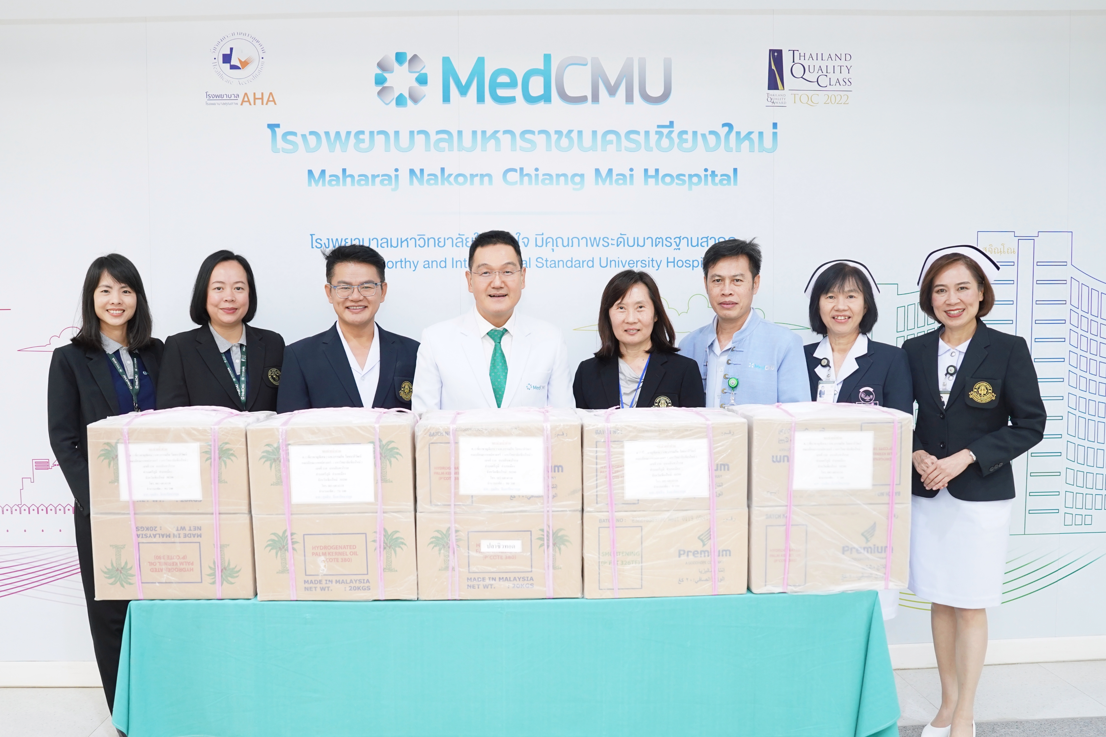 ศ.(เชี่ยวชาญพิเศษ)นพ.บรรณกิจ โลจนาภิวัฒน์ คณบดีคณะแพทยศาสตร์ มช. พร้อมด้วย คุณมะลิวรรณ หินทอง เลขานุการคณะแพทยศาสตร์ มช. และบุคลากรคณะแพทยศาสตร์ มช. รับมอบปลาแห้งทอดกรอบ จำนวน 100 แพ็ค ให้แก่ บุคลากรผู้ประสบอุทกภัยน้ำท่วม จังหวัดเชียงใหม่ จาก คุณสิน จินดารัตนวรกุล ผู้มีอุปการคุณคณะแพทยศาสตร์ มช. ในวันที่ 25 ตุลาคม 2567 ณ โถงชั้น 1 อาคารสุจิณฺโณ โรงพยาบาลมหาราชนครเชียงใหม่ คณะแพทยศาสตร์ มช.
