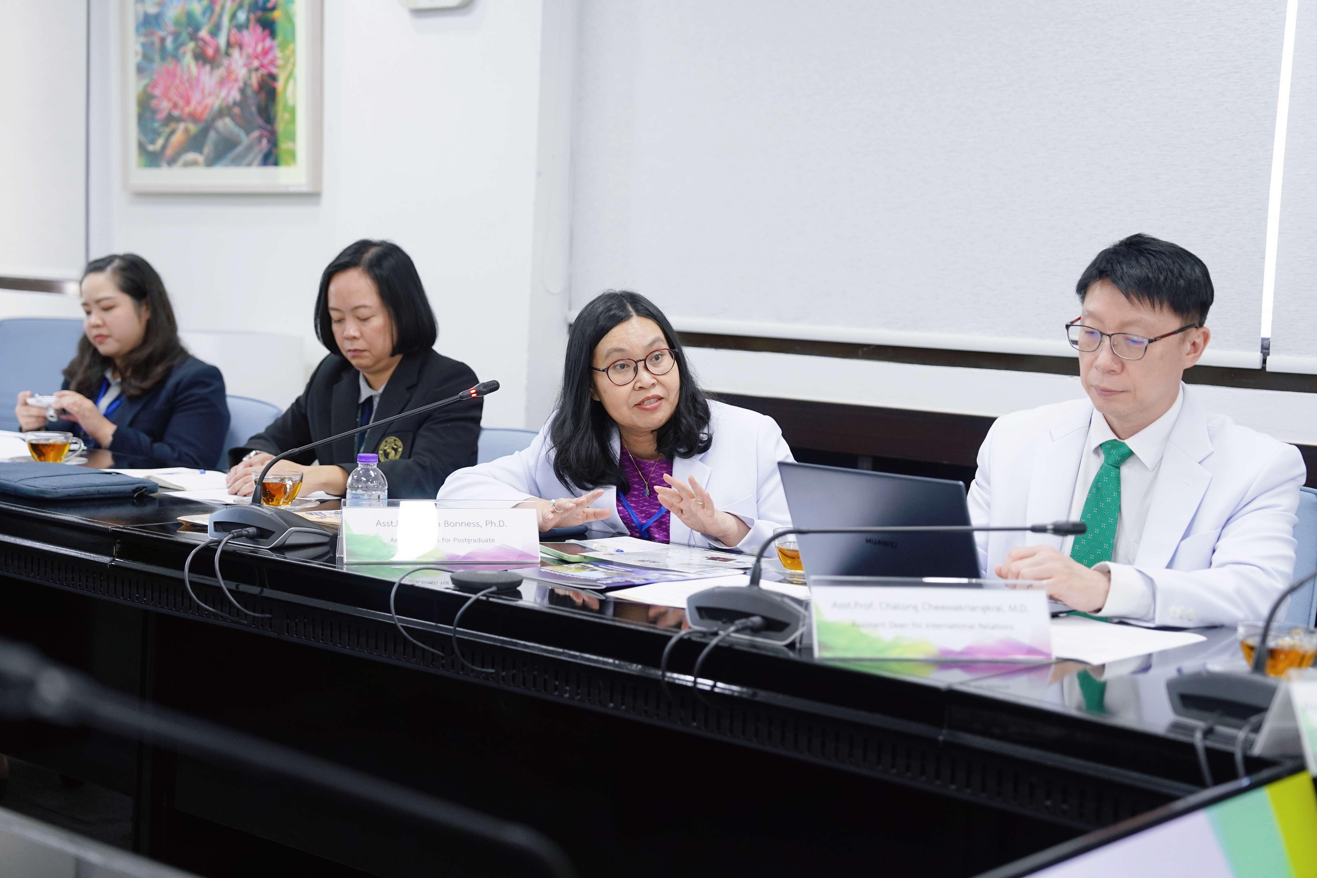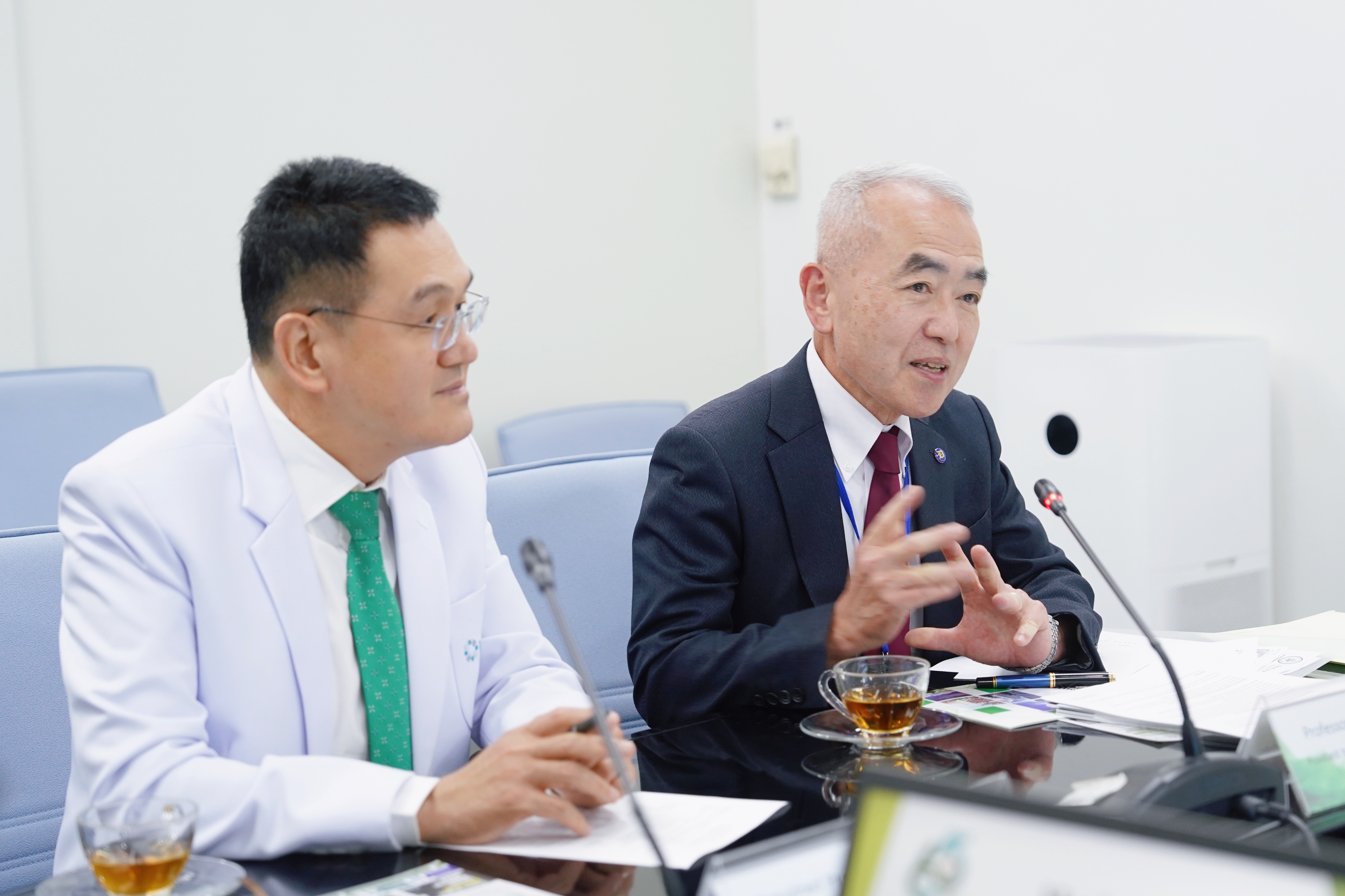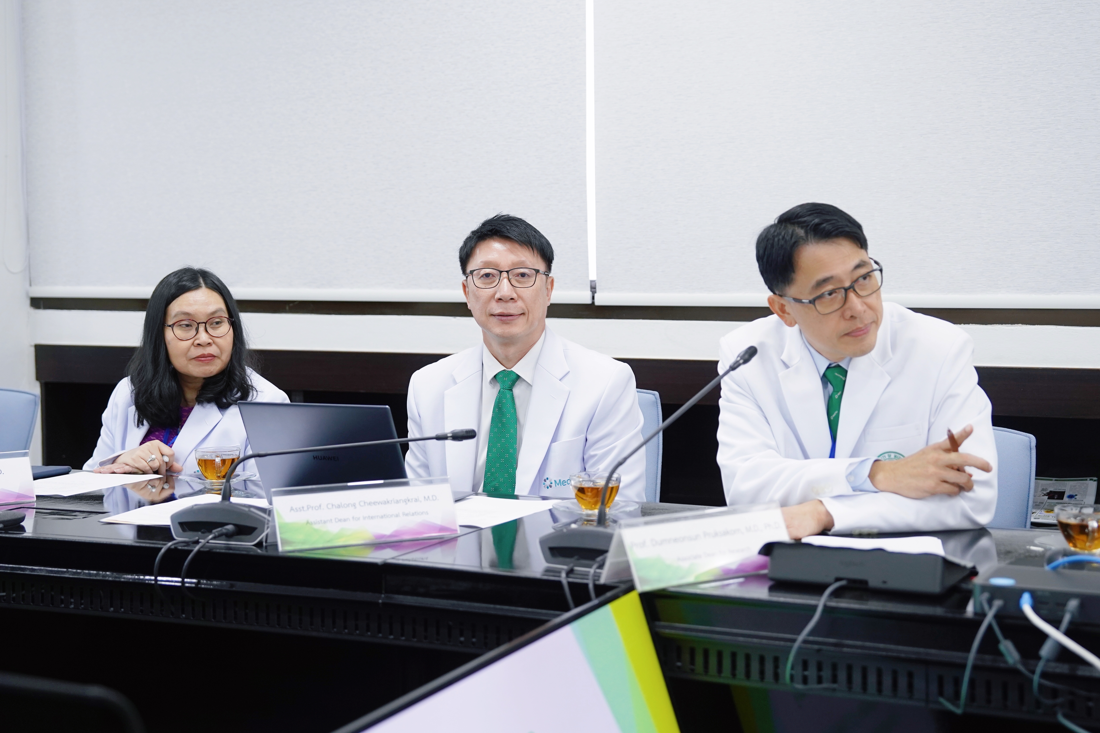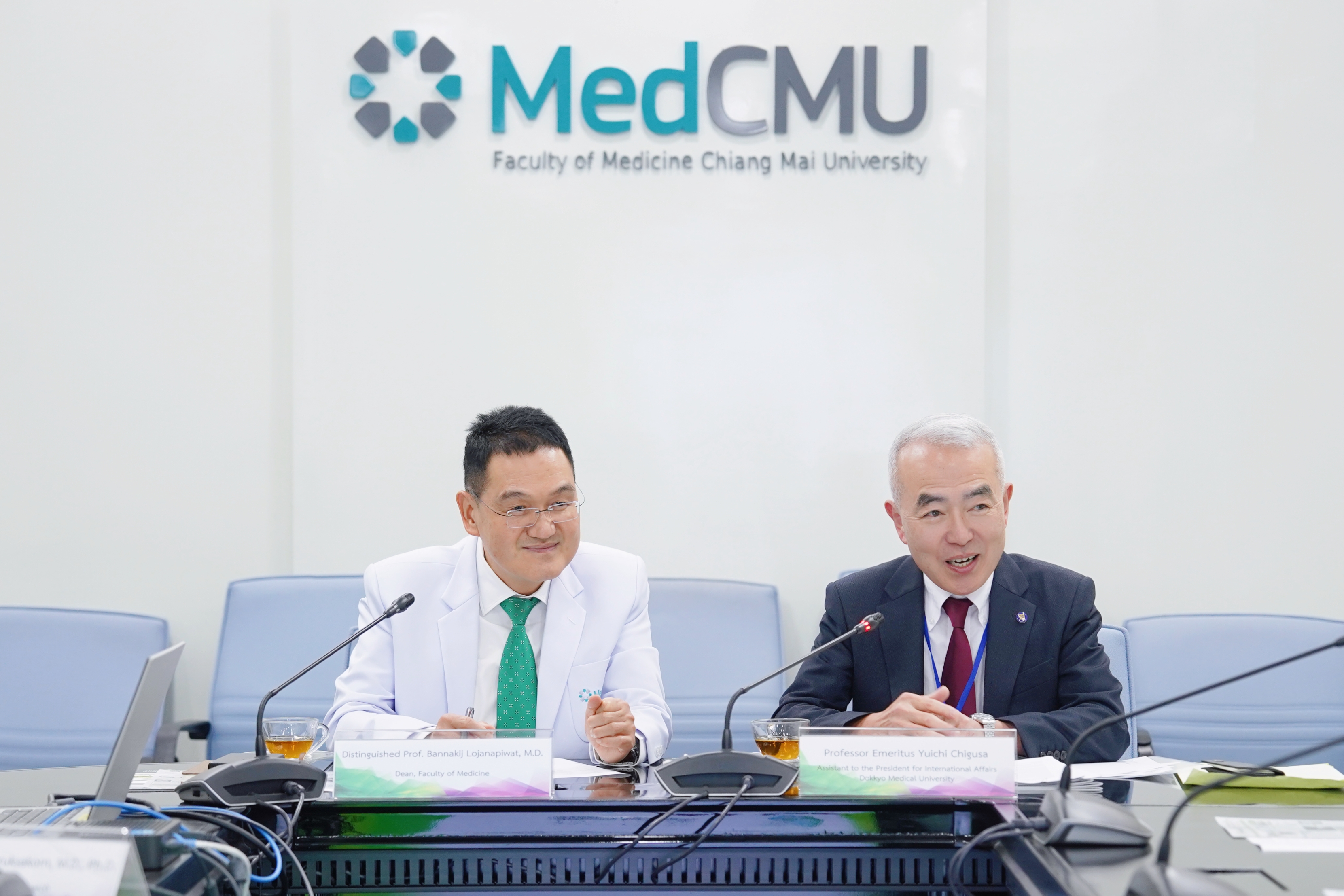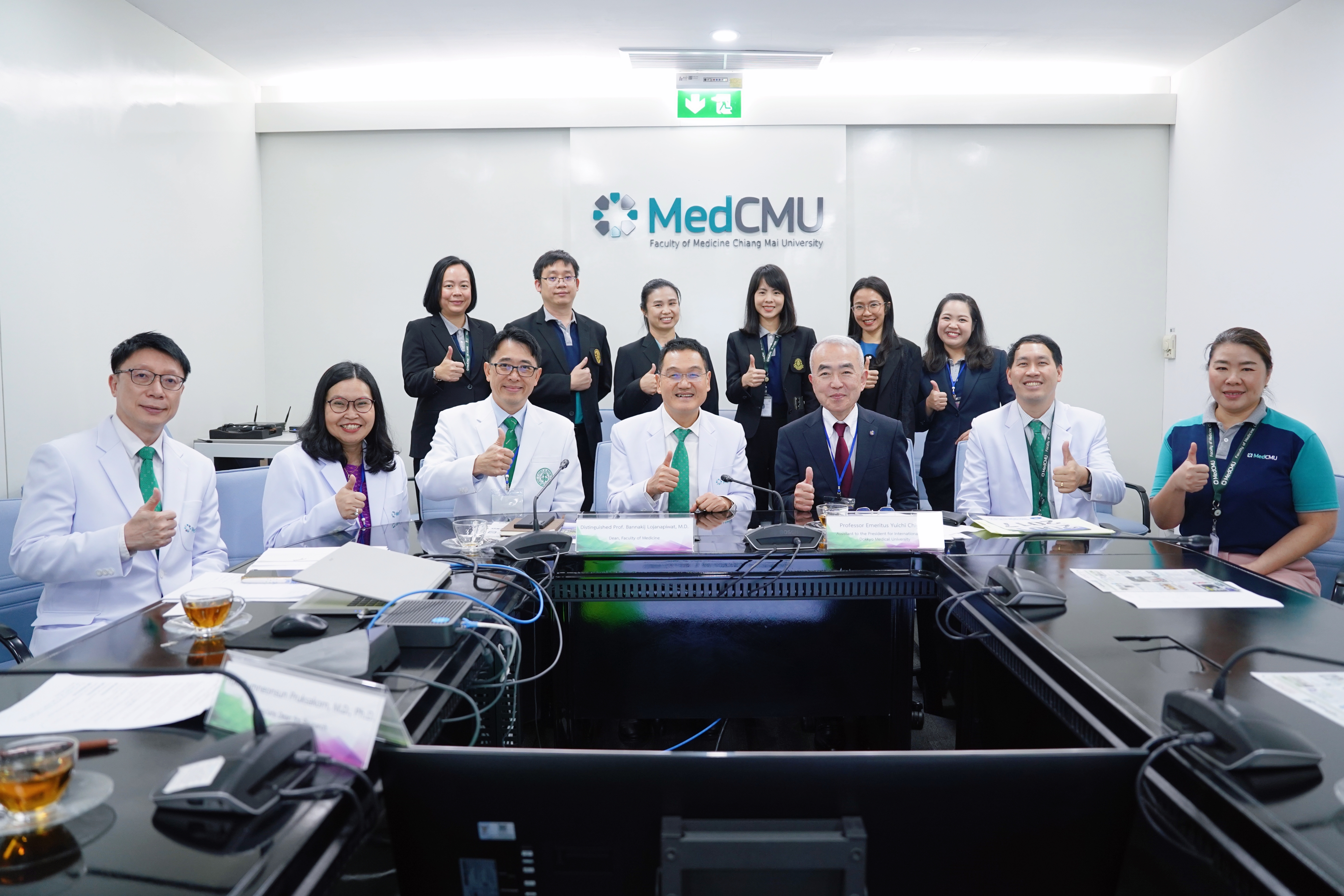 ศ.(เชี่ยวชาญพิเศษ)นพ.บรรณกิจ โลจนาภิวัฒน์ คณบดีคณะแพทยศาสตร์ มช. พร้อมด้วย ศ.นพ.ดำเนินสันต์ พฤกษากร รองคณบดีด้านวิจัย, ผศ.พญ.อริสา บอนเนซซ์ รองคณบดีด้านการศึกษาหลังปริญญา, ผศ.นพ.ฉลอง ชีวเกรียงไกร ผู้ช่วยคณบดีด้านวิเทศสัมพันธ์ คณะแพทยศาสตร์ มช., รศ.นพ.เอกรัฐ รัฐฤทธิ์ธำรง ผู้ช่วยคณบดีด้านหลักสูตรแพทย์บัณฑิต คณะแพทยศาสตร์ มช. ให้การต้อนรับ Prof.Emer.Yuichi Chigusa, Dokkyo Medical University, Japan. เพื่อแสดงความยินดีในโอกาสครบรอบ 65 ปี การก่อตั้งสถาบัน คณะแพทยศาสตร์ มหาวิทยาลัยเชียงใหม่ และต่อยอดความร่วมมือด้านวิชาการ และงานวิจัยระหว่างคณะแพทยศาสตร์ มช. กับ Dokkyo Medical University ในวันที่ 25 ตุลาคม 2567 ณ ห้องประชุม 802 ชั้น 8 อาคารราชนครินทร์ คณะแพทยศาสตร์ มช.